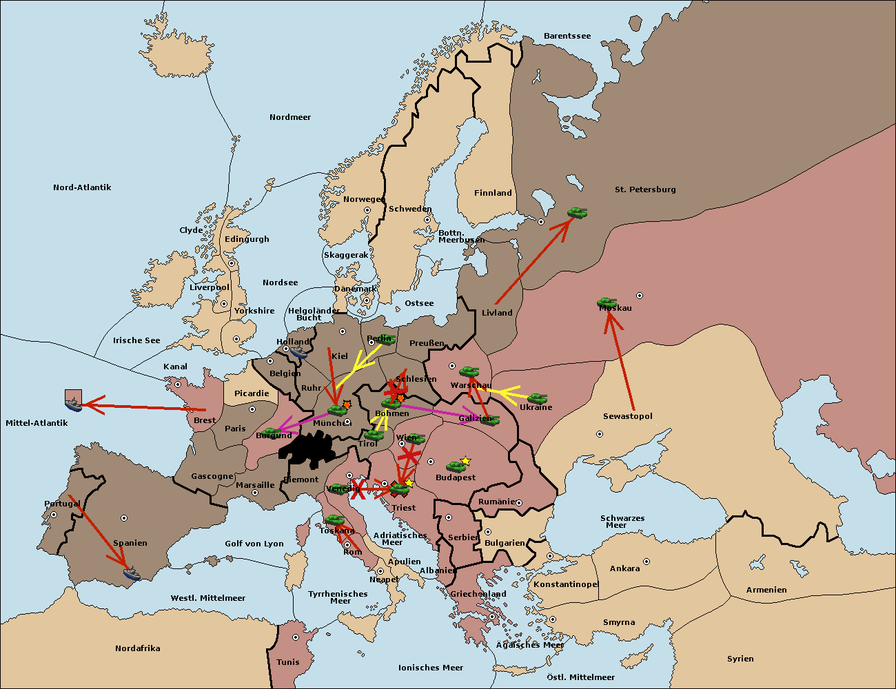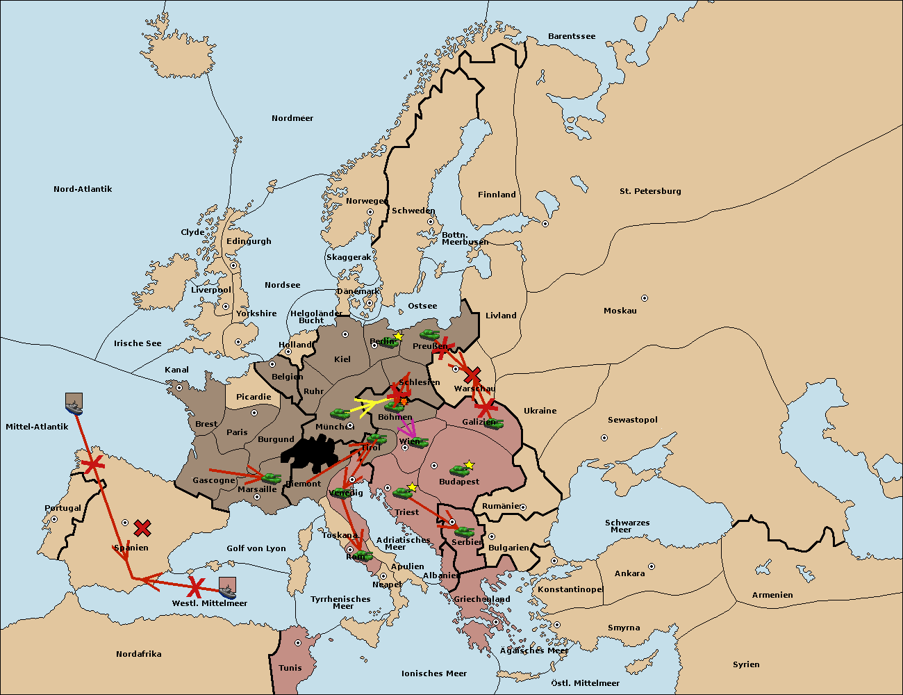 • Die Armee in Schlesien support move nach Böhmen von München. (gescheitert)