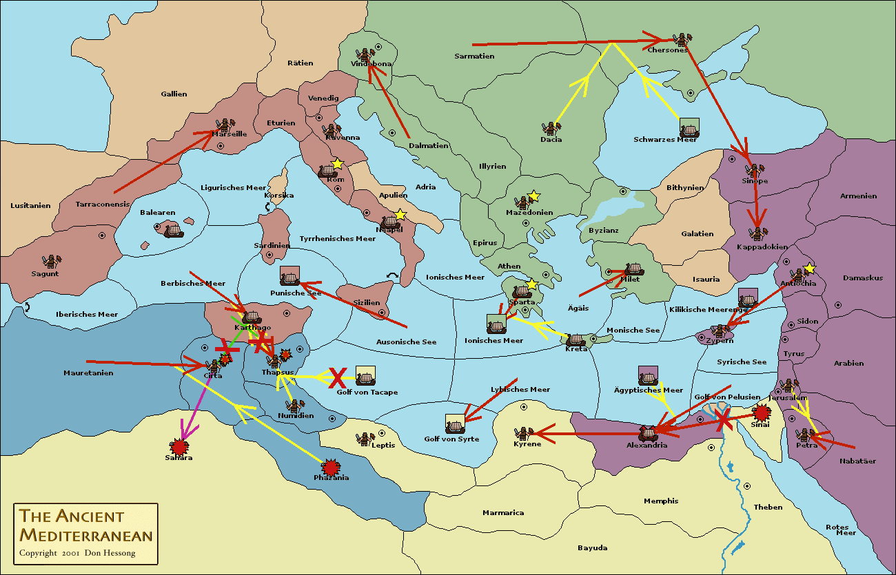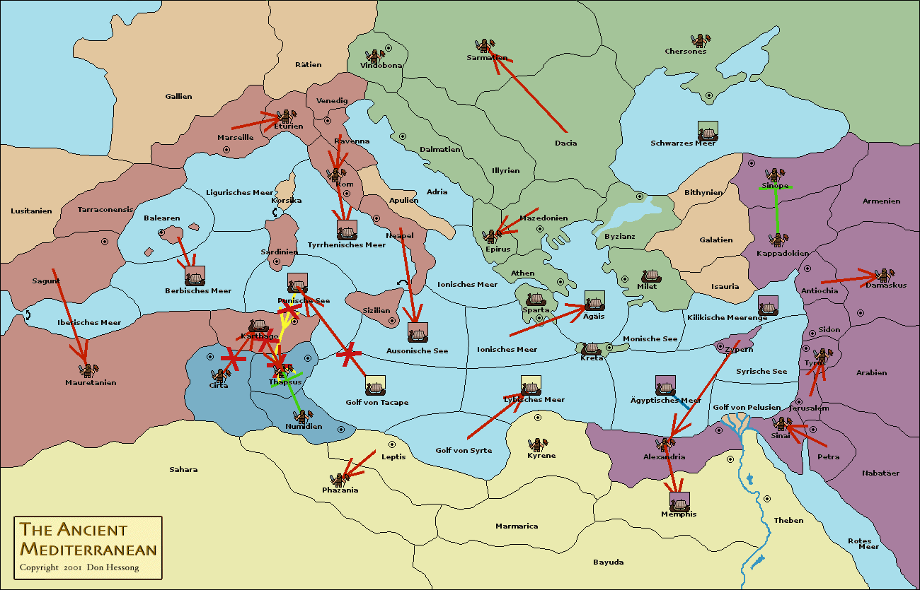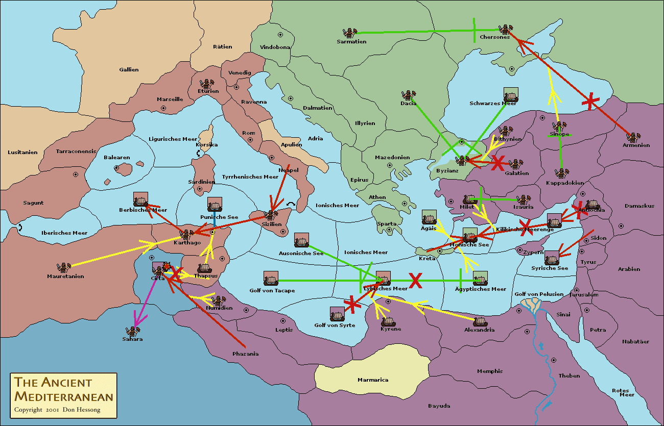 • Die Flotte in Berbisches Meer move nach Karthago.