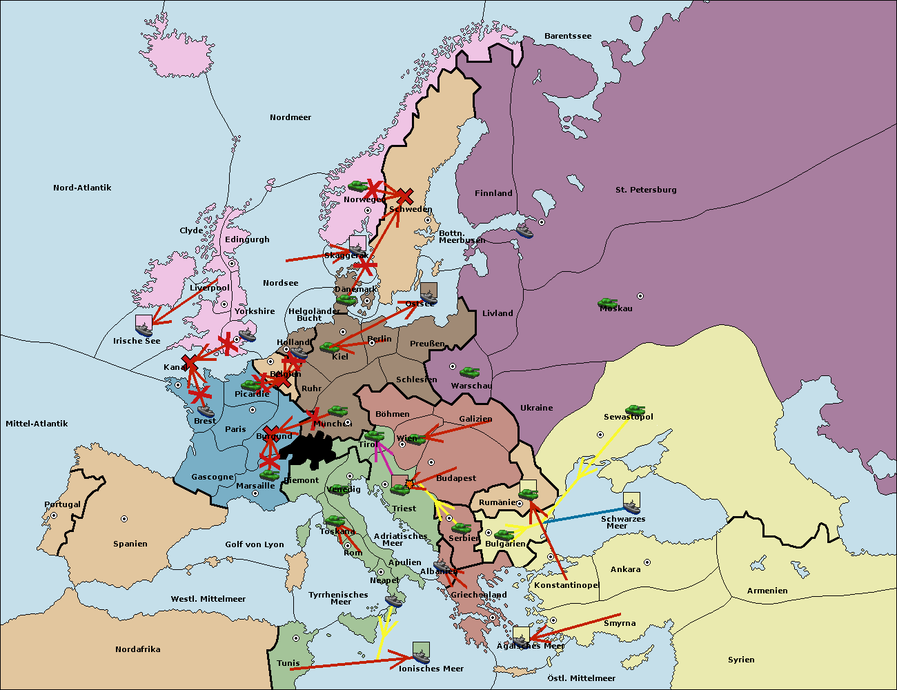 • Die Armee in Triest move nach Budapest. (gescheitert) (verdrängt)