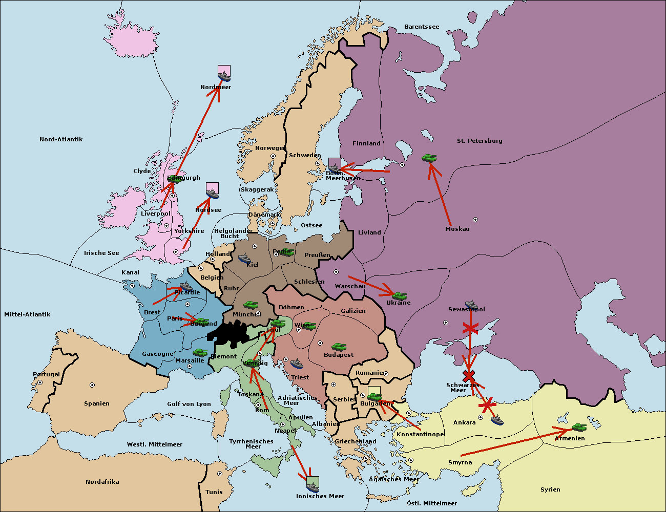 • Die Armee in Sewastopol support move nach Rumänien von Bulgarien. (gescheitert) (verdrängt)