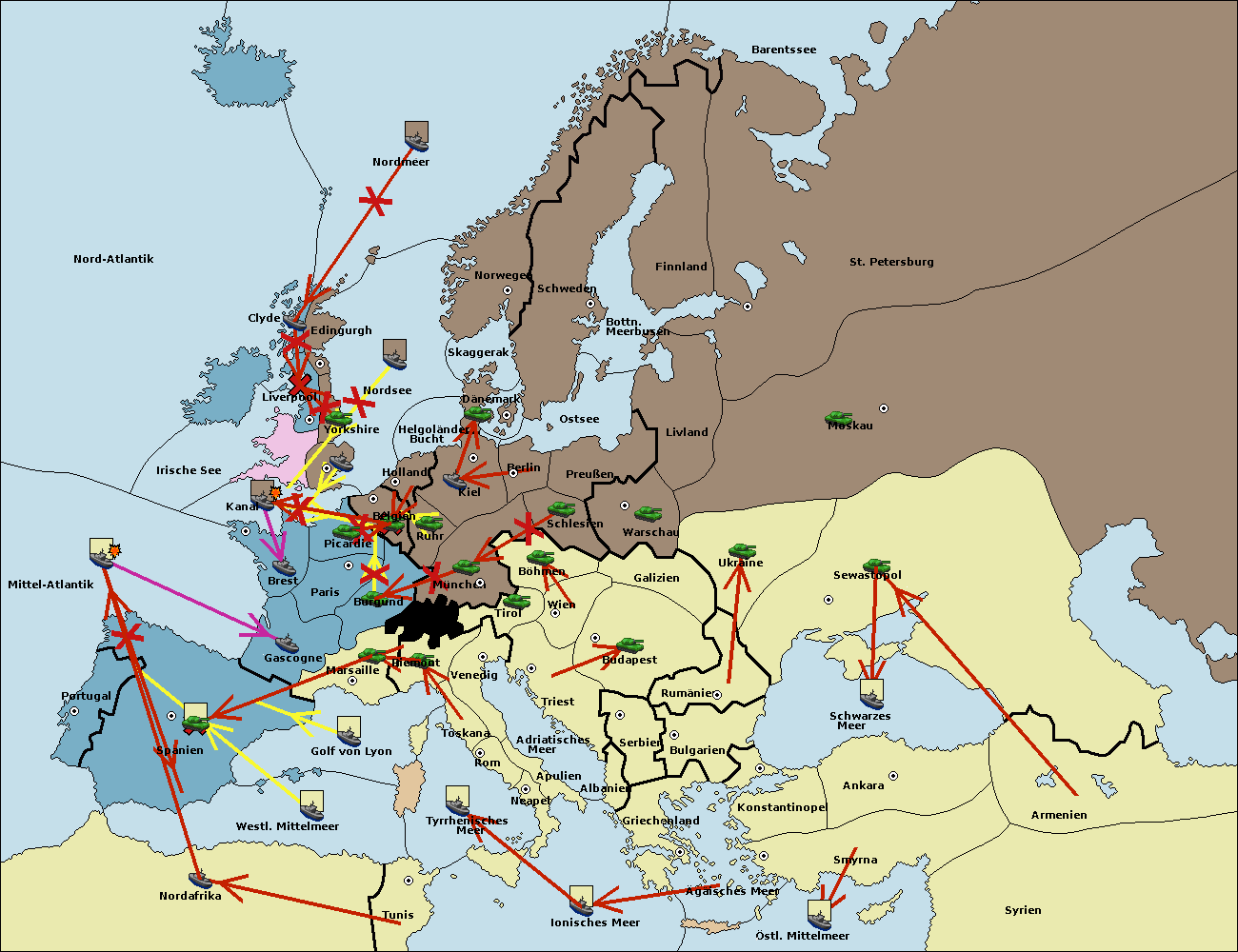 • Die Flotte in Spanien (Südküste) move nach Portugal. (gescheitert)