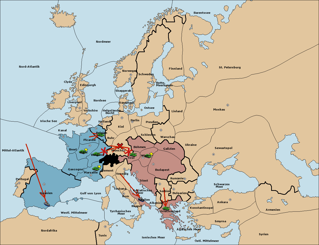 • Die Armee in Böhmen move nach München.