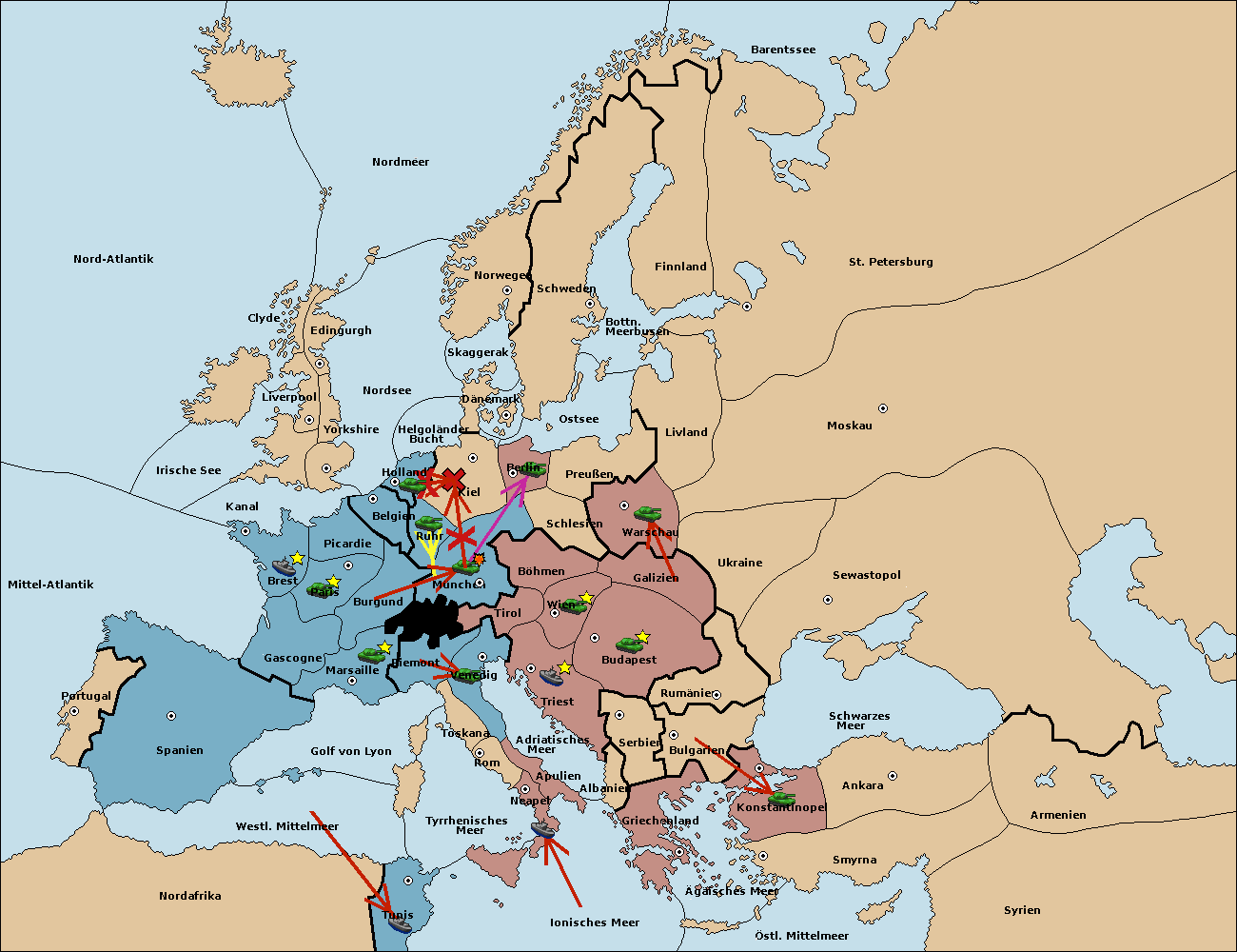 • Die Armee in Kiel support move nach München von Böhmen.