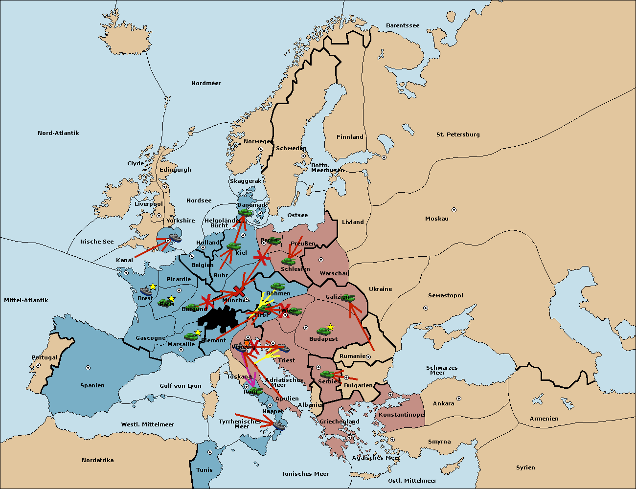 • Die Armee in München move nach Kiel. (gescheitert) (verdrängt)