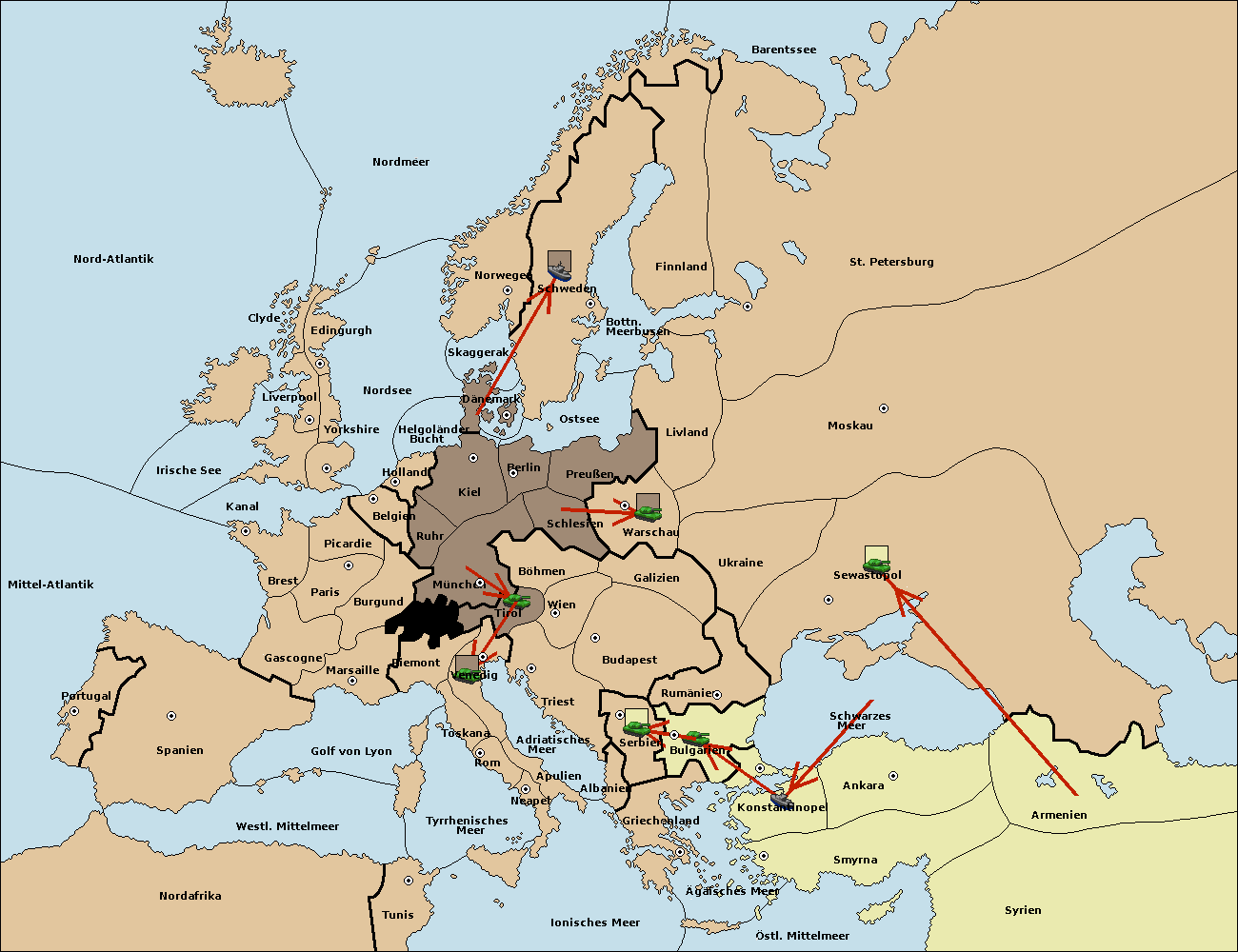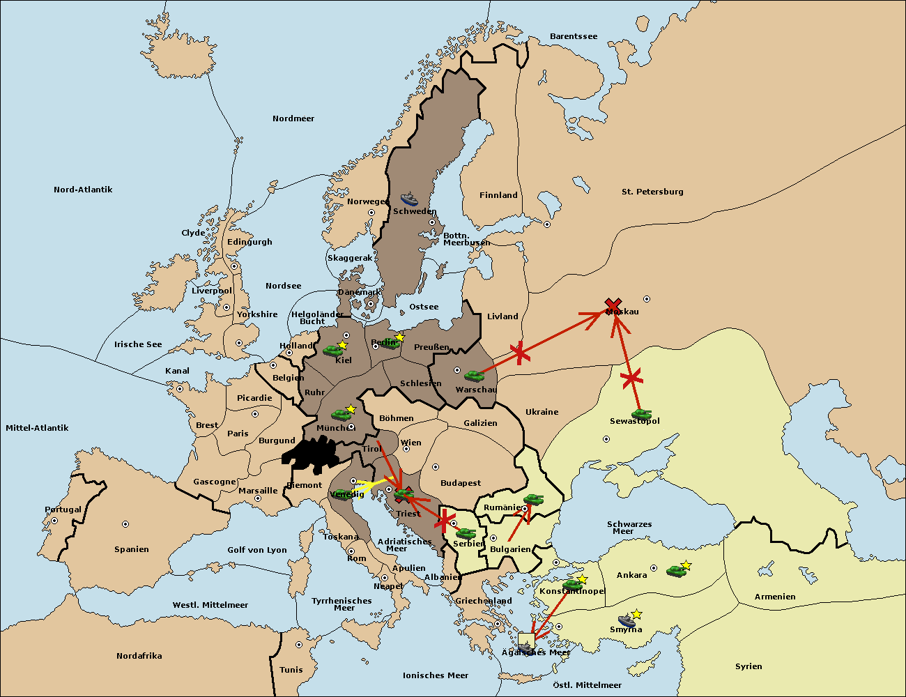 • Die Armee in Venedig support move nach Triest von Tirol.
