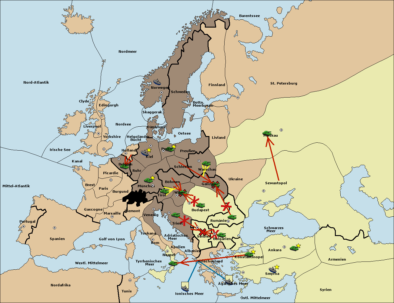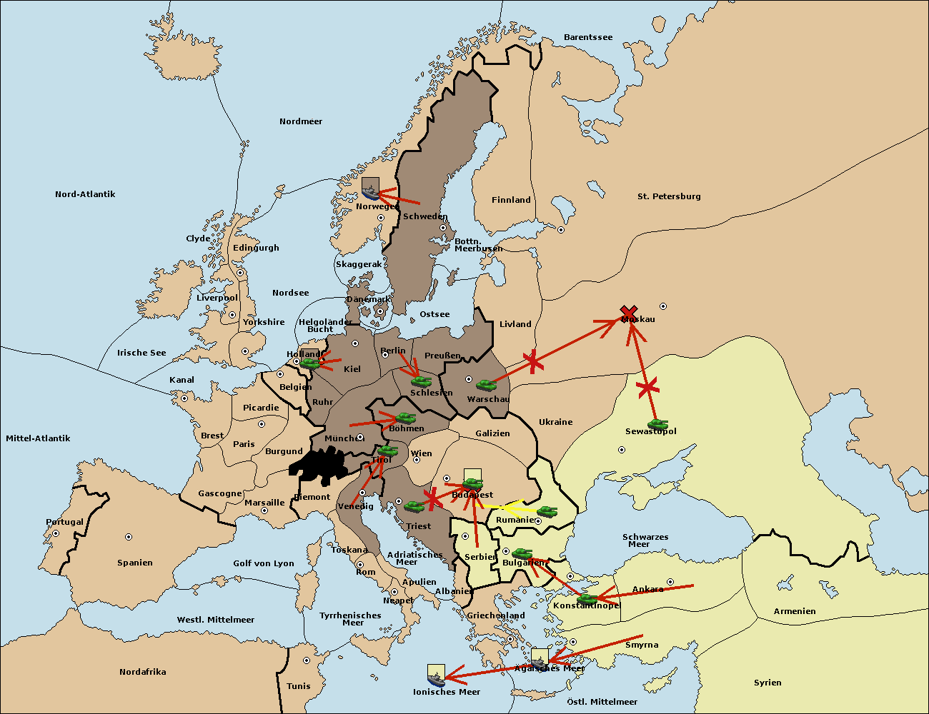 • Die Armee in Galizien support move nach Budapest von Wien.