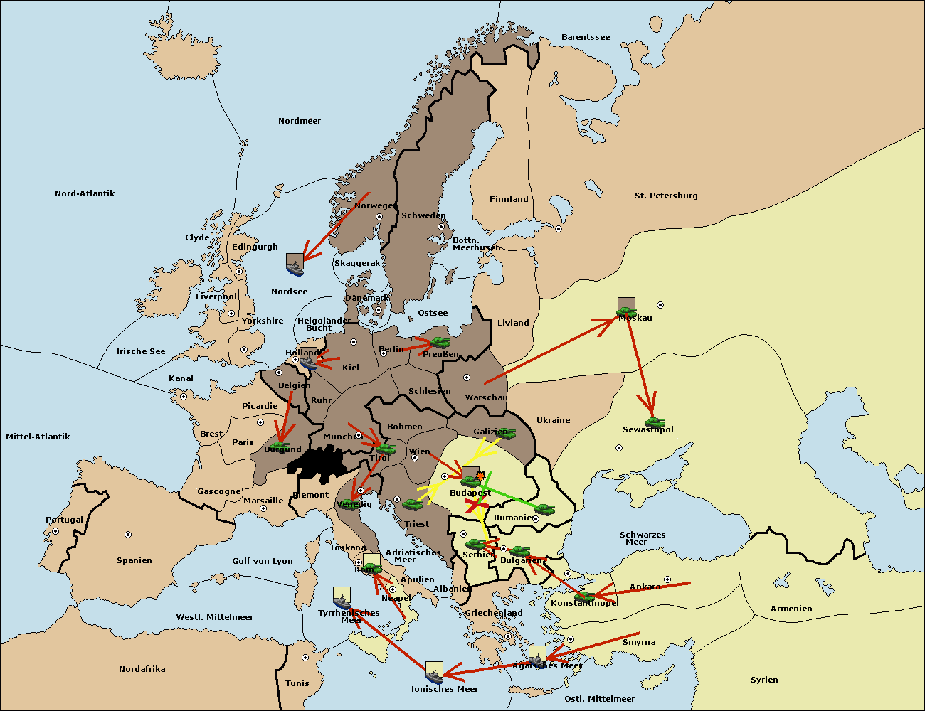 • Die Armee in Triest move nach Budapest. (gescheitert)