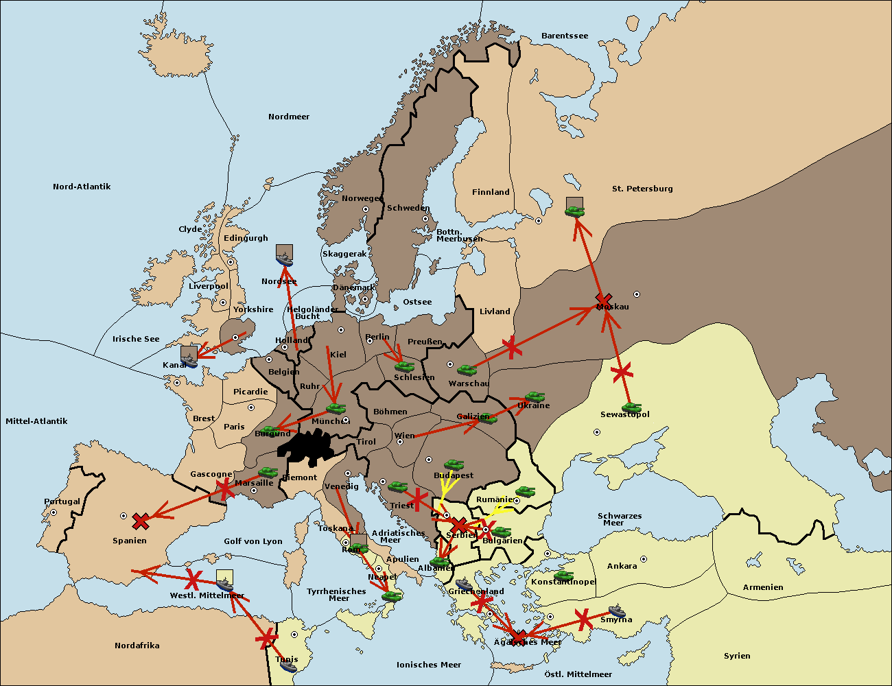 • Die Armee in Bulgarien move nach Serbien. (gescheitert)
