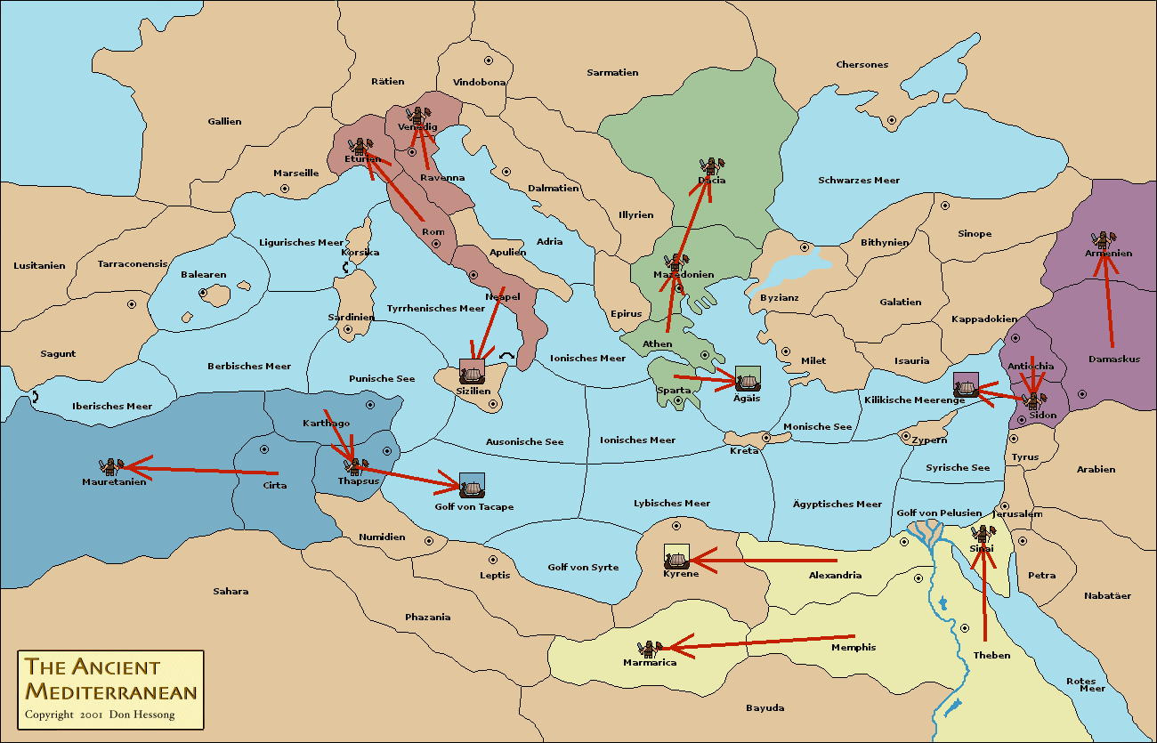• Die Flotte in Berbisches Meer move nach Karthago.
