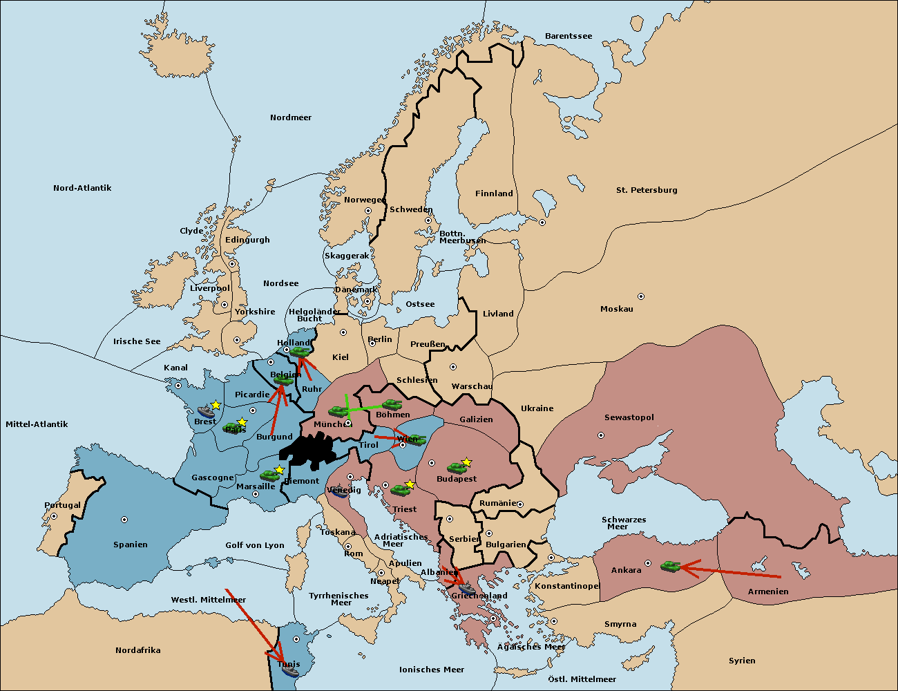 • Die Armee in Wien support move nach Triest von Serbien. (gescheitert)