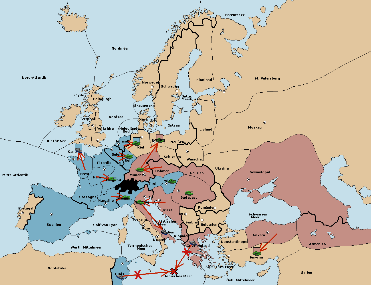 • Die Flotte in Tyrrhenisches Meer support move nach Tunis von Ionisches Meer.