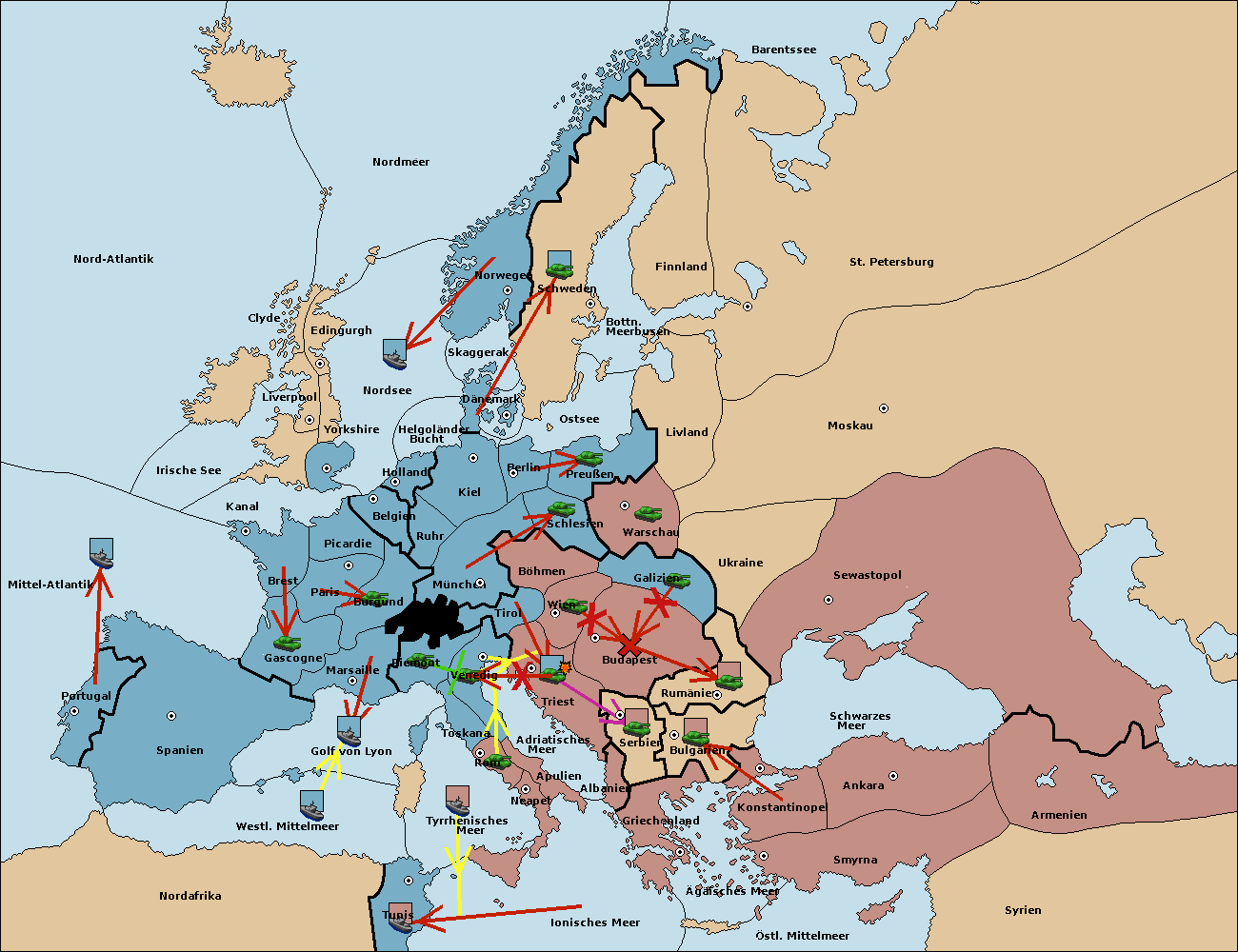 • Die Armee in Budapest support move nach Wien von Triest.