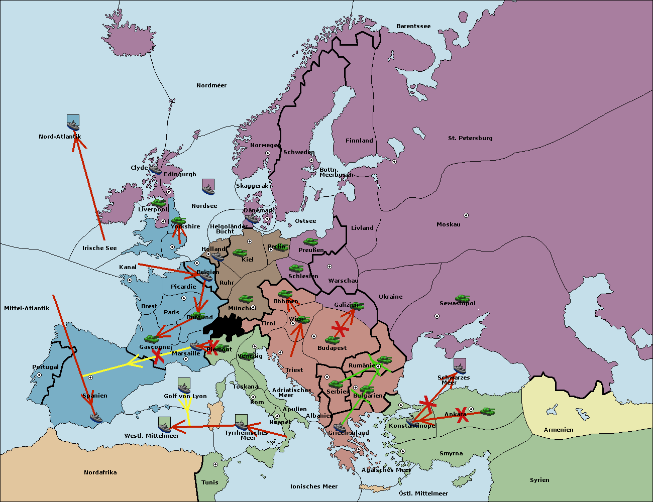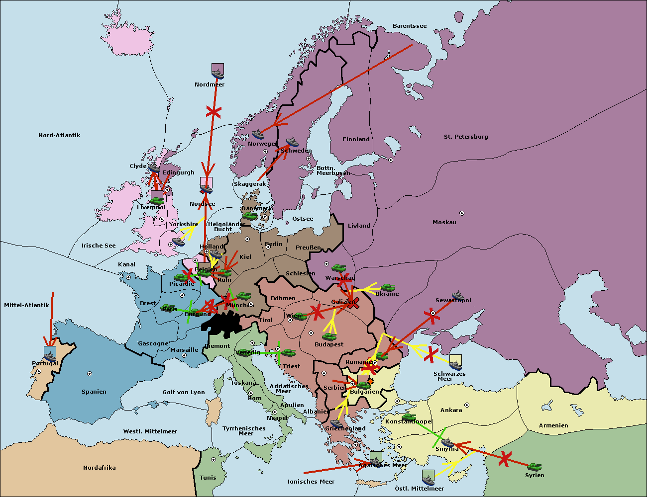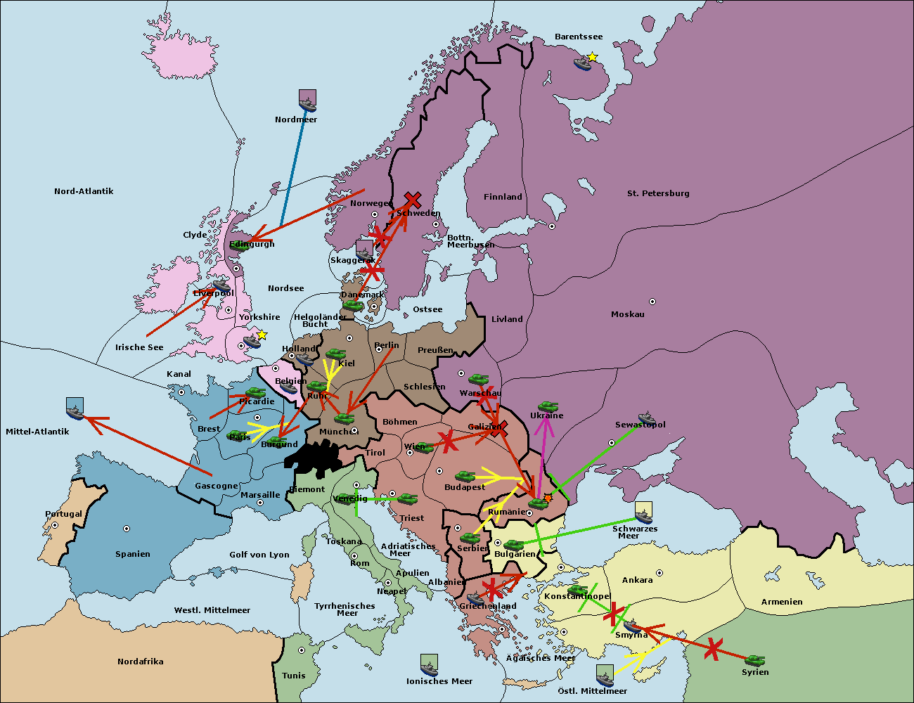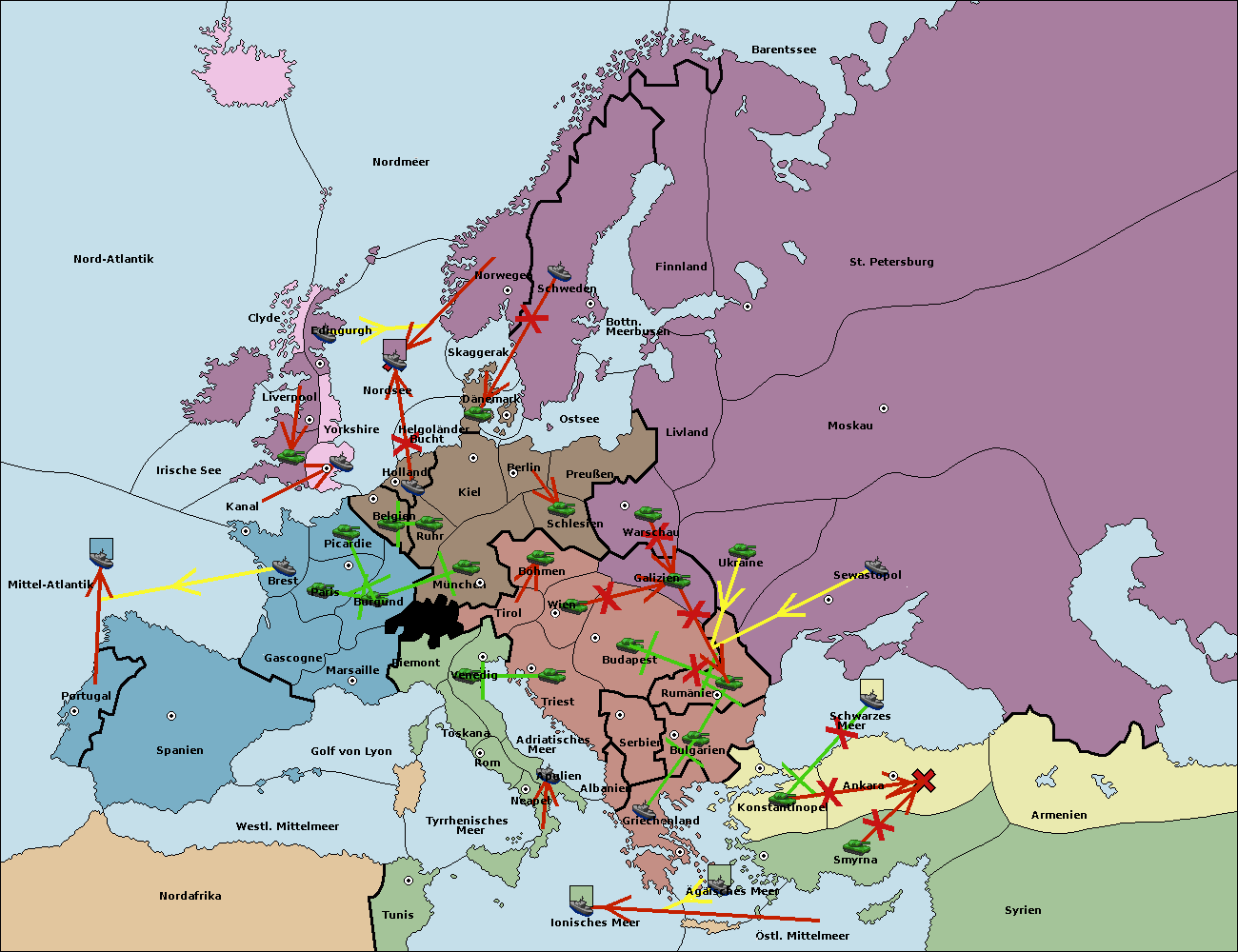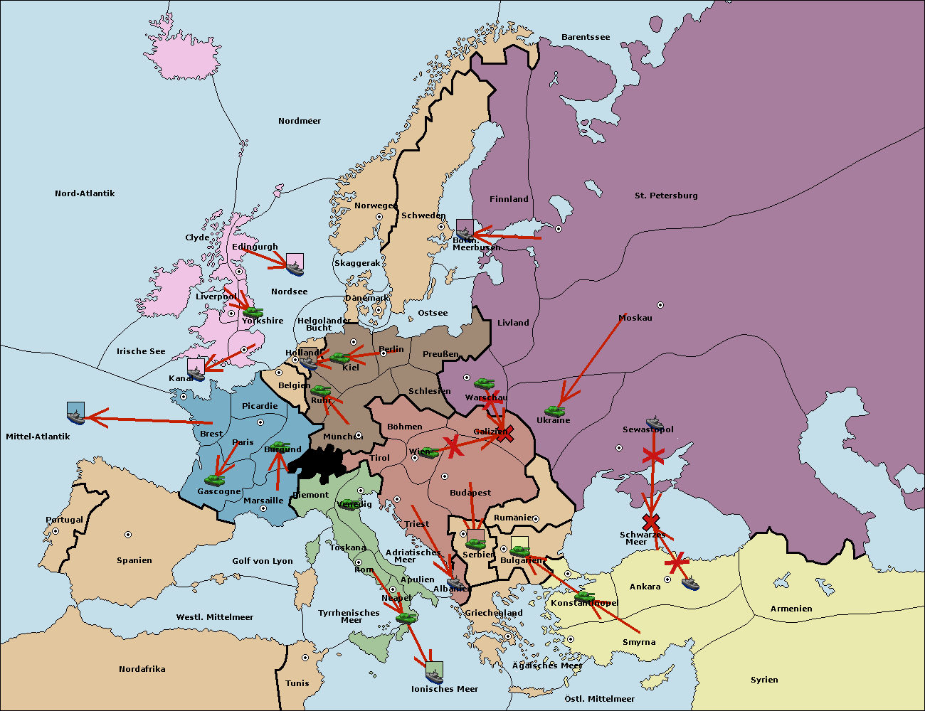• Die Flotte in Konstantinopel support move nach Bulgarien von Griechenland. (gescheitert)