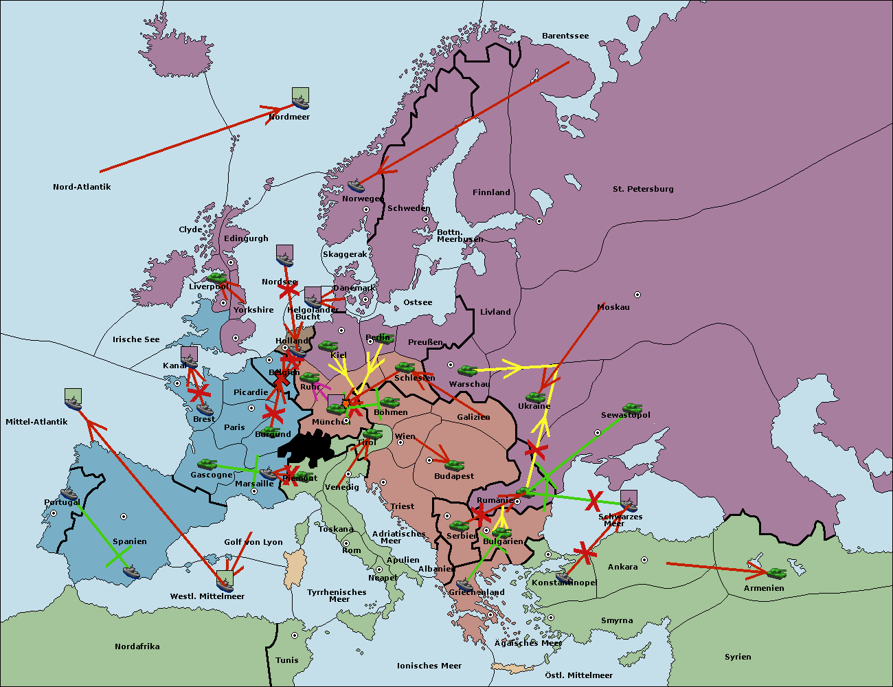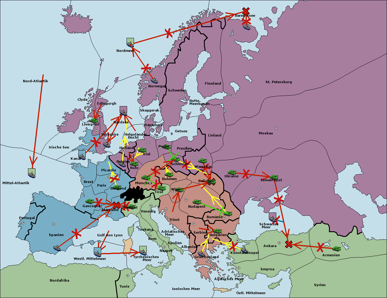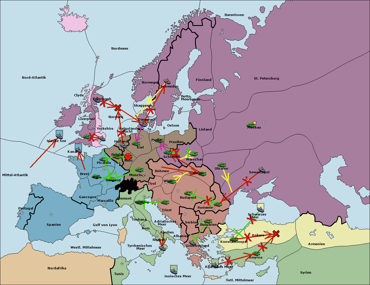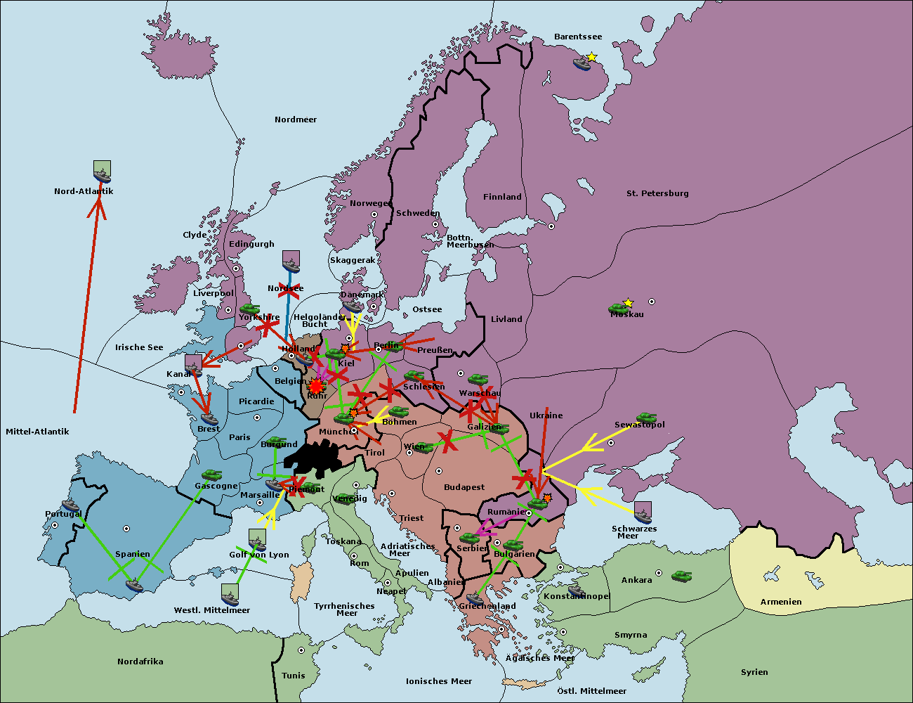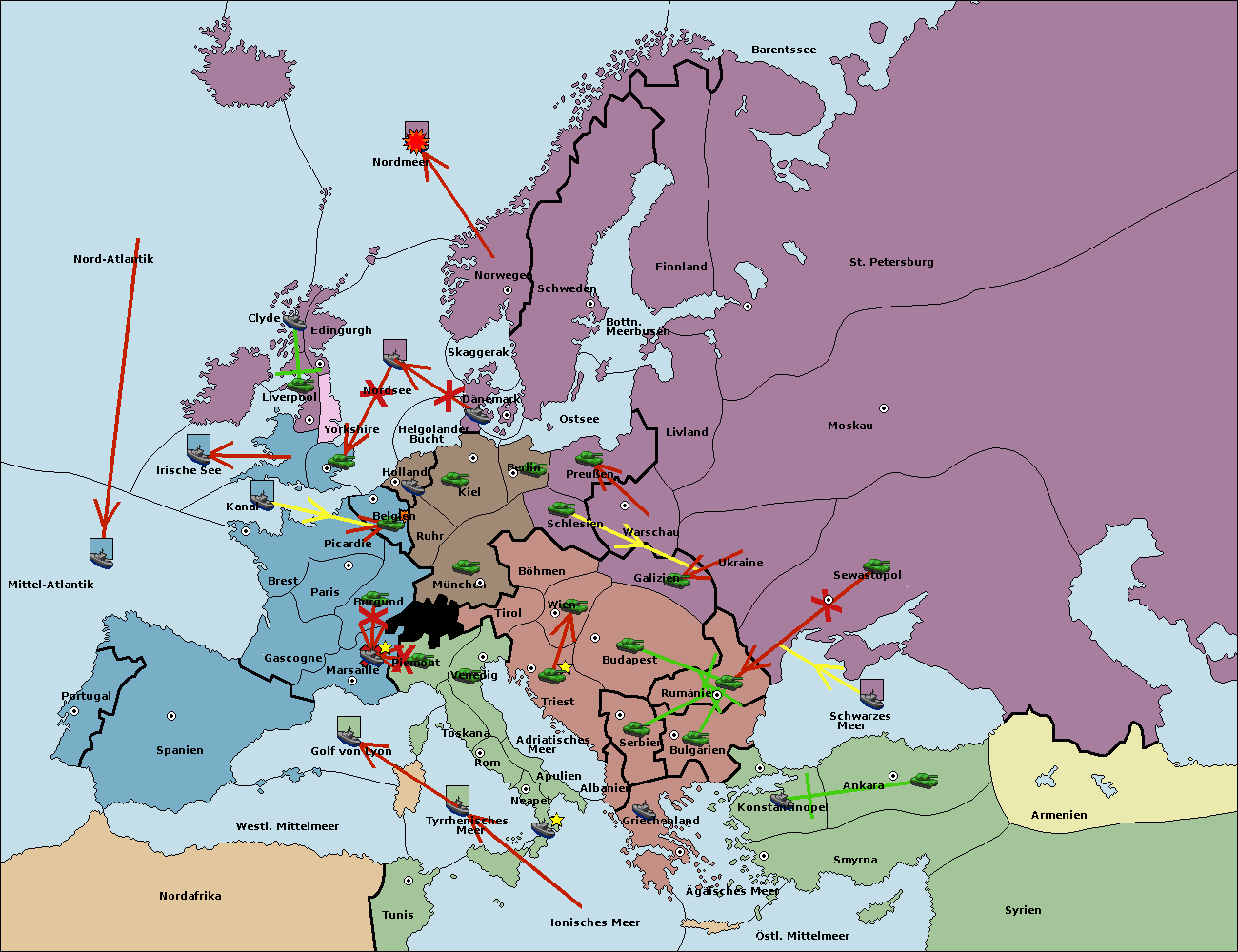 • Die Flotte in Belgien move nach Nordsee. (gescheitert)