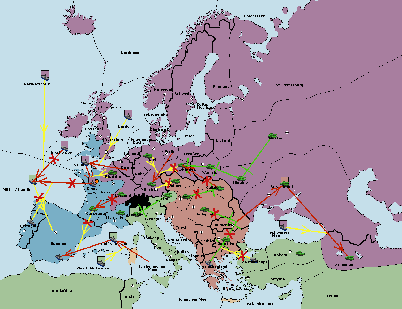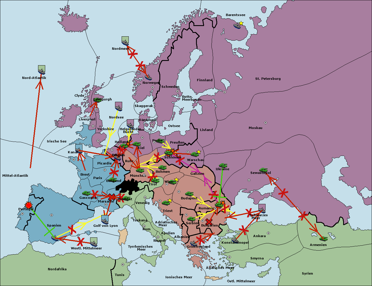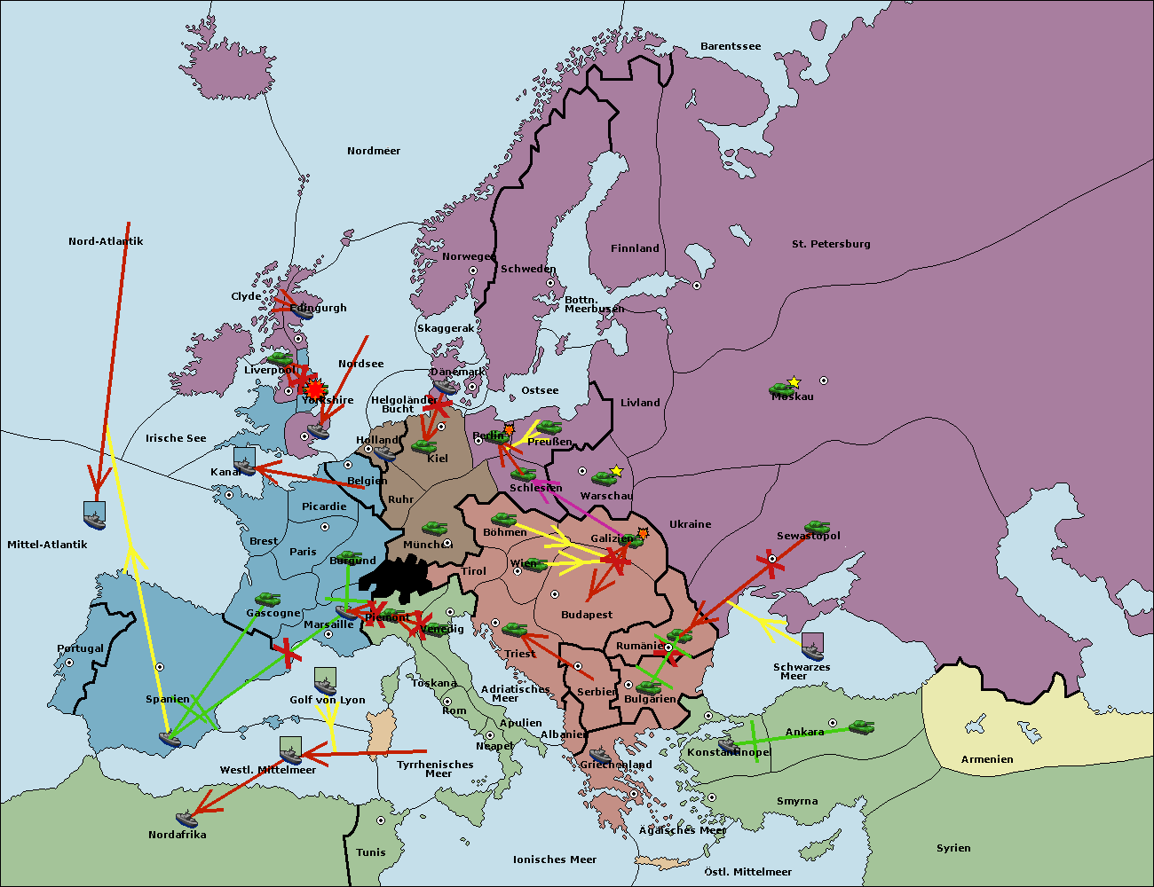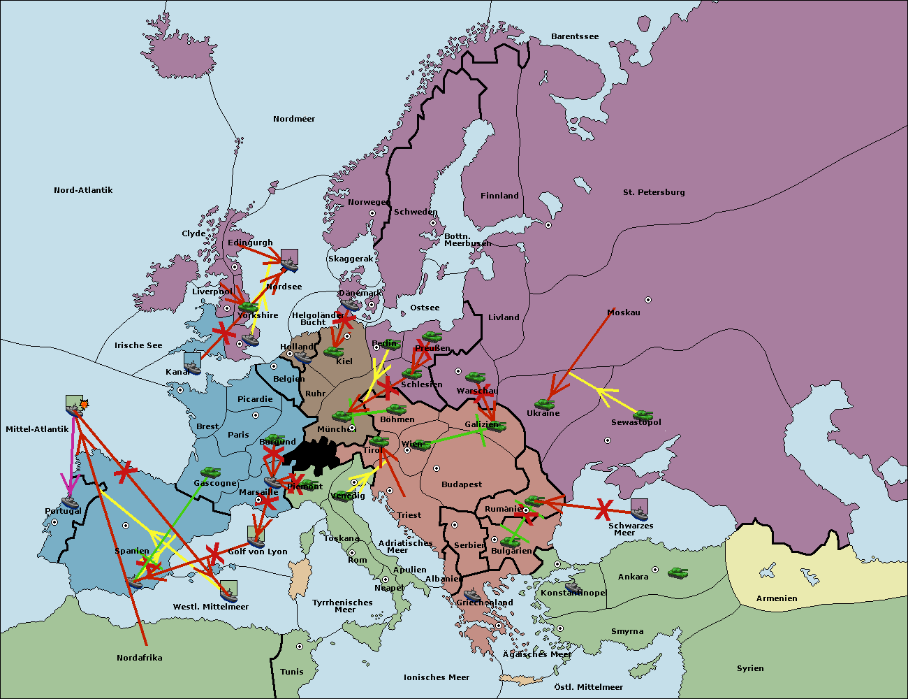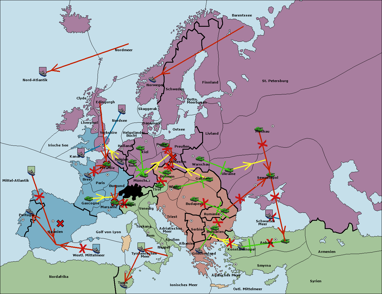 • Die Flotte in Belgien move nach Nordsee. (gescheitert)