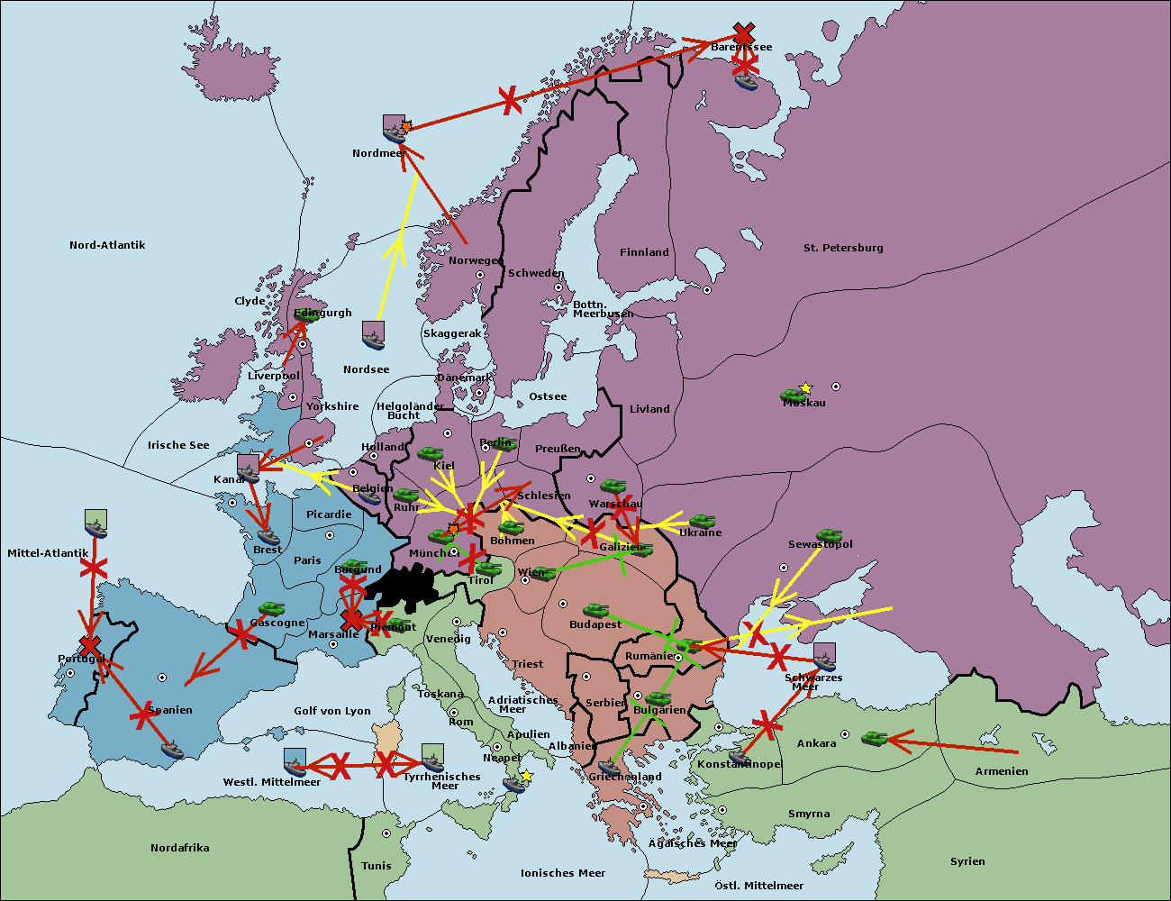 • Die Flotte in St. Petersburg (Nordküste) move nach Barentssee.