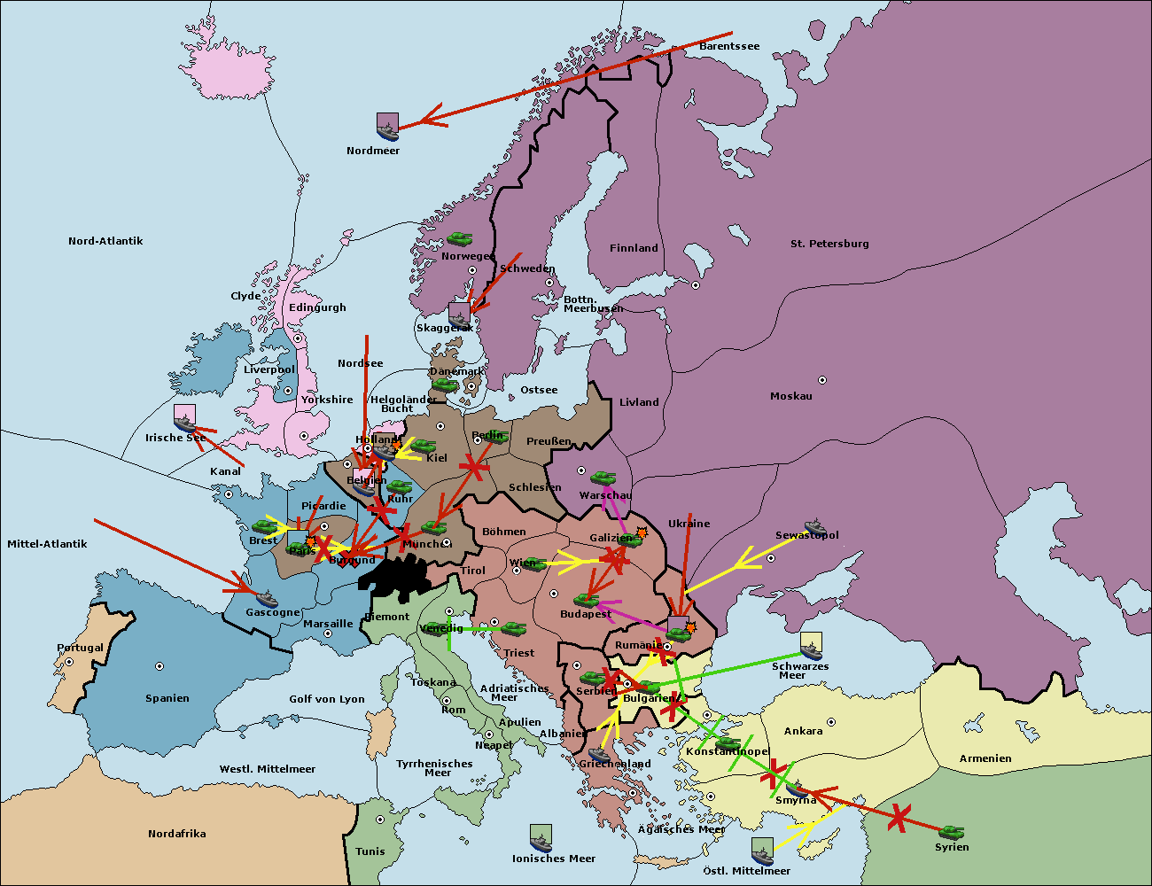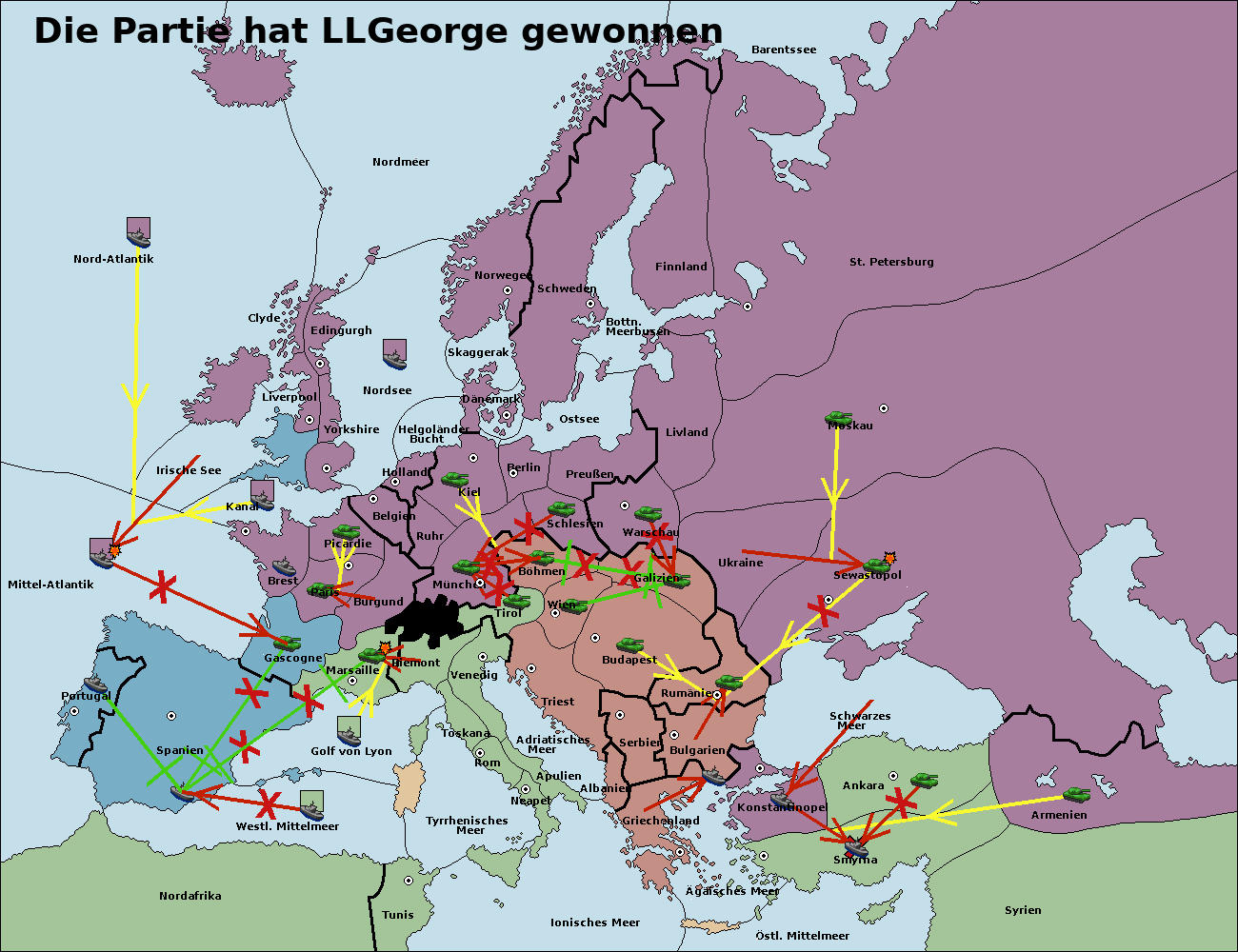 • Die Armee in Bulgarien support hold nach Konstantinopel. (gescheitert)