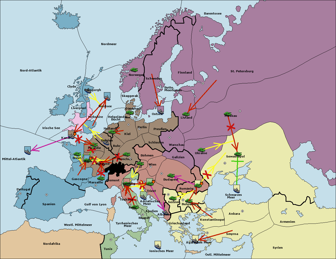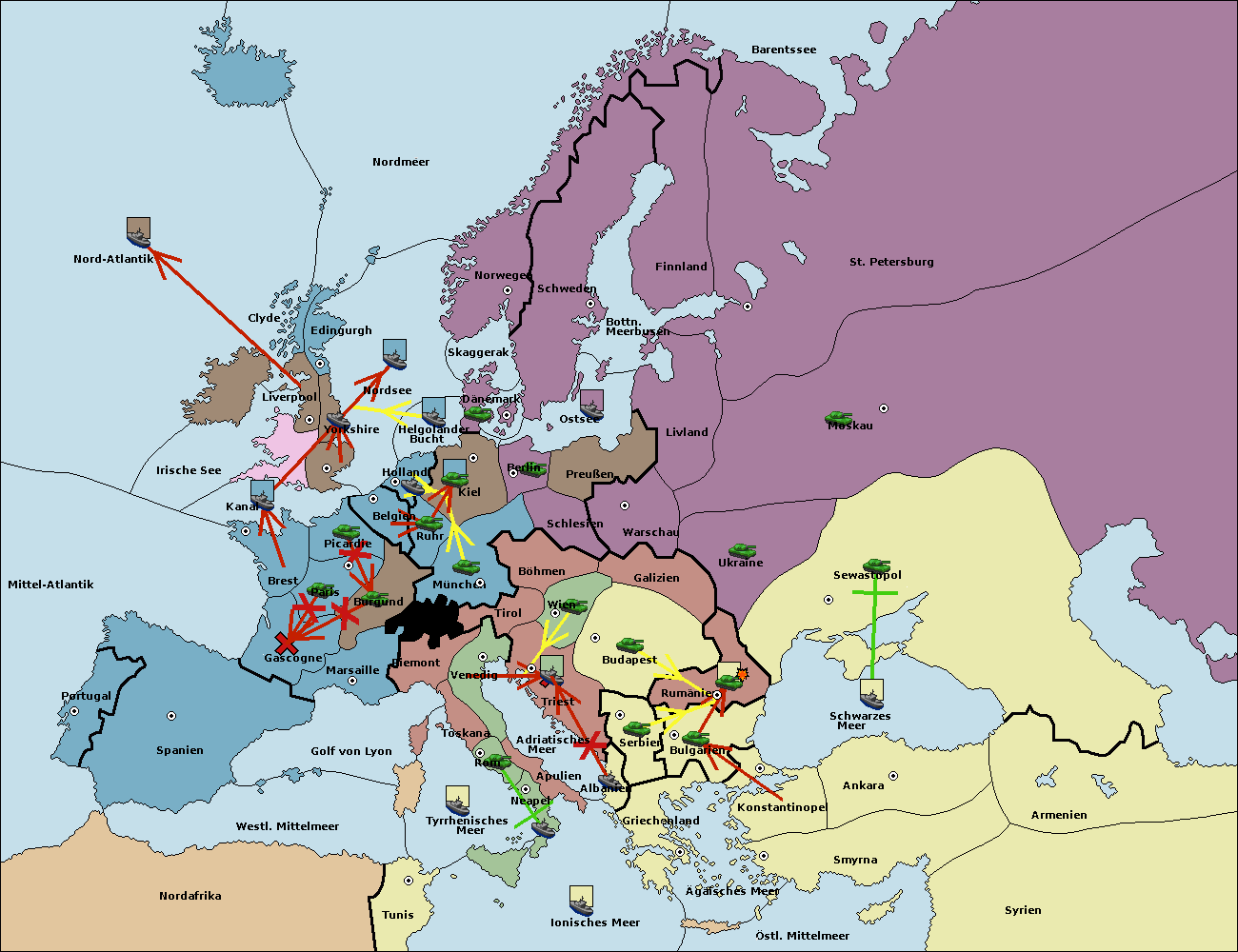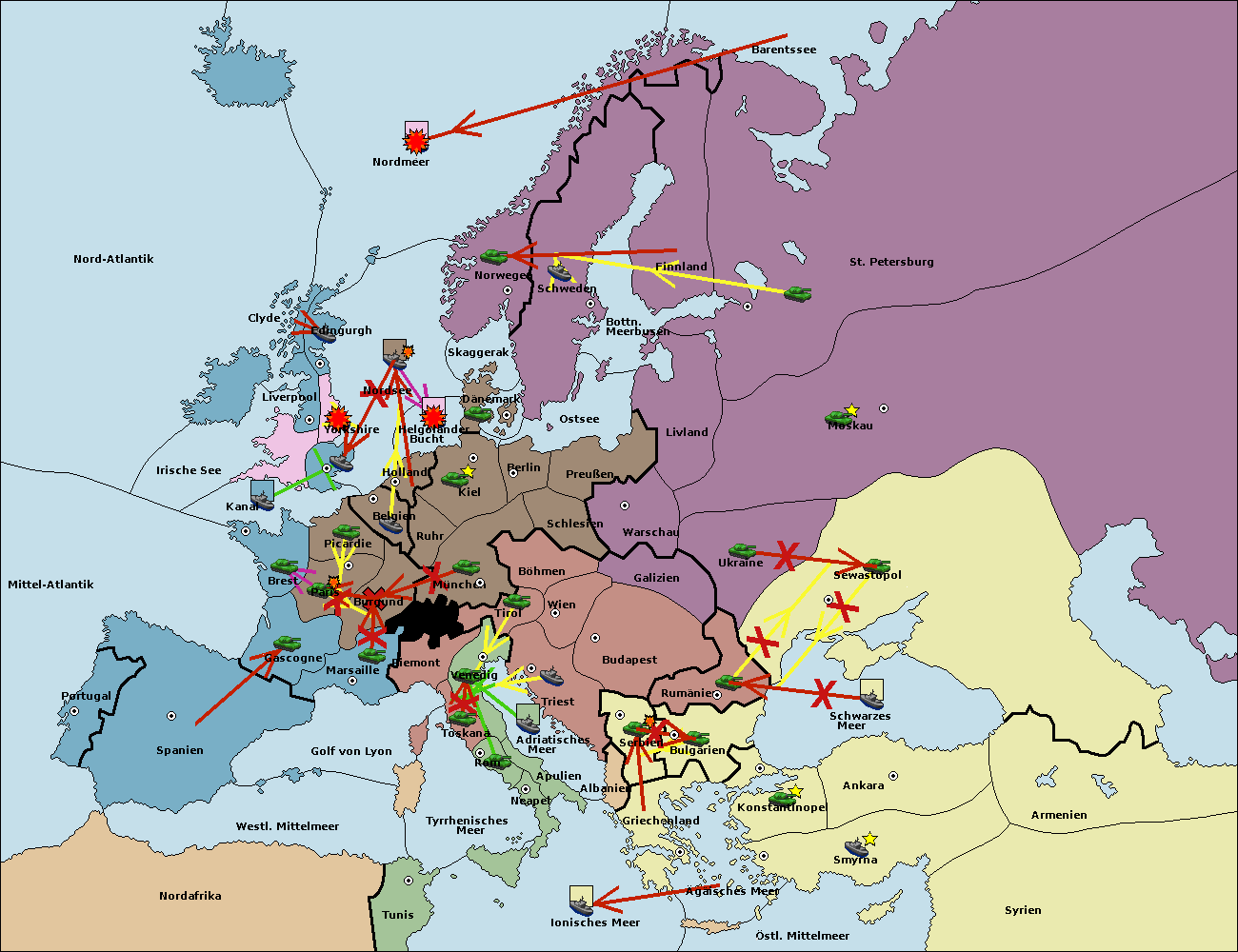 • Die Armee in Bulgarien wird zerstörtFlotte in Bulgarien gebaut.