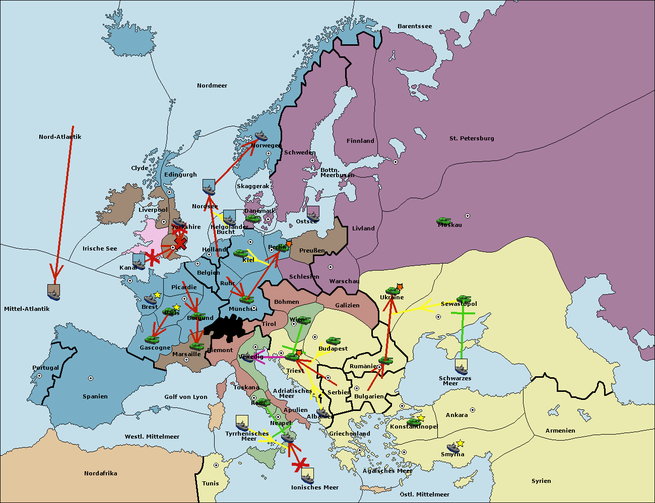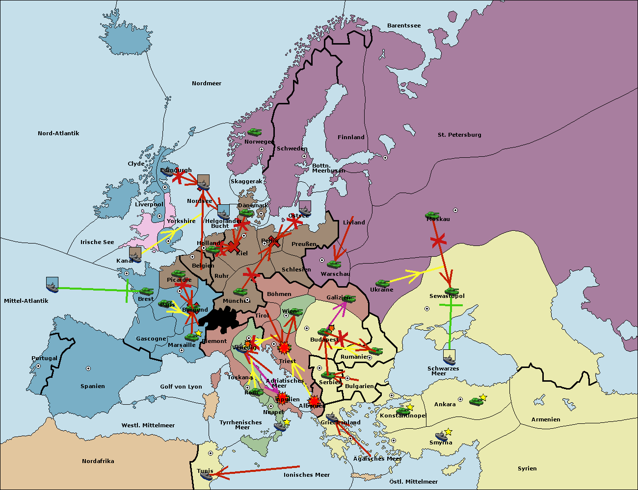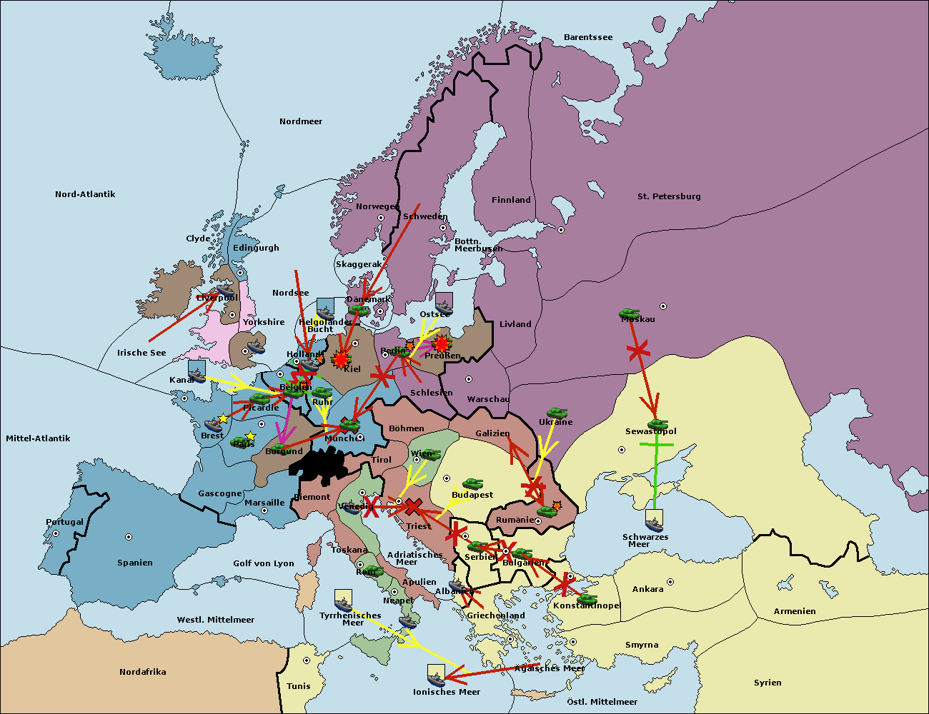 • Die Armee in Bulgarien wird zerstörtFlotte in Bulgarien gebaut.