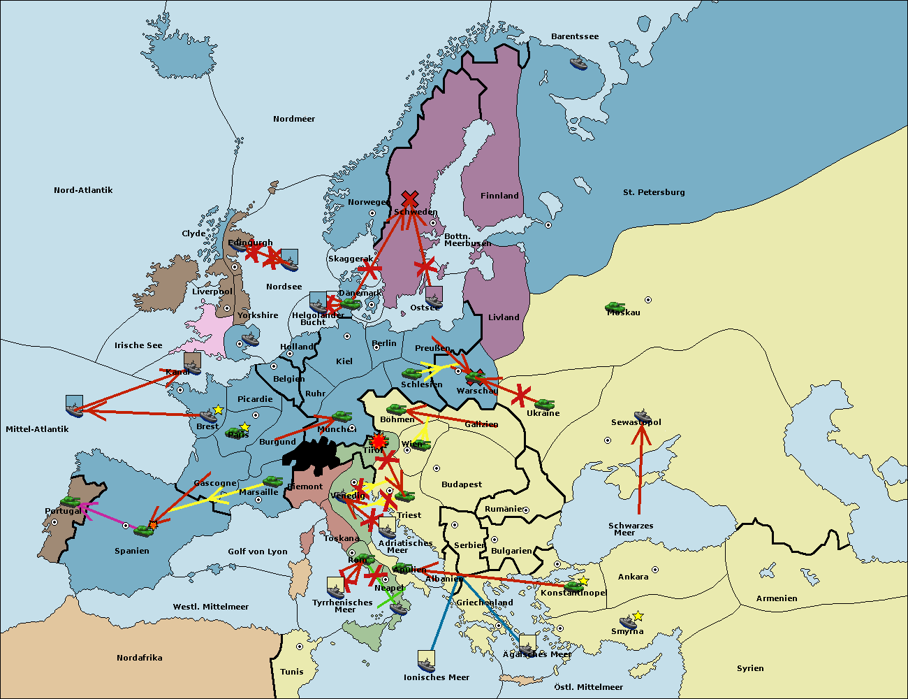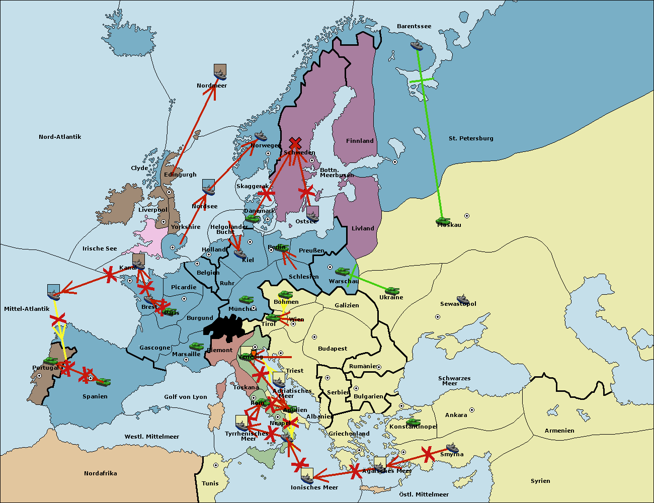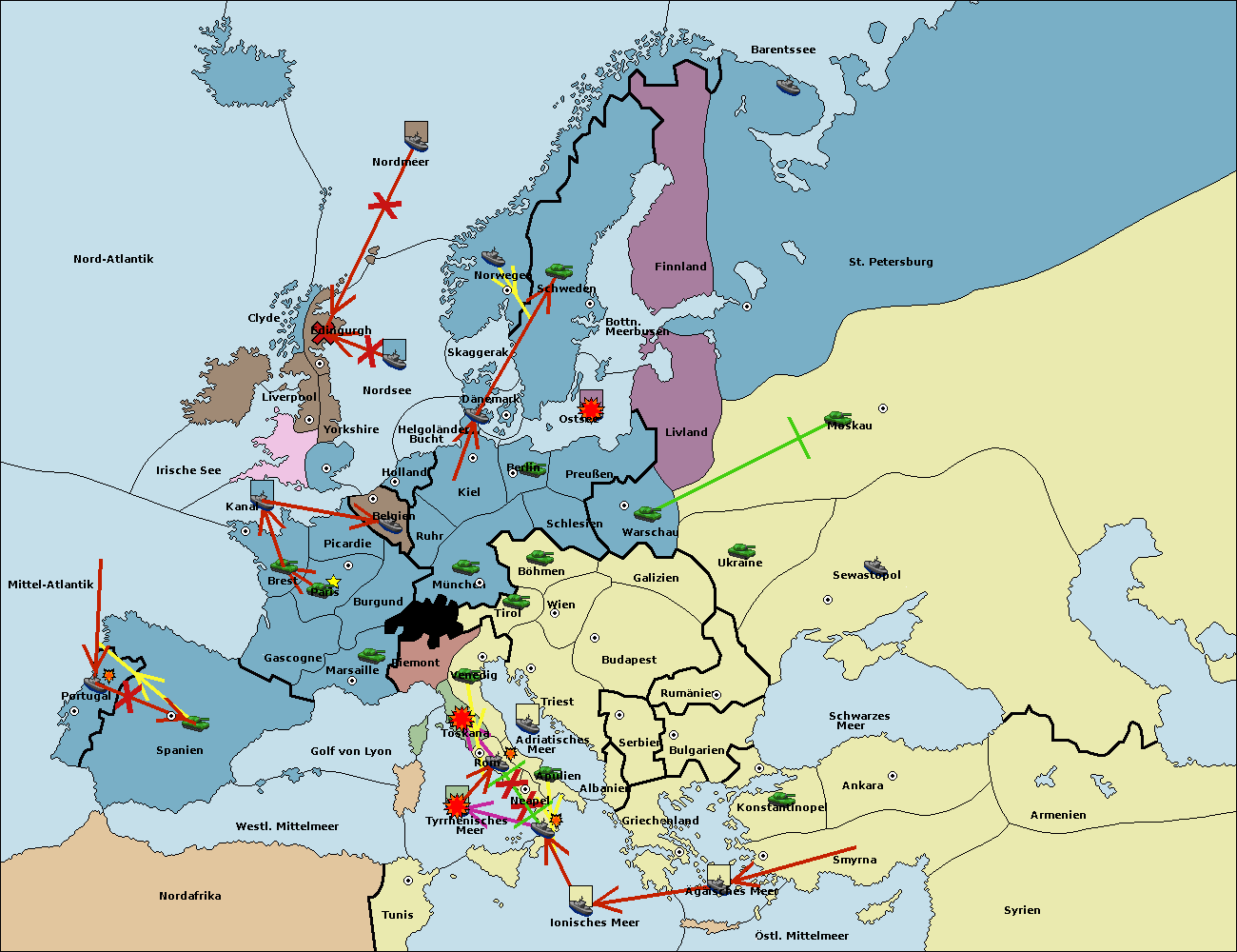 • Die Flotte in westl. Mittelmeer support hold nach Spanien. (gescheitert)