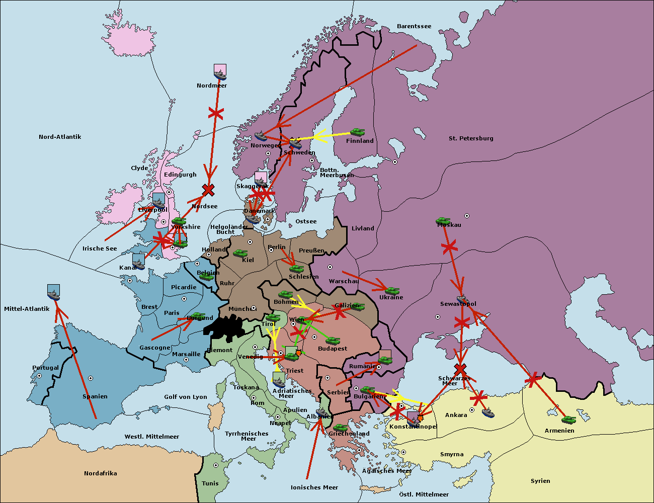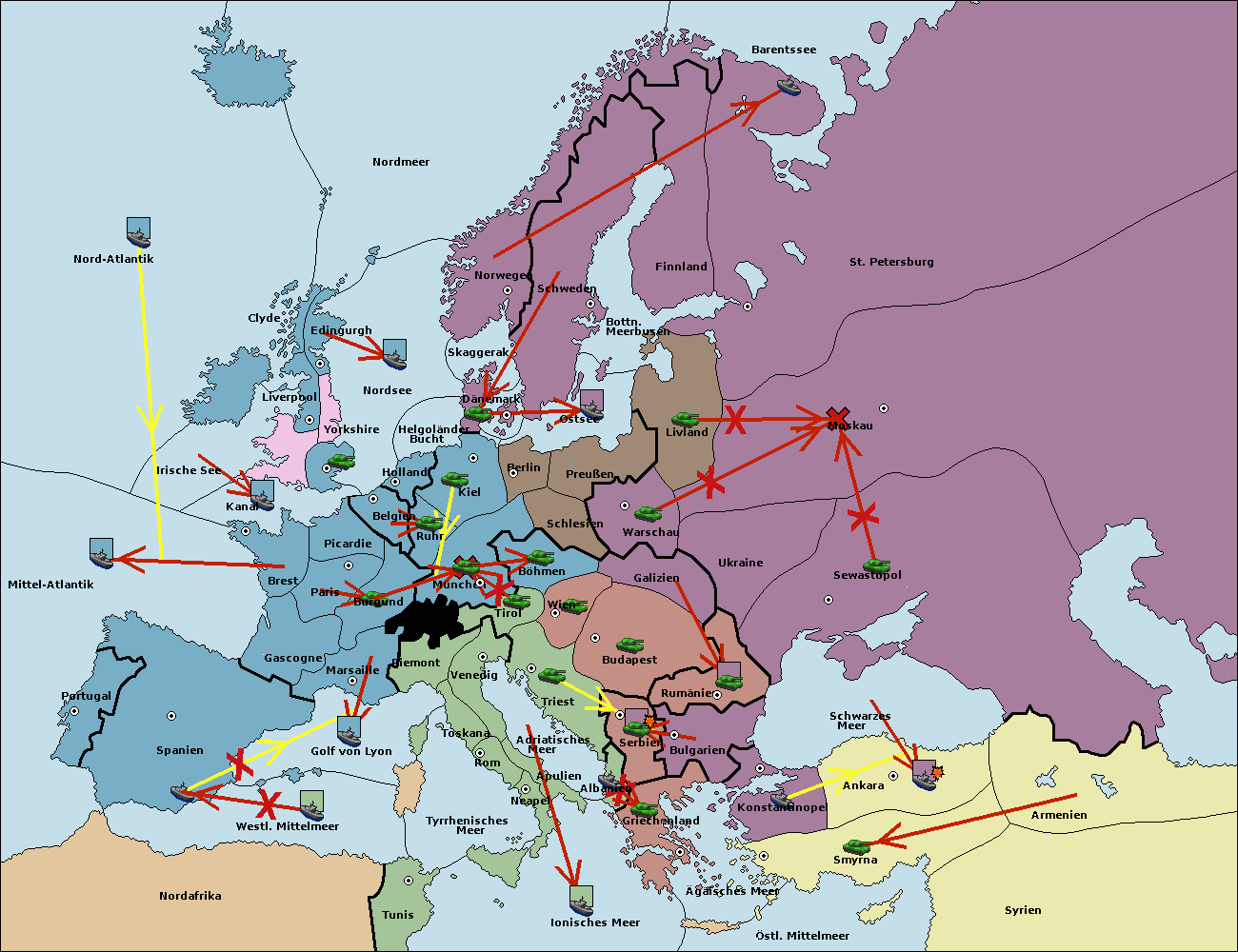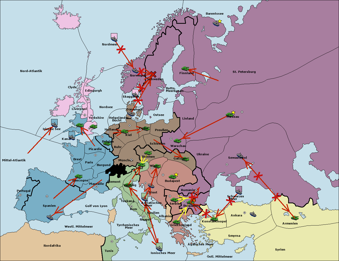 • Die Armee in Bulgarien wird zerstörtFlotte in Bulgarien gebaut.