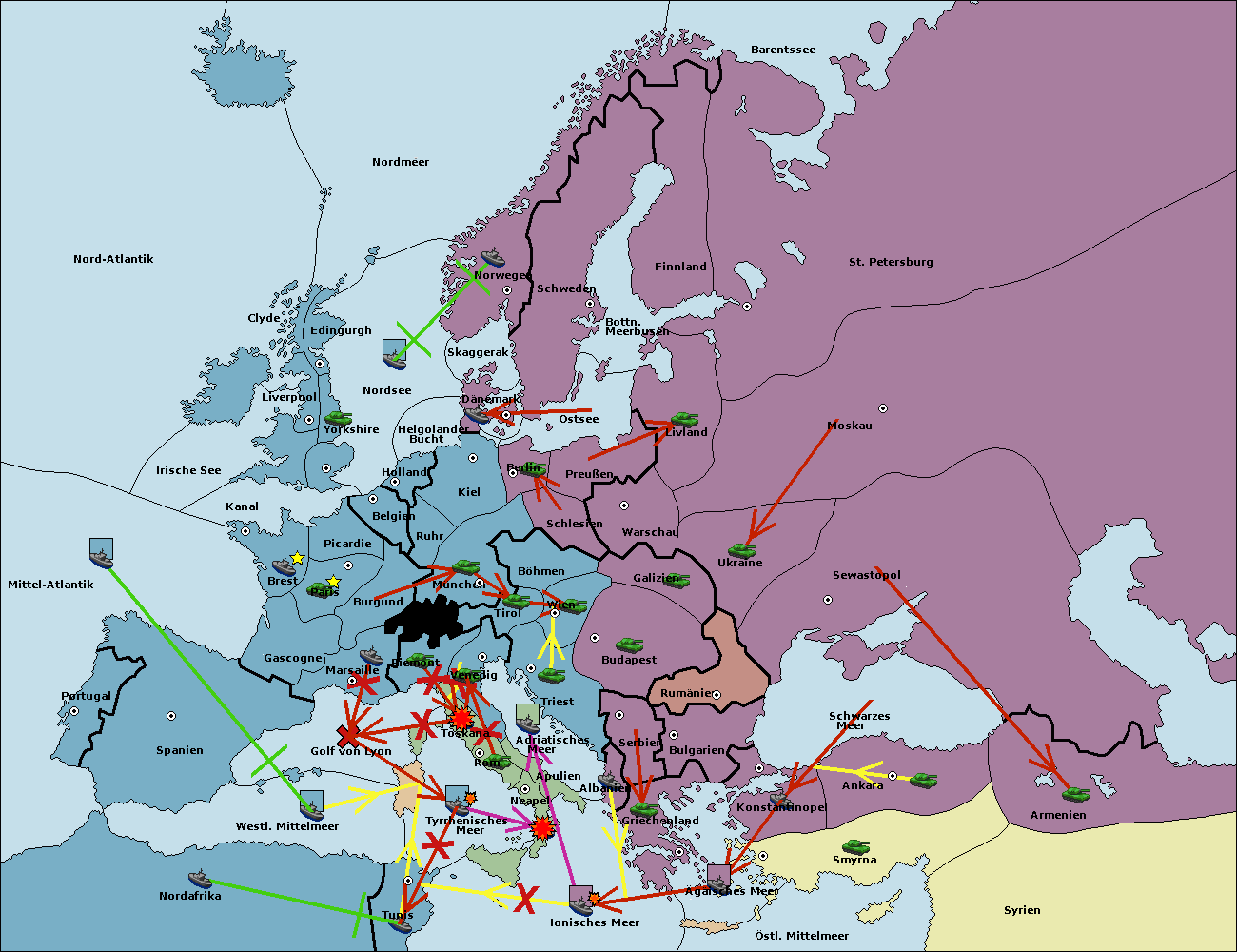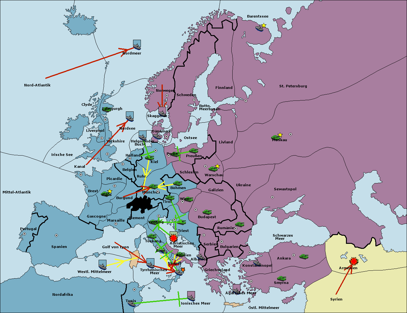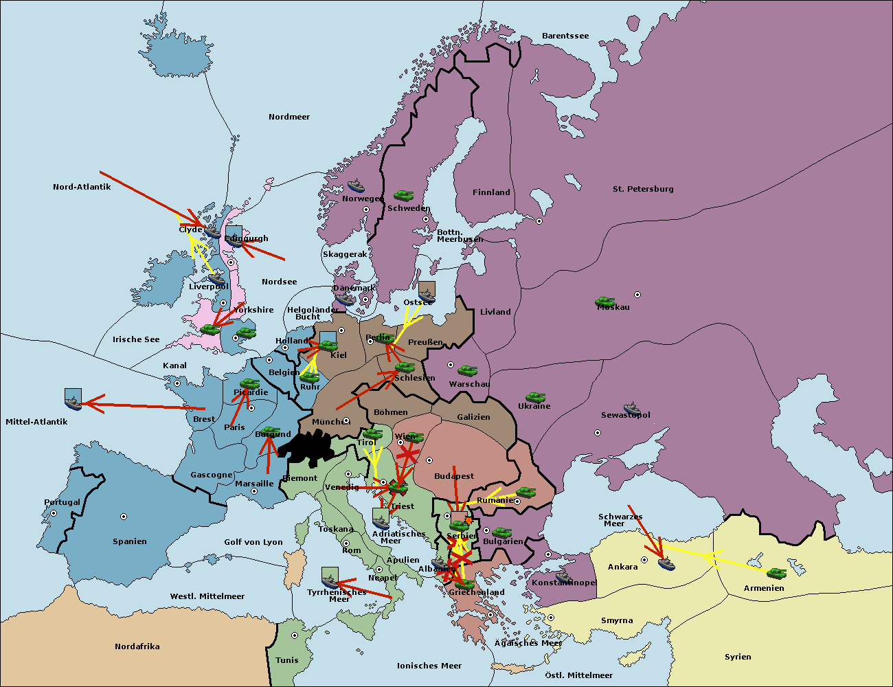 • Die Armee in Bulgarien wird zerstörtFlotte in Bulgarien gebaut.