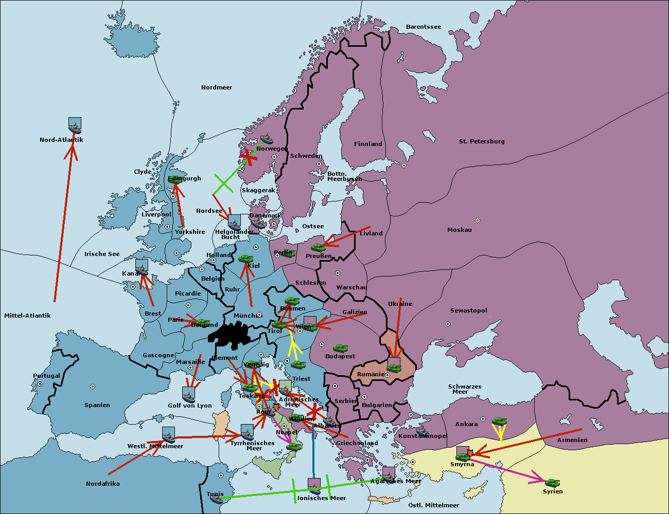 • Die Flotte in Nord Afrika move nach westl. Mittelmeer.
