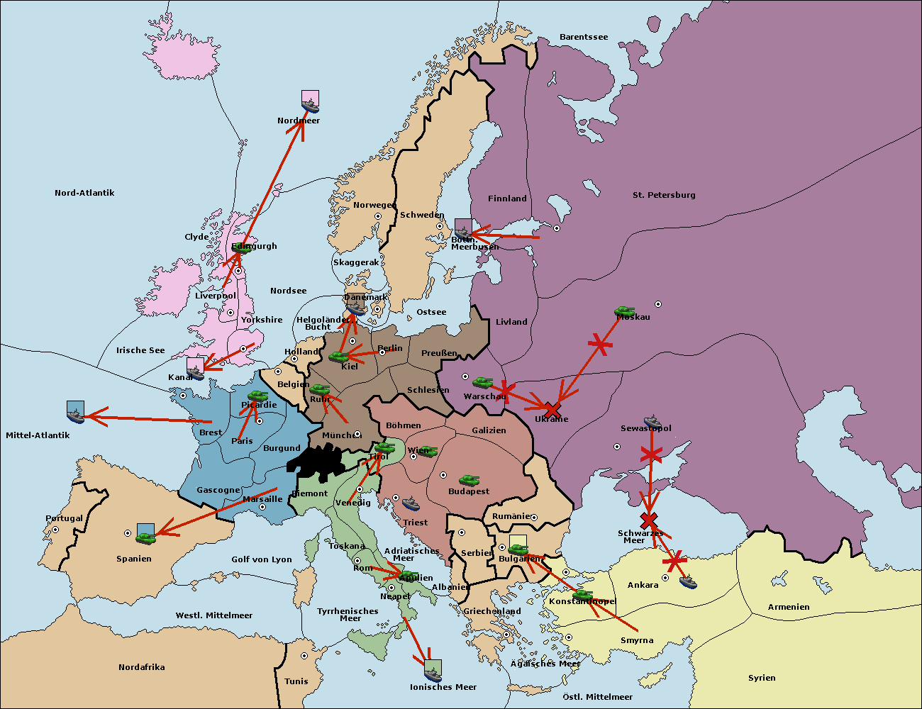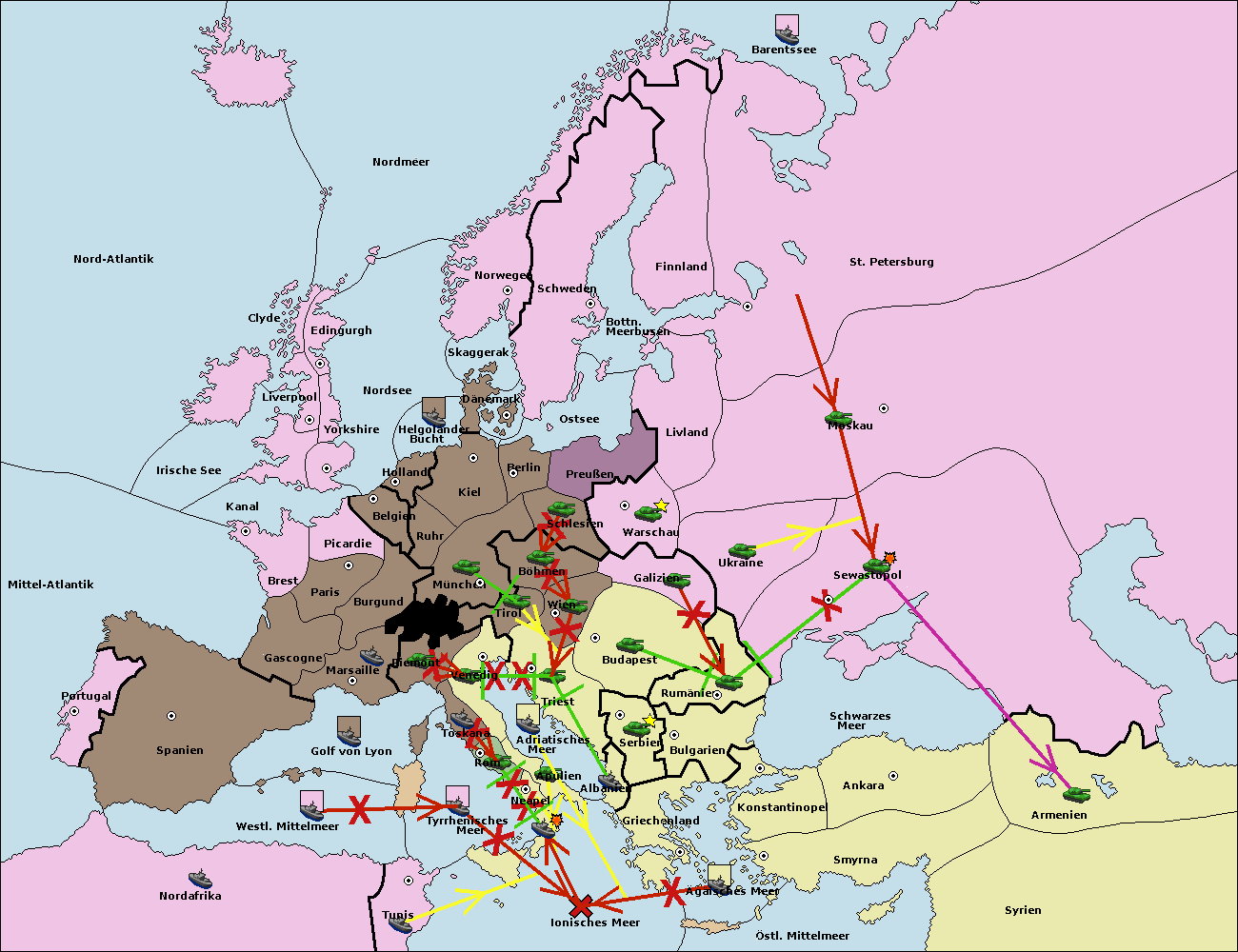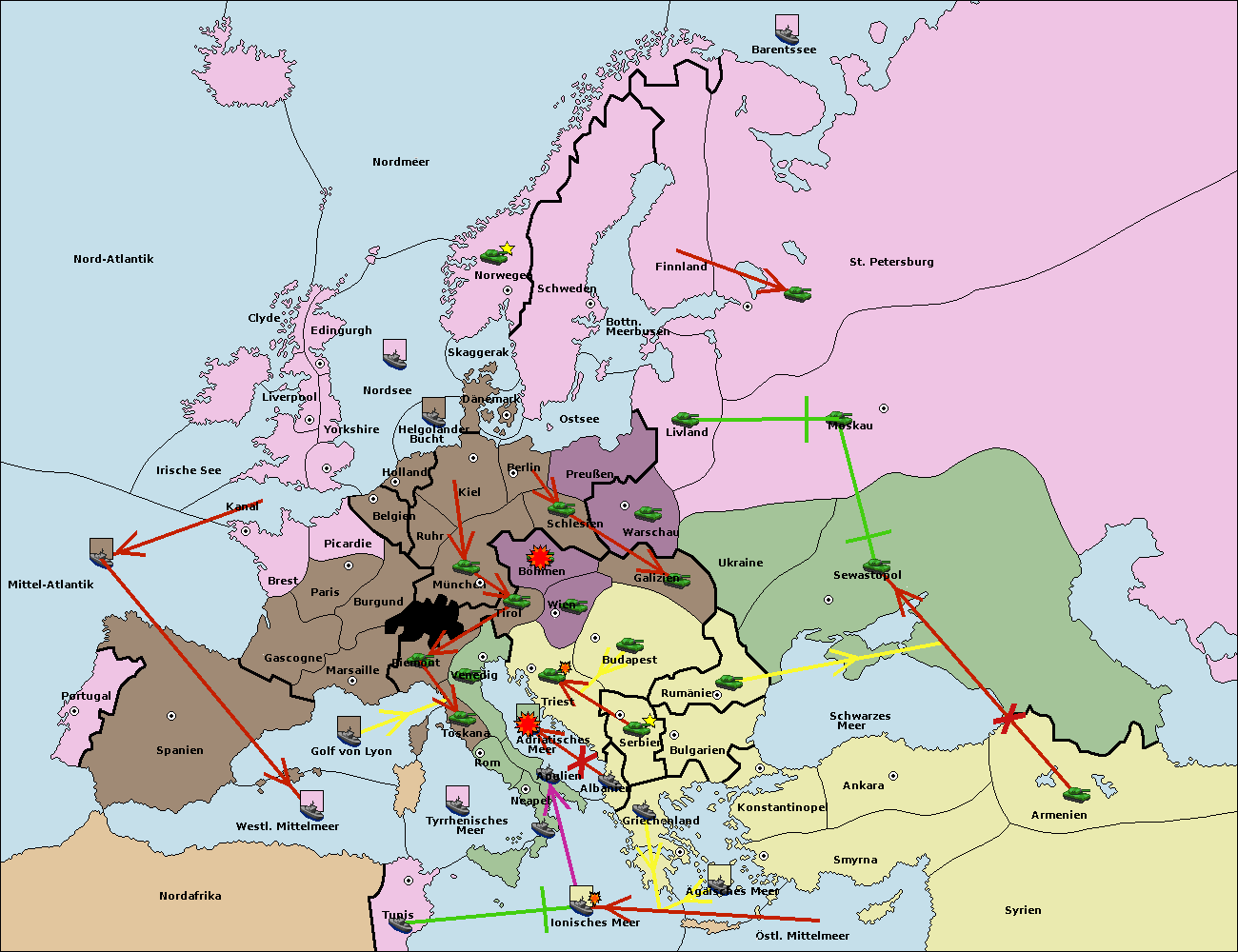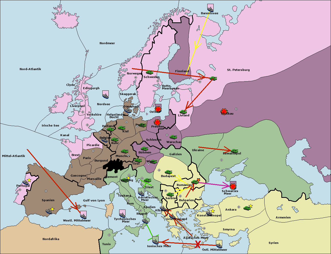 • Die Flotte in Griechenland move nach Bulgarien (Südküste). (gescheitert)