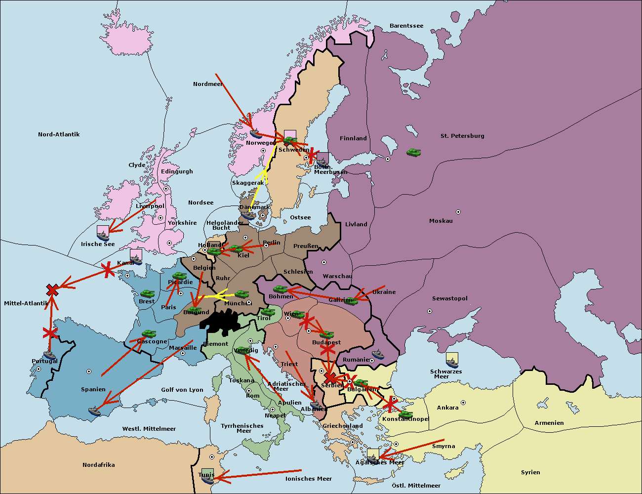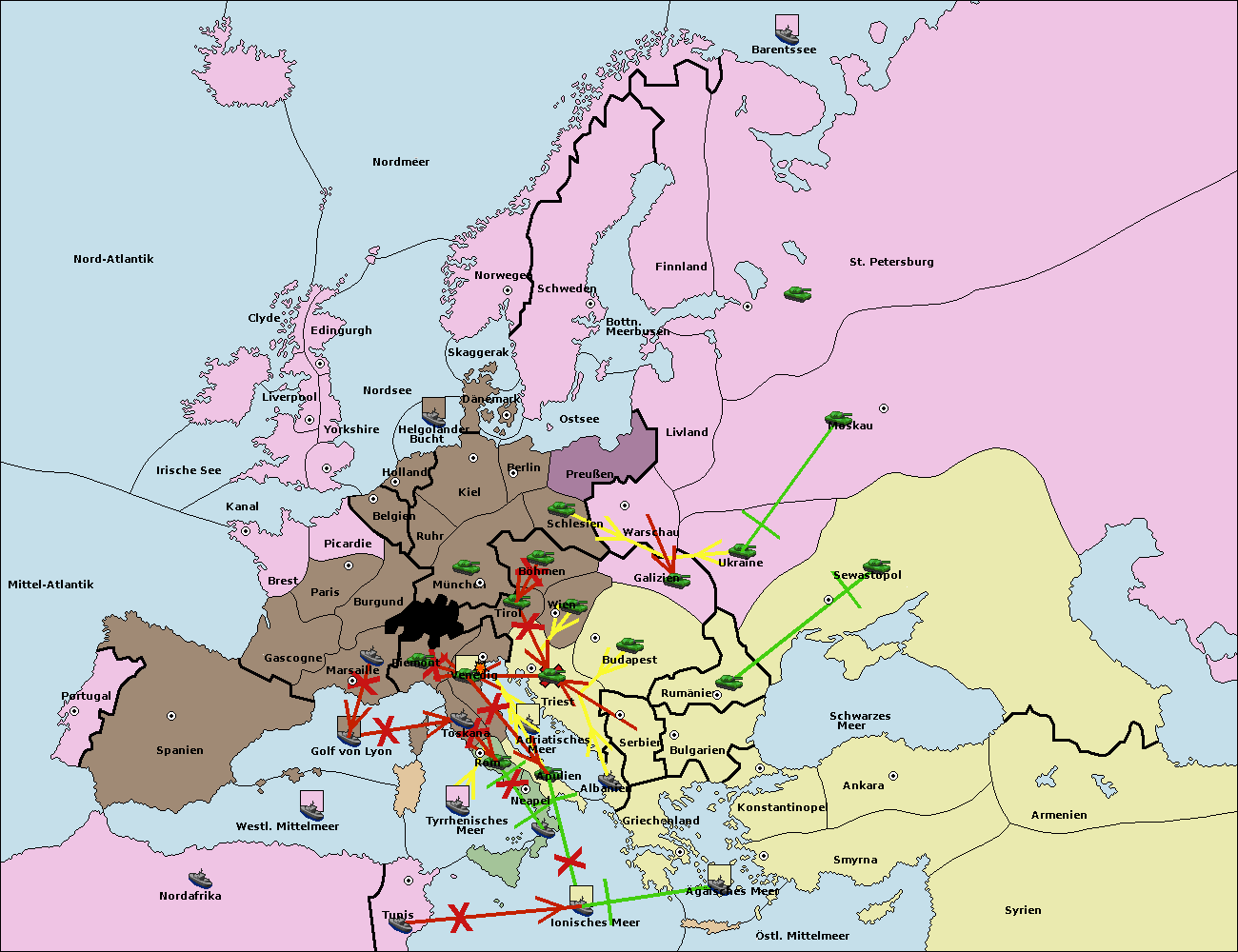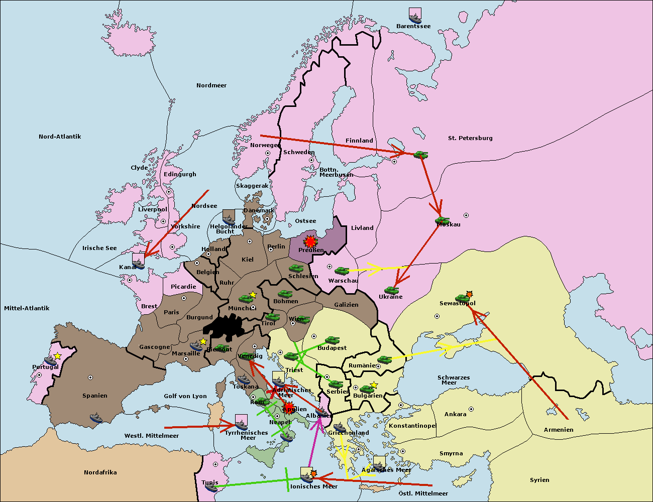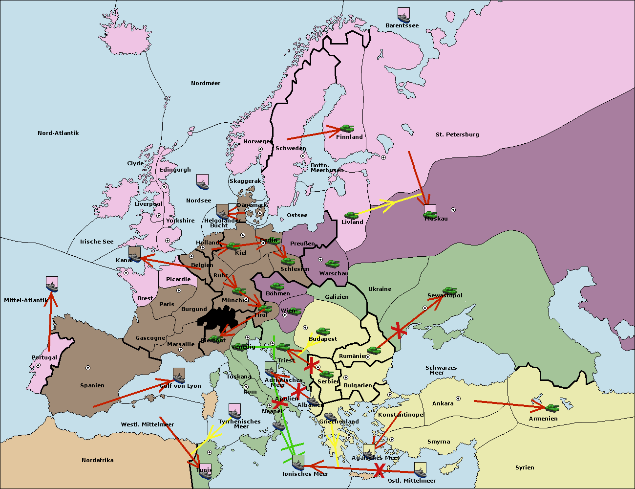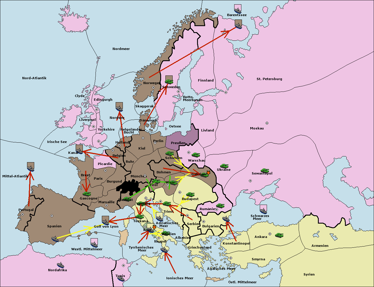 • Die Flotte in Griechenland move nach Bulgarien (Südküste). (gescheitert)