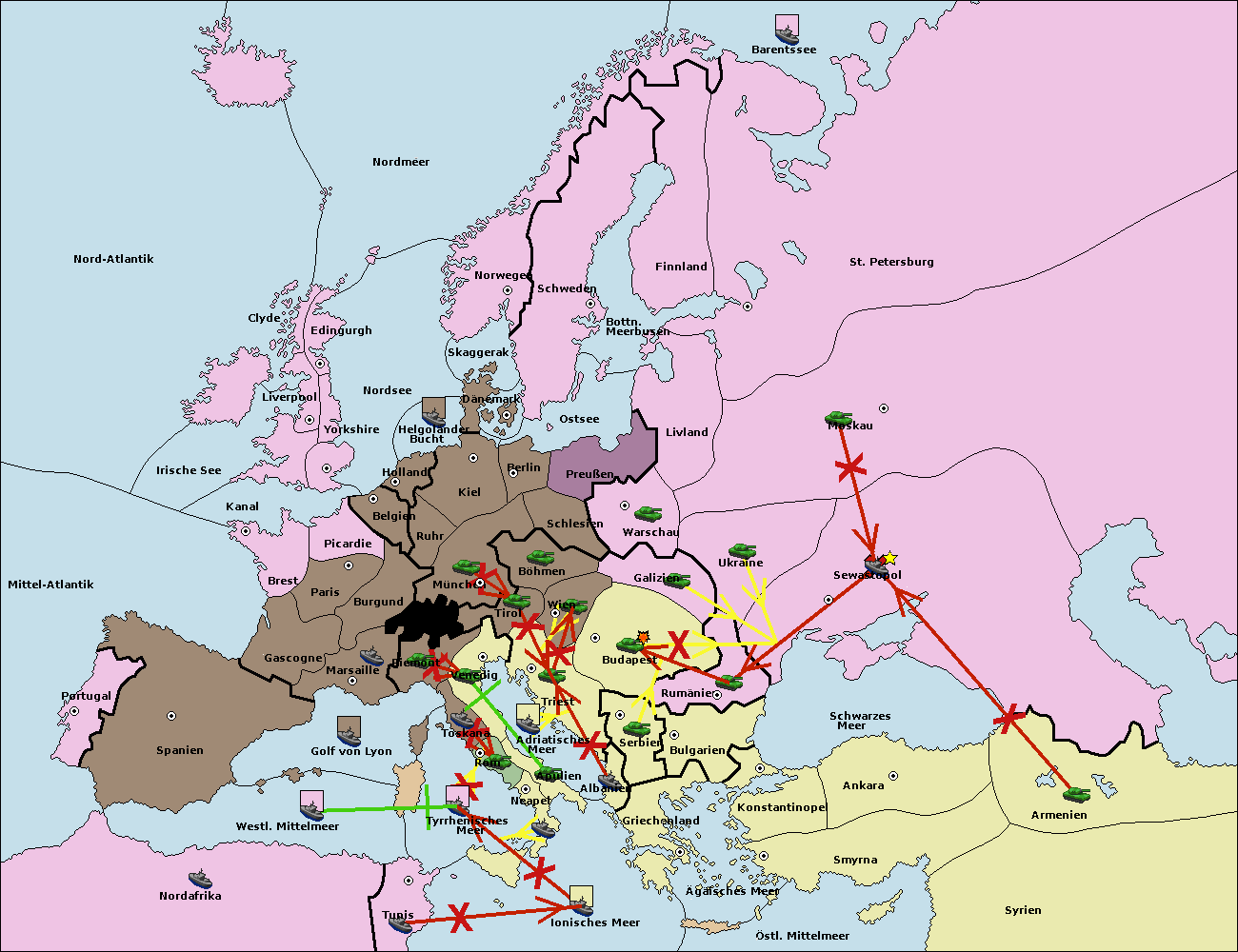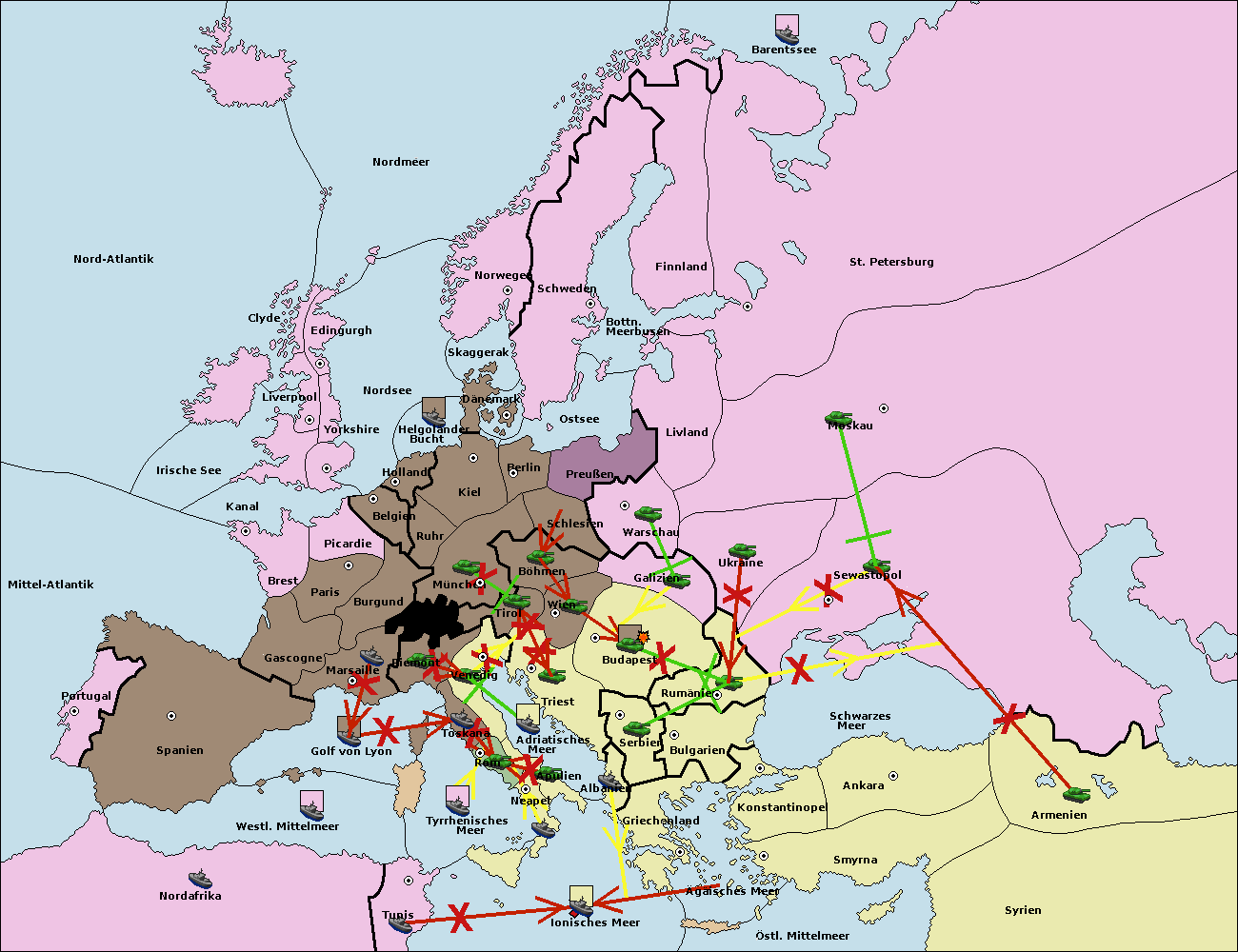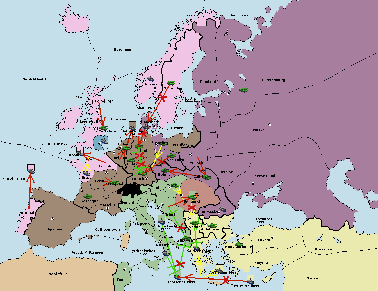 • Die Armee in Budapest support move nach Triest von Serbien.