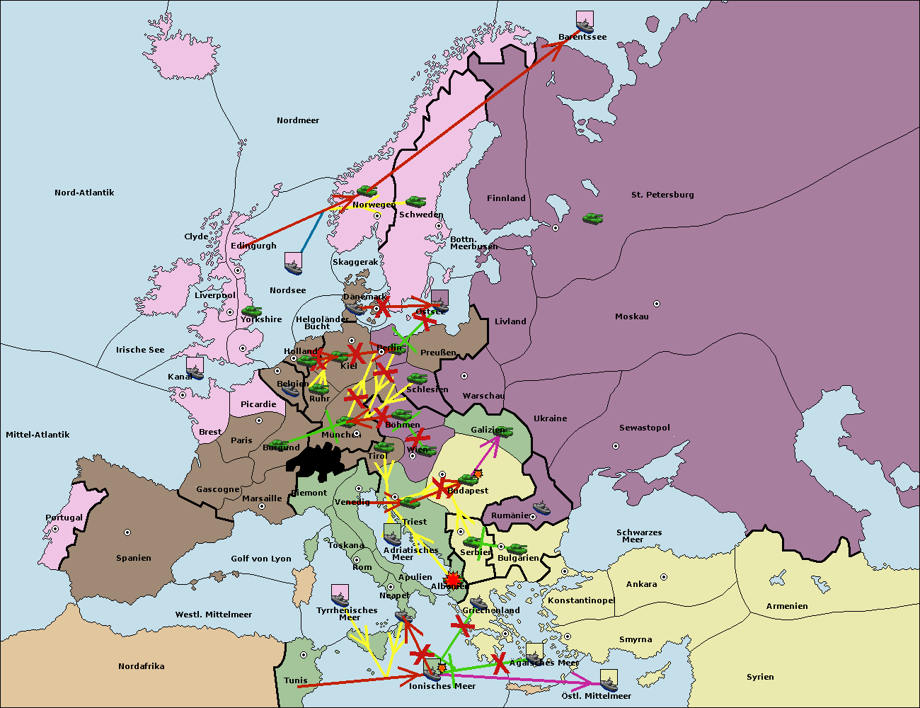 • Die Flotte in St. Petersburg (Nordküste) move nach Norwegen. (gescheitert)