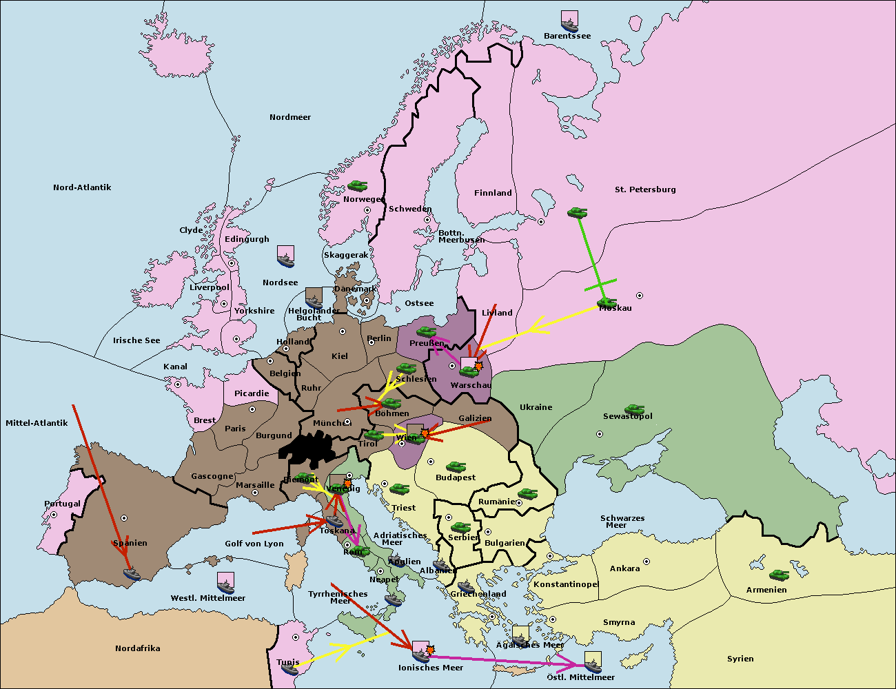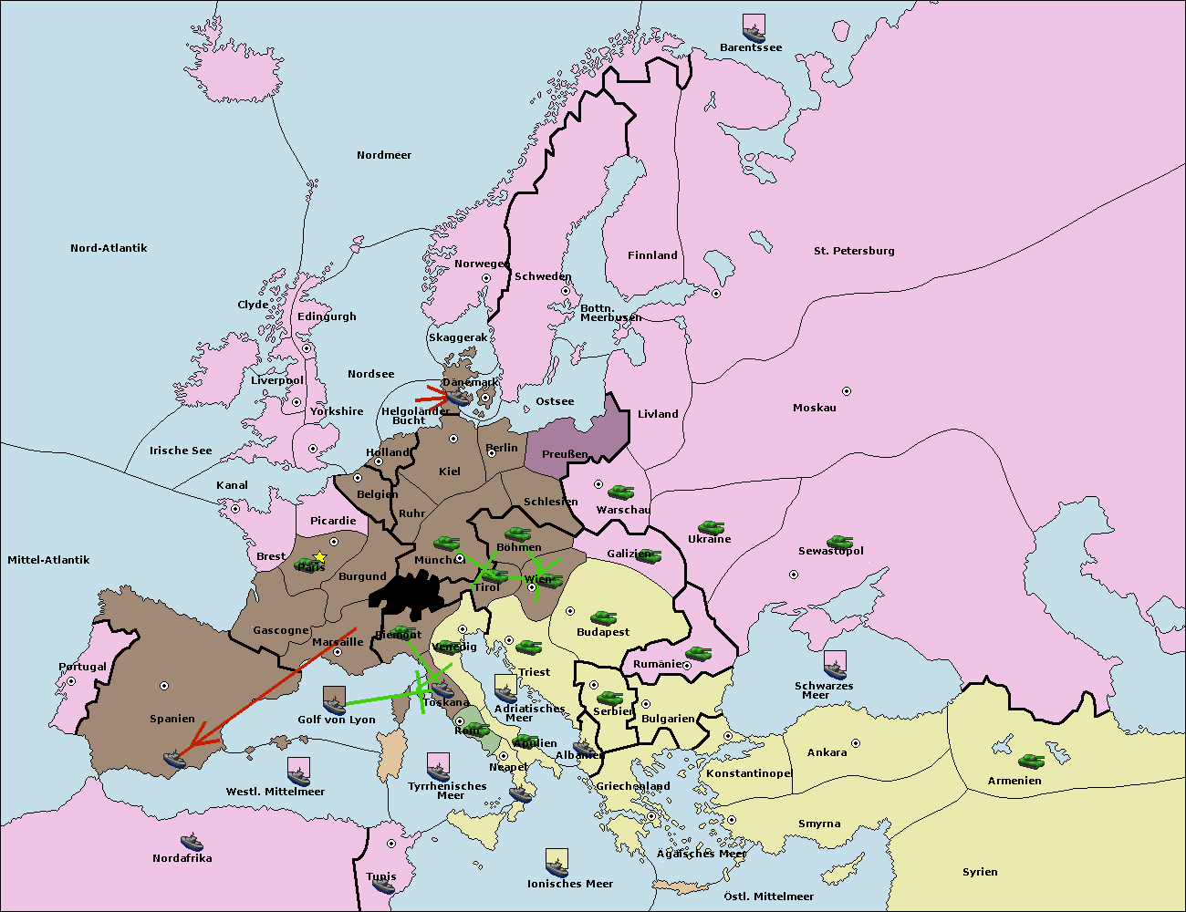 • Die Flotte in Spanien (Südküste) move nach westl. Mittelmeer.