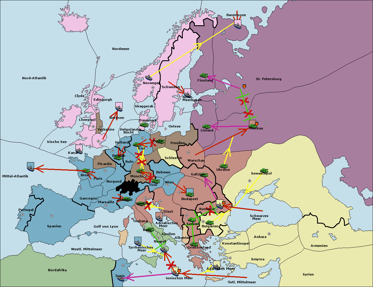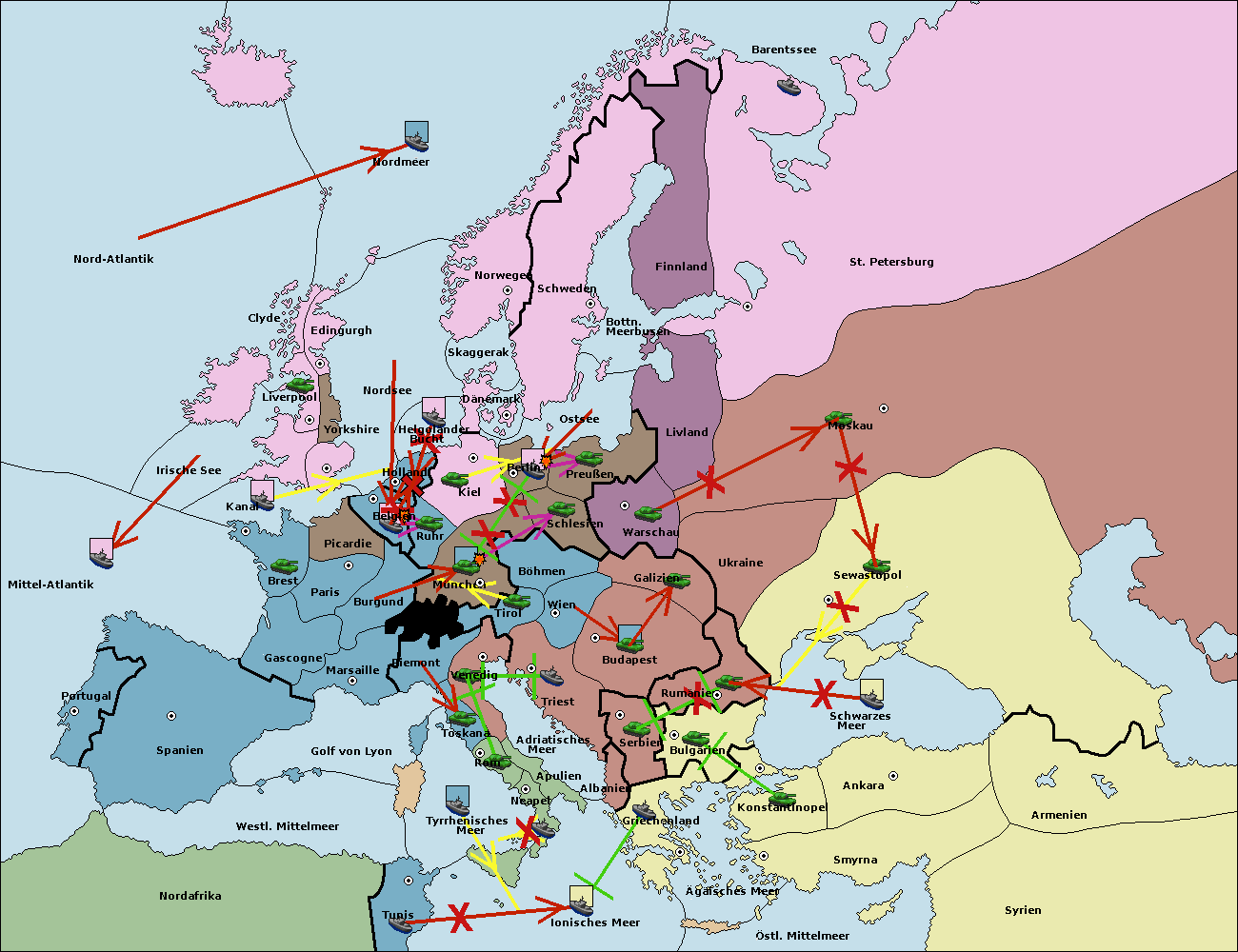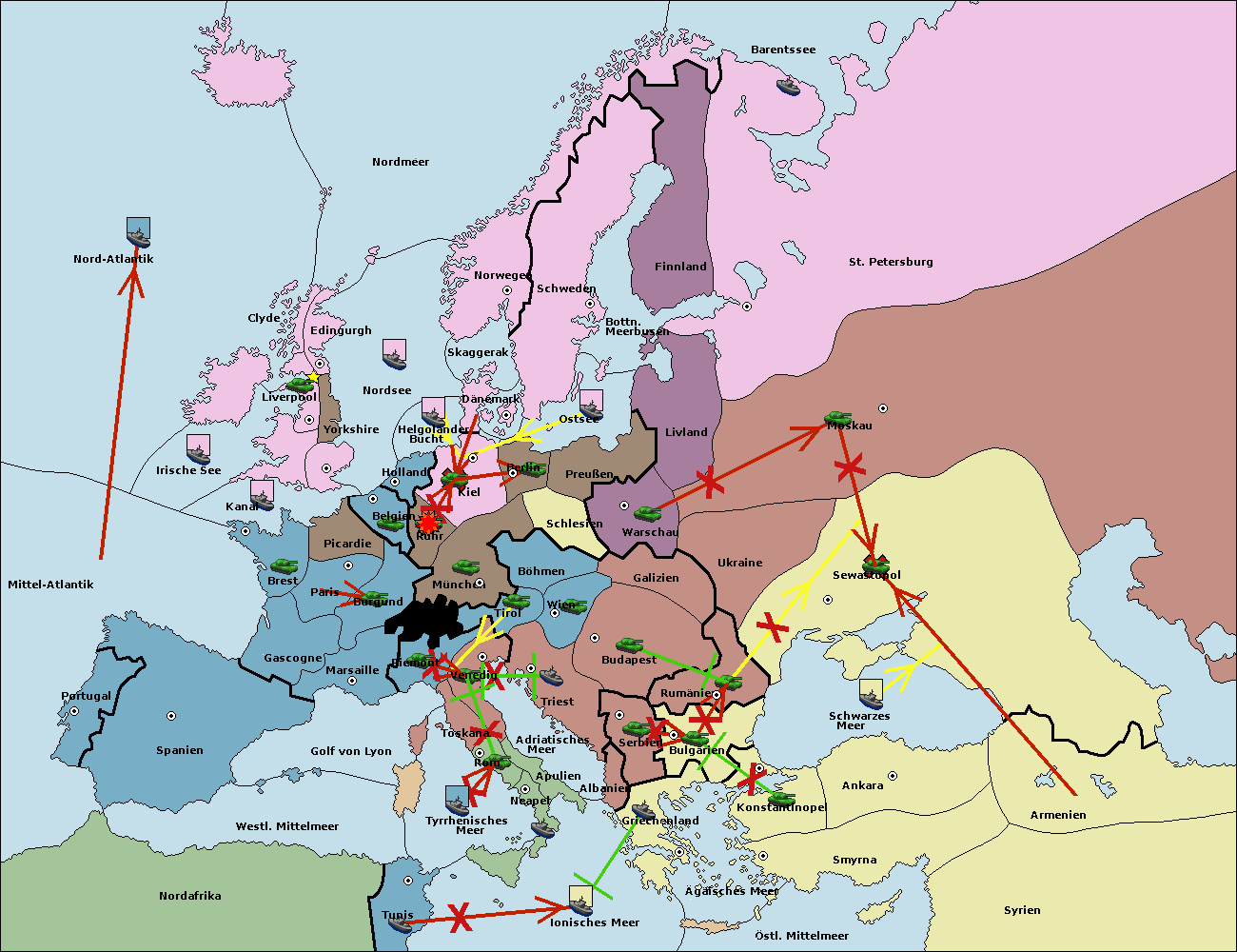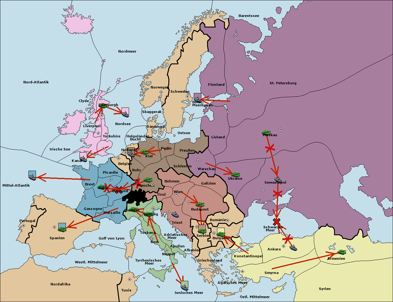 • Die Armee in Kiel support move nach München von Burgund.