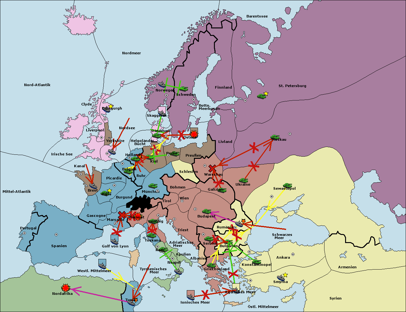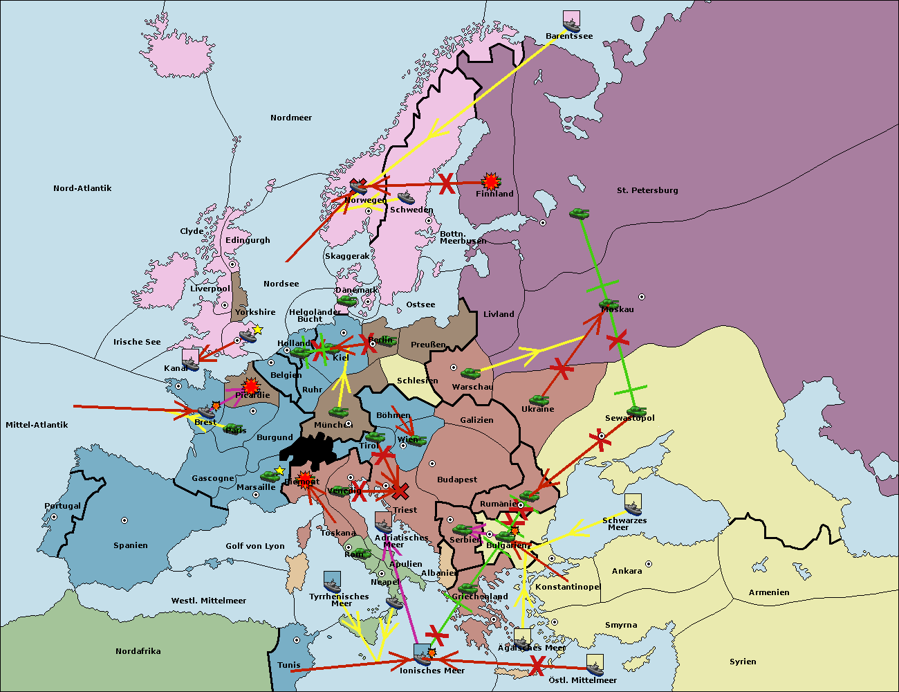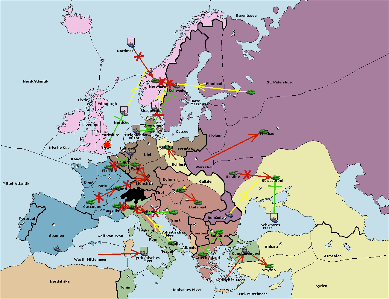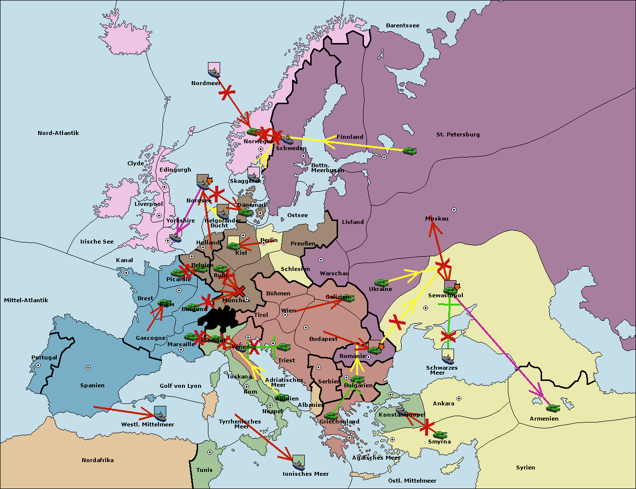 • Die Armee in Kiel support move nach München von Burgund.