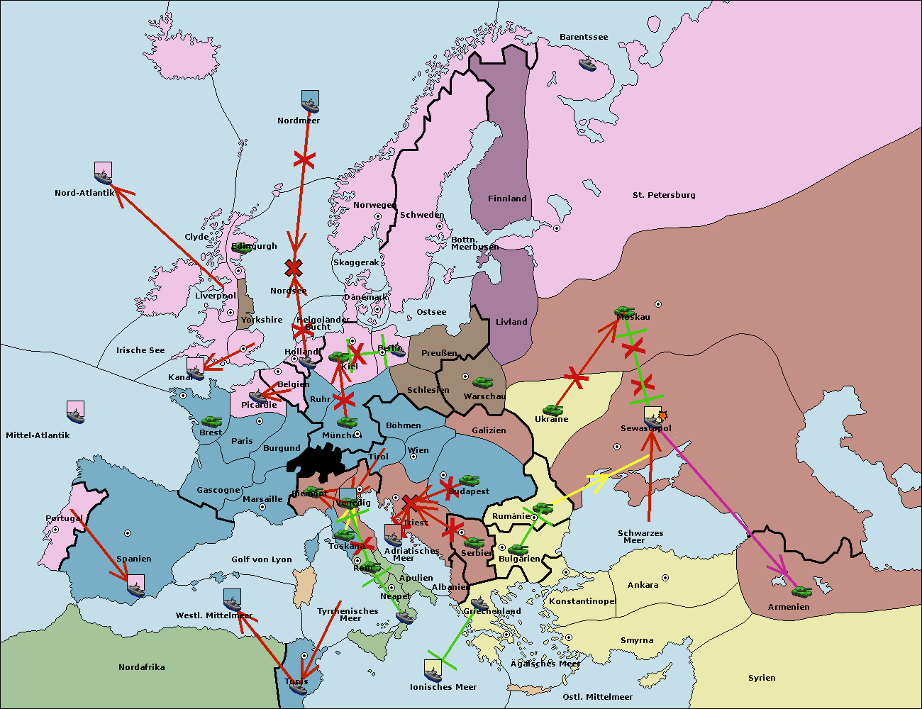 • Die Flotte in Rumänien support hold nach Sewastopol. (gescheitert)