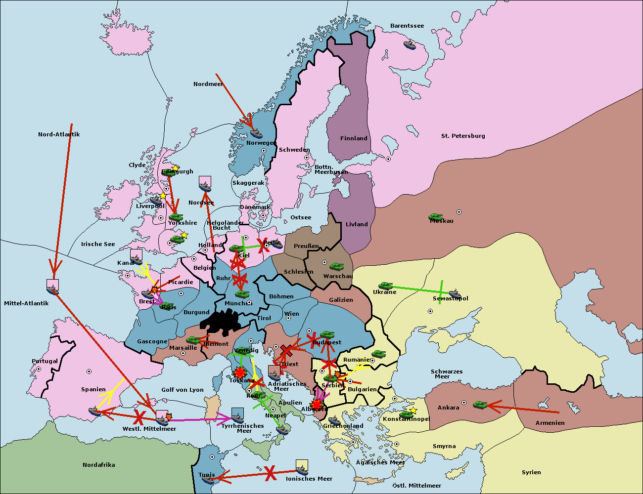 • Die Flotte in Spanien (Südküste) move nach westl. Mittelmeer.