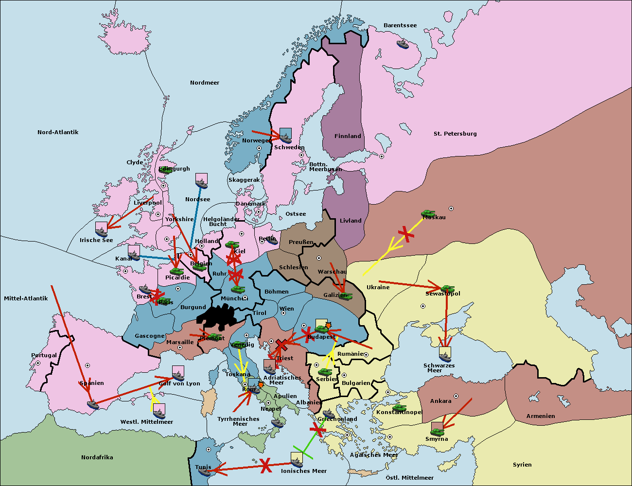 • Die Armee in Triest support move nach Wien von Budapest. (gescheitert)