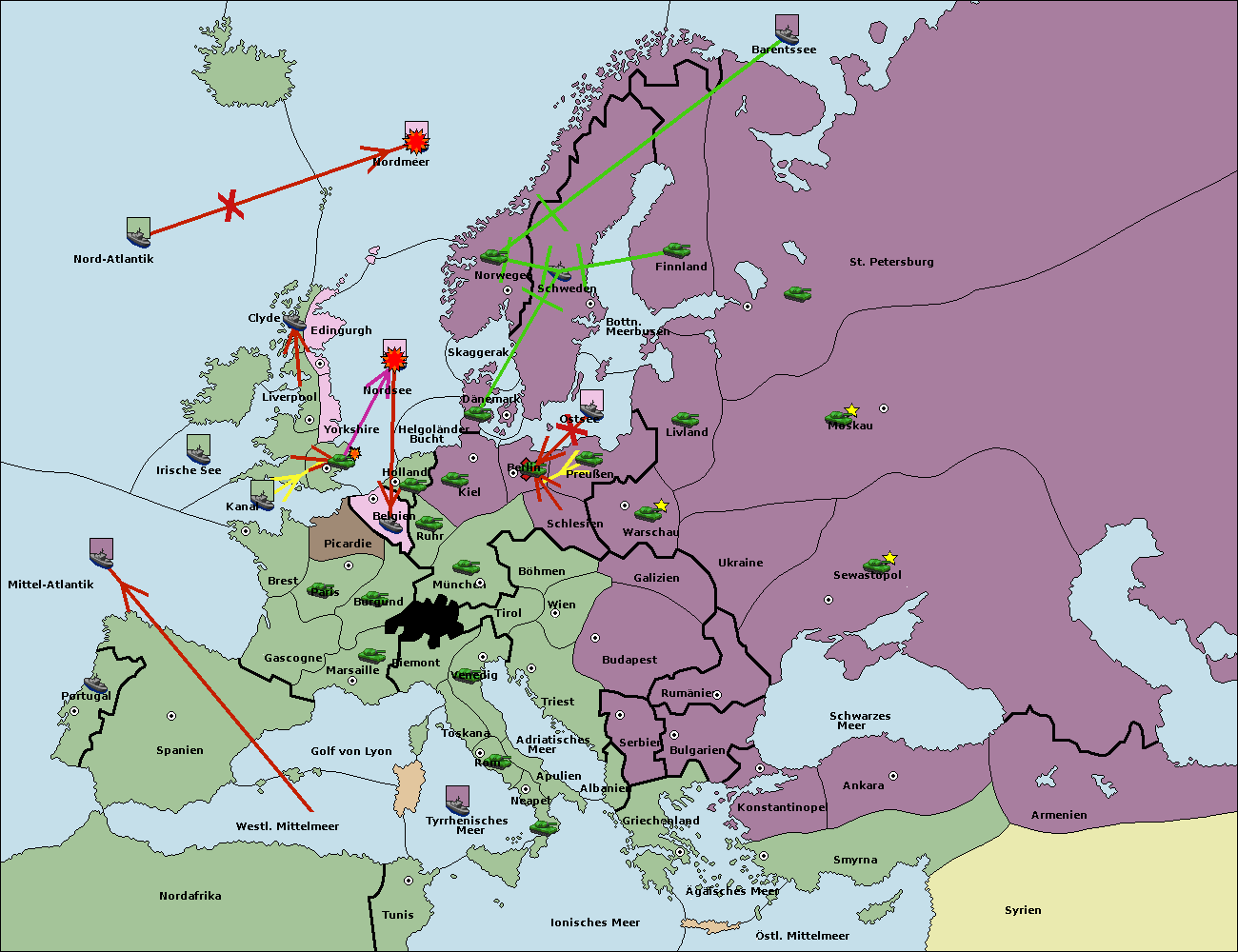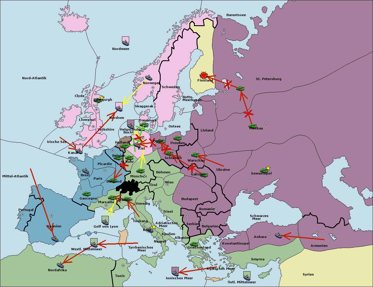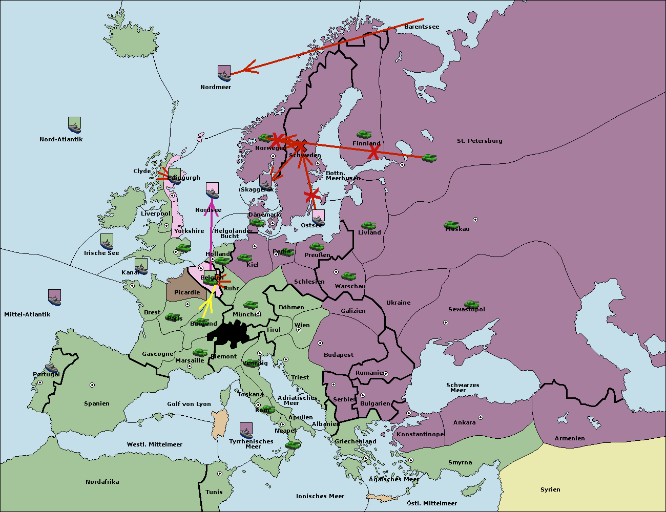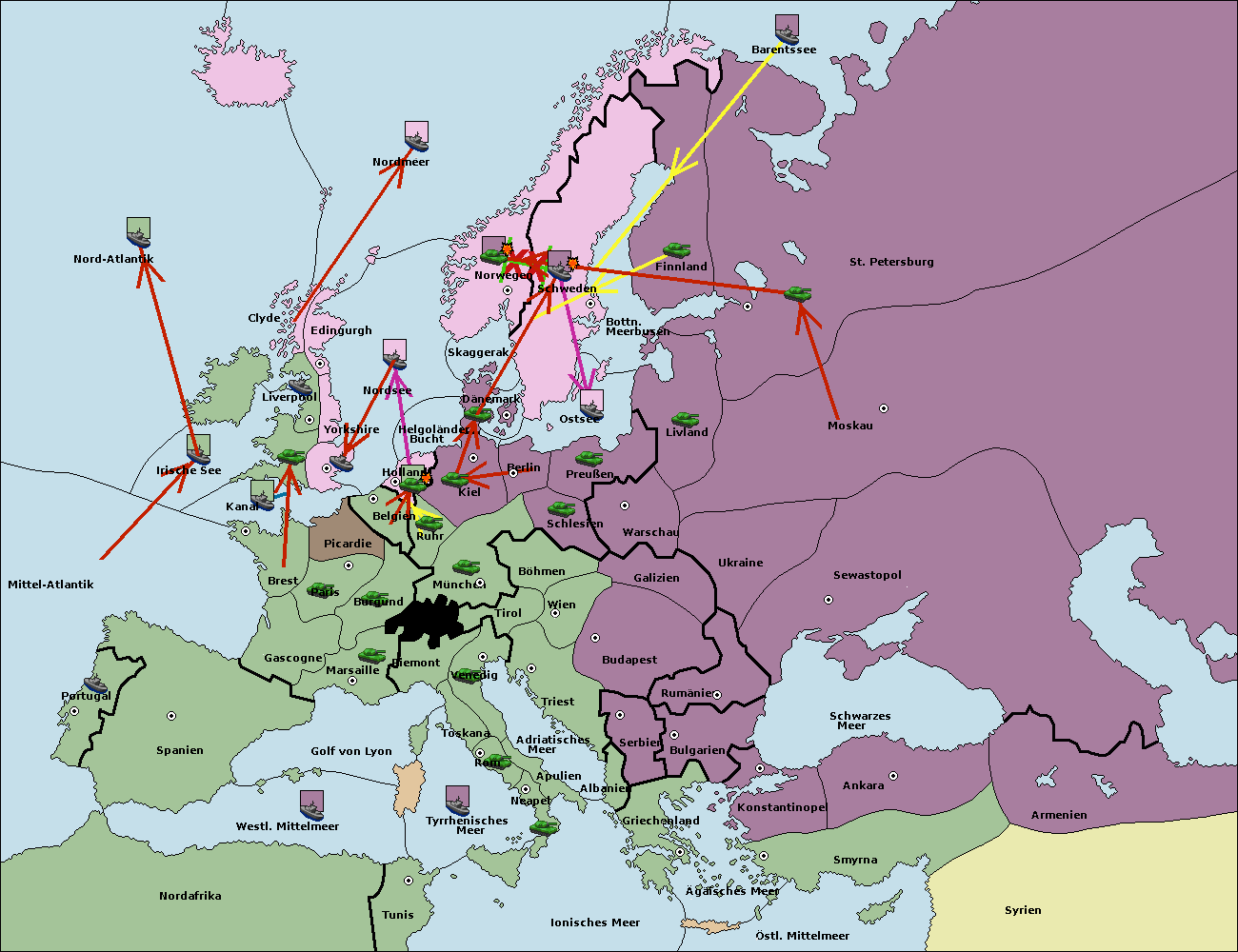 • Die Flotte in St. Petersburg (Nordküste) move nach Norwegen.