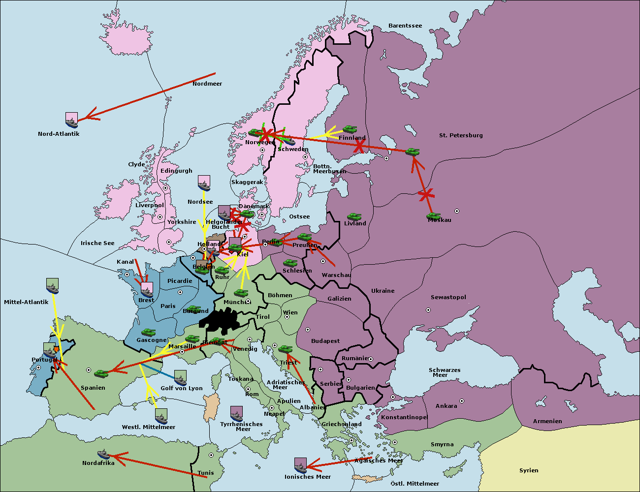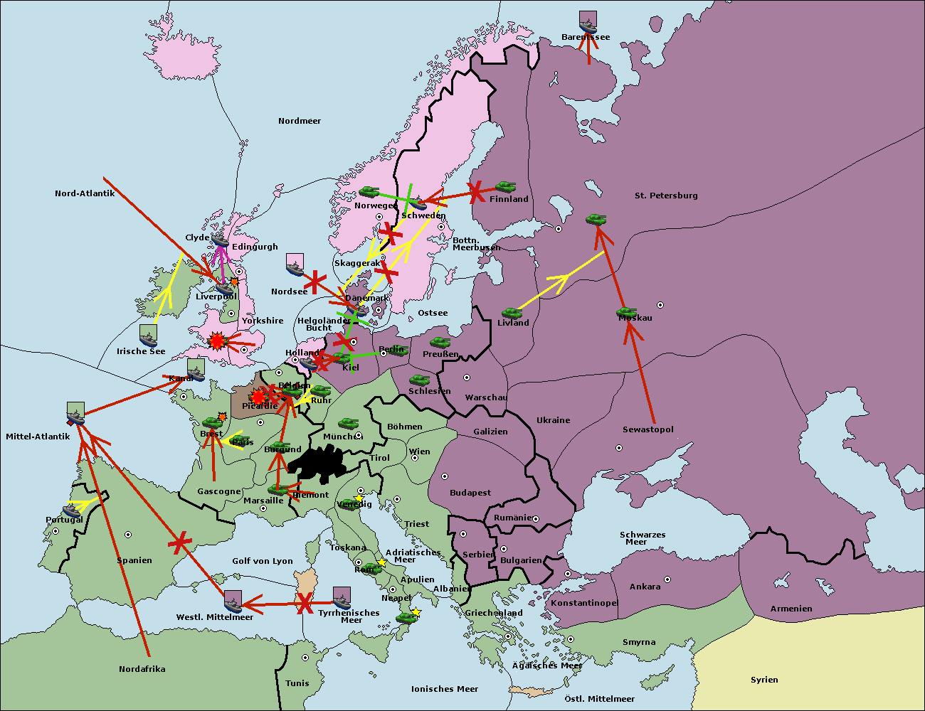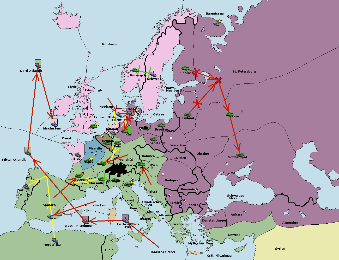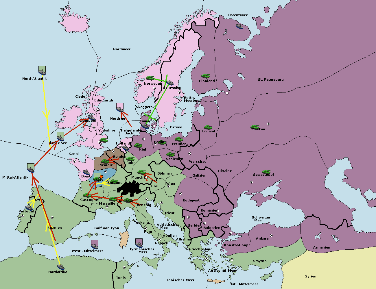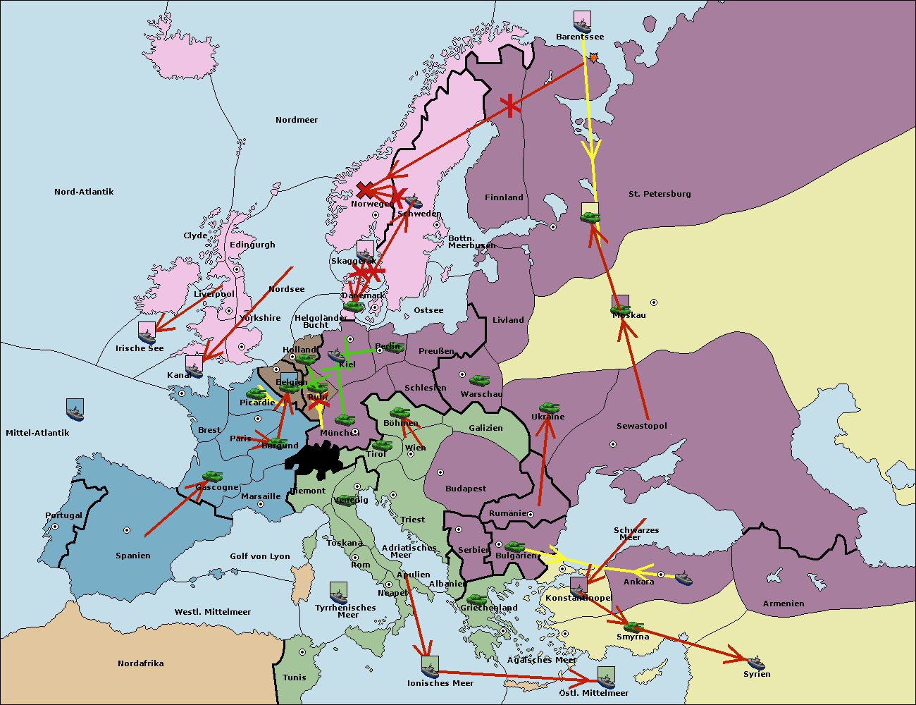 • Die Flotte in St. Petersburg (Nordküste) move nach Norwegen.