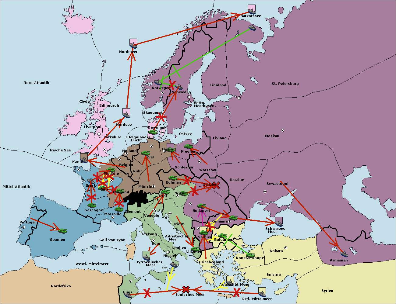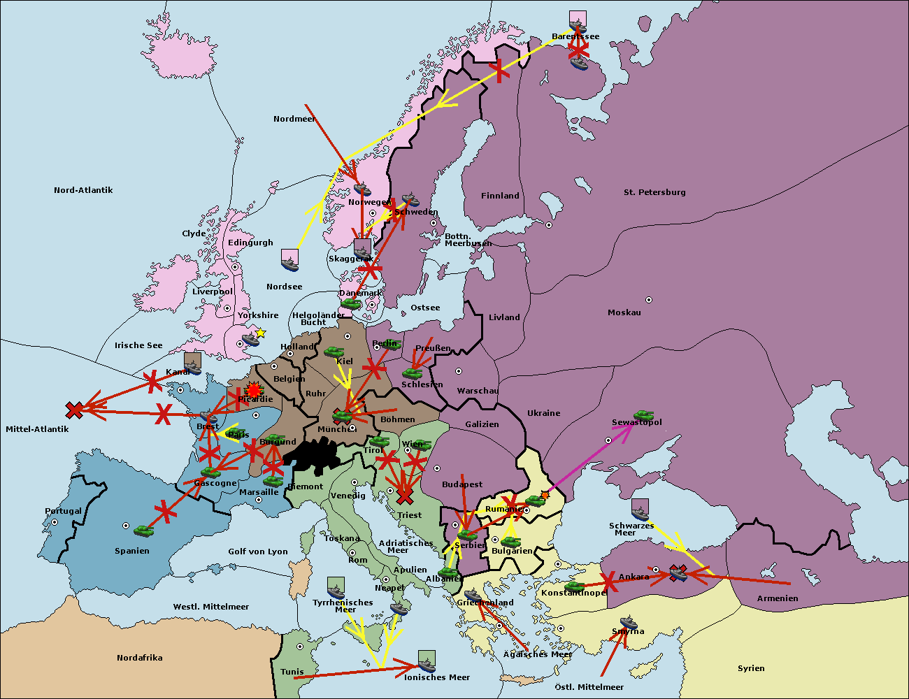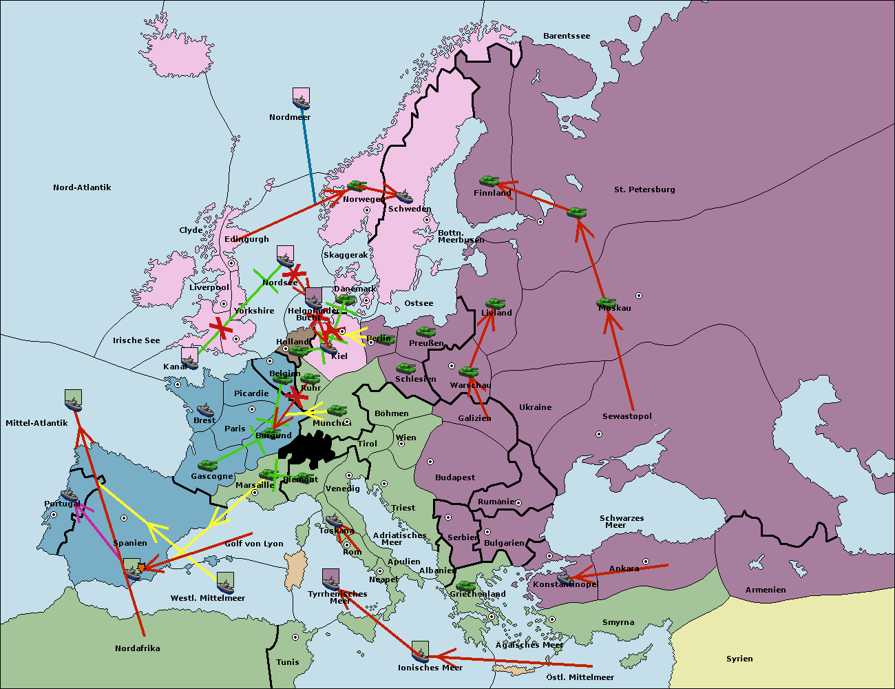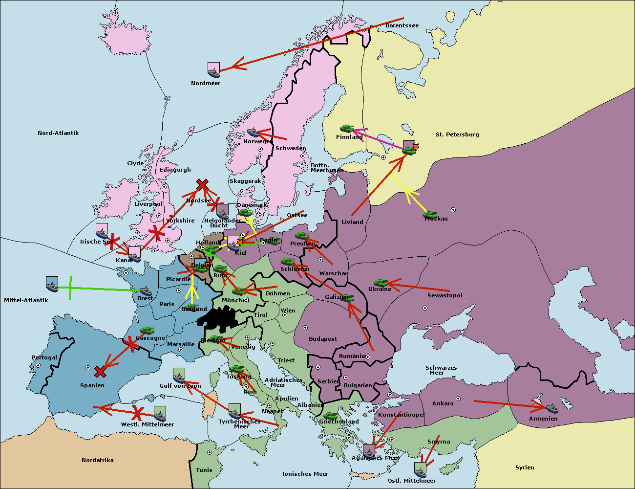 • Die Flotte in St. Petersburg (Nordküste) move nach Norwegen.