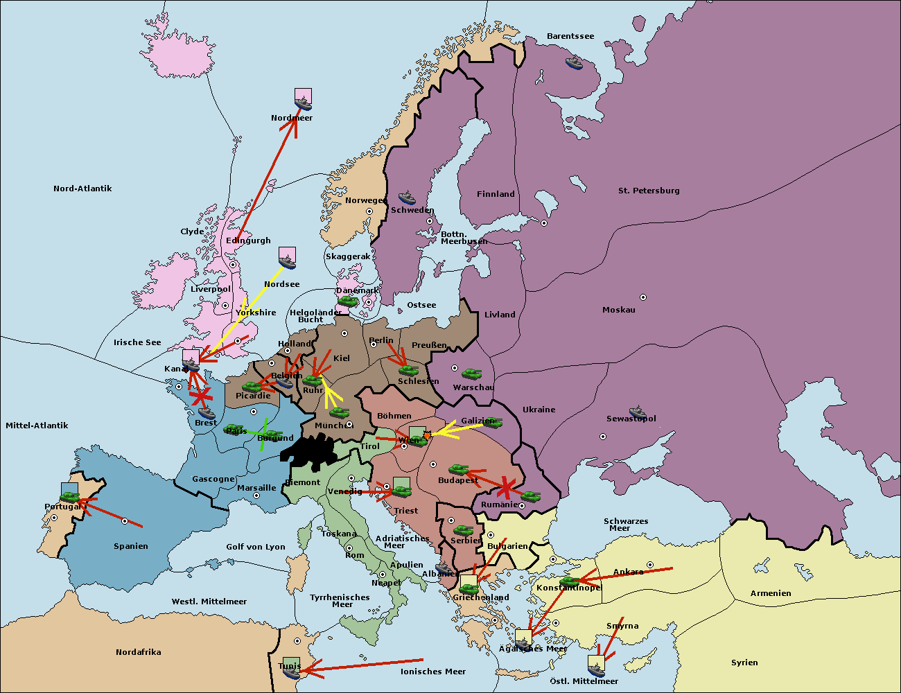 • Die Armee in Wien support move nach Budapest von Galizien.