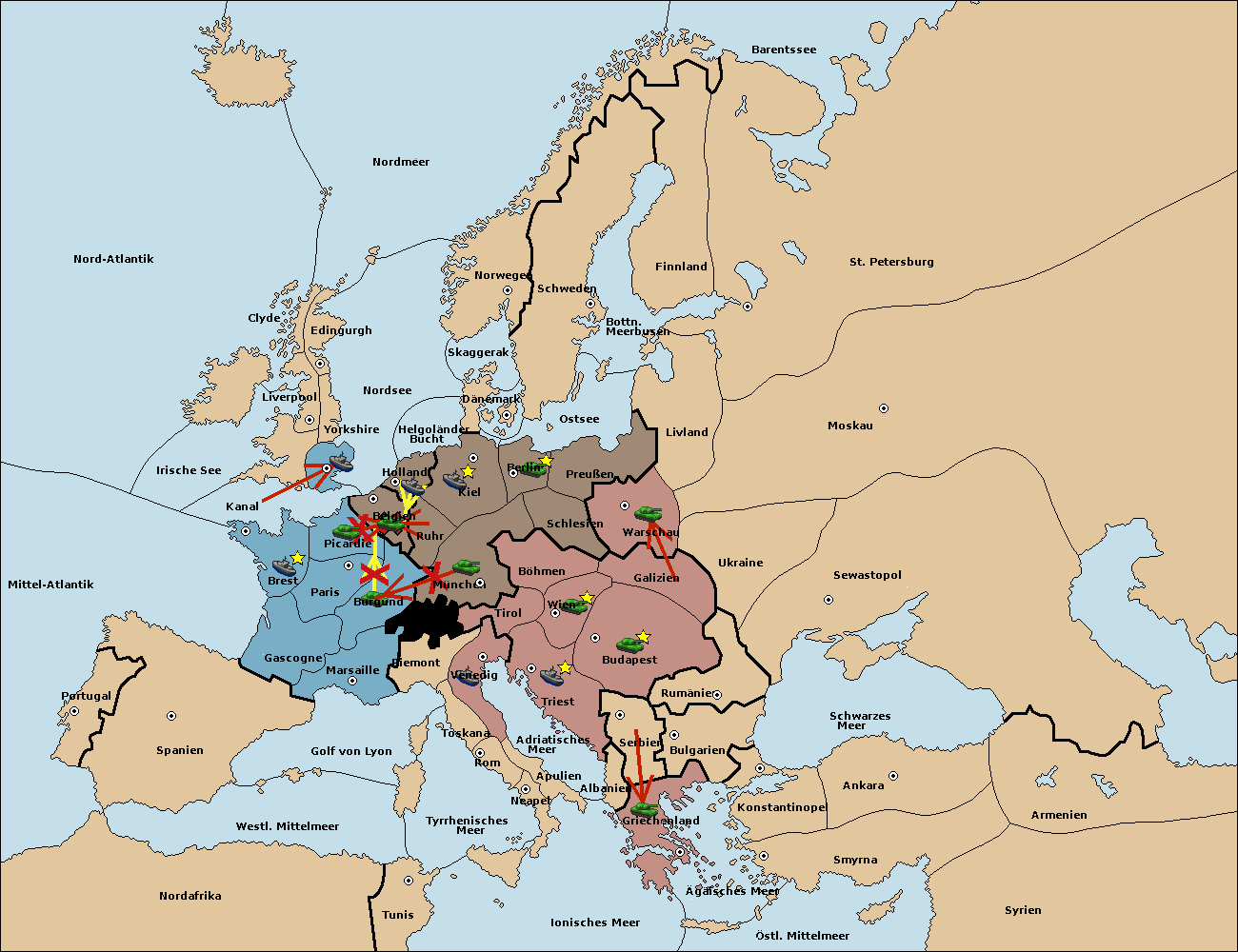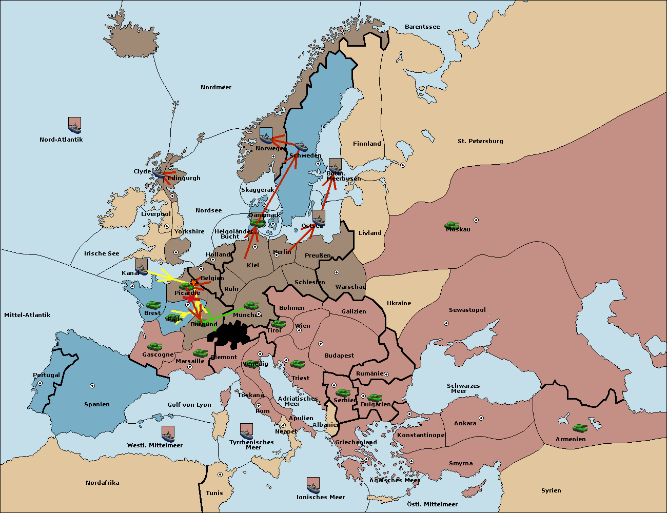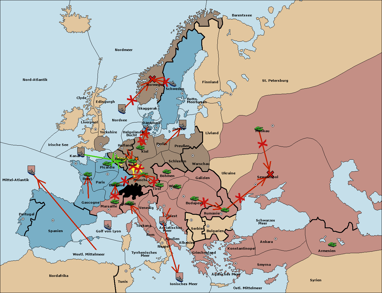 • Die Armee in Belgien support move nach Burgund von München. (gescheitert)