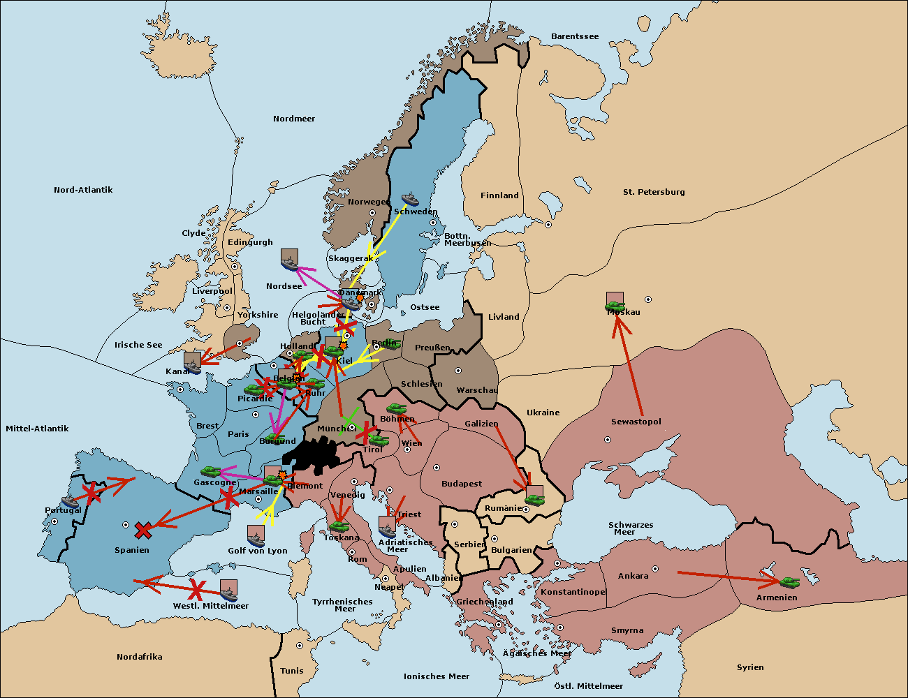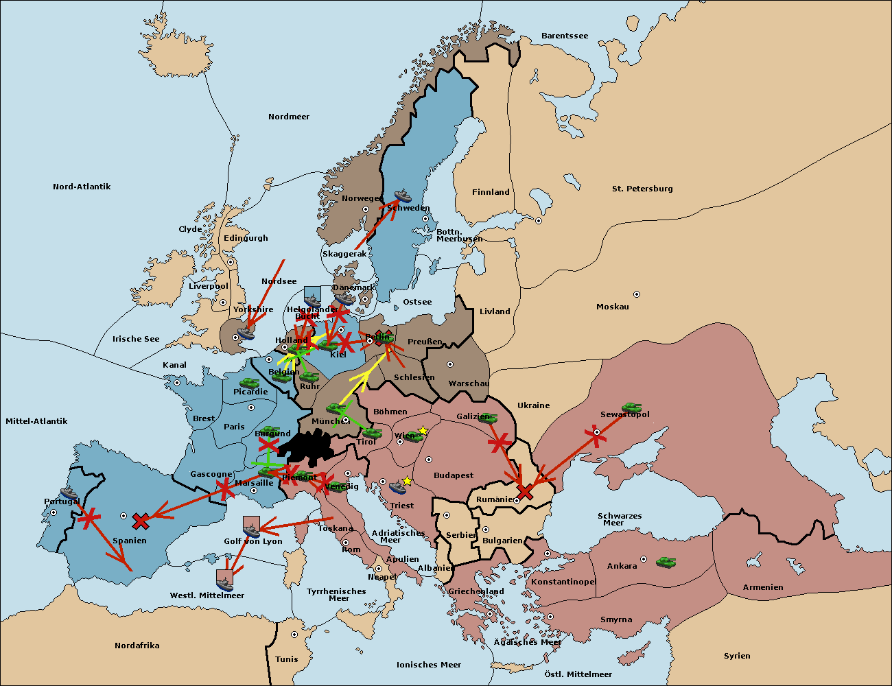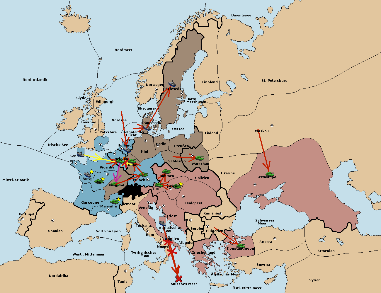 • Die Armee in Belgien support move nach Burgund von München. (gescheitert)