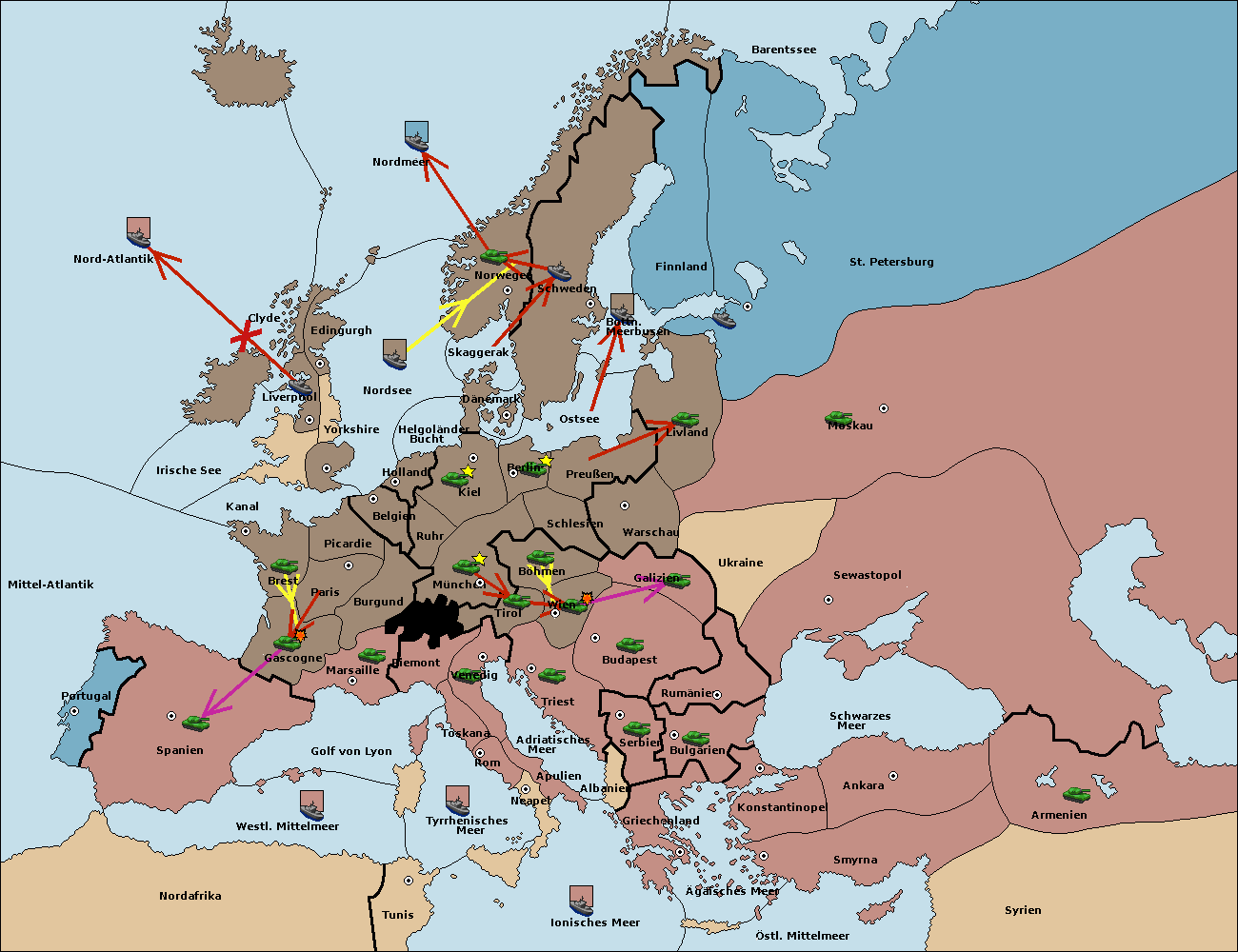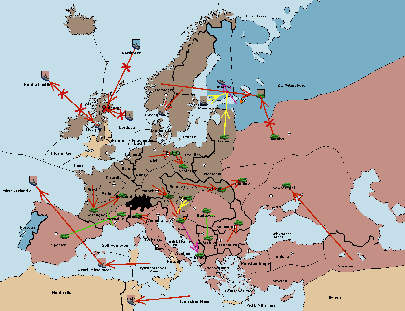 • Die Armee in Wien support move nach Triest von Tirol.