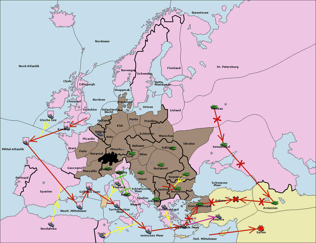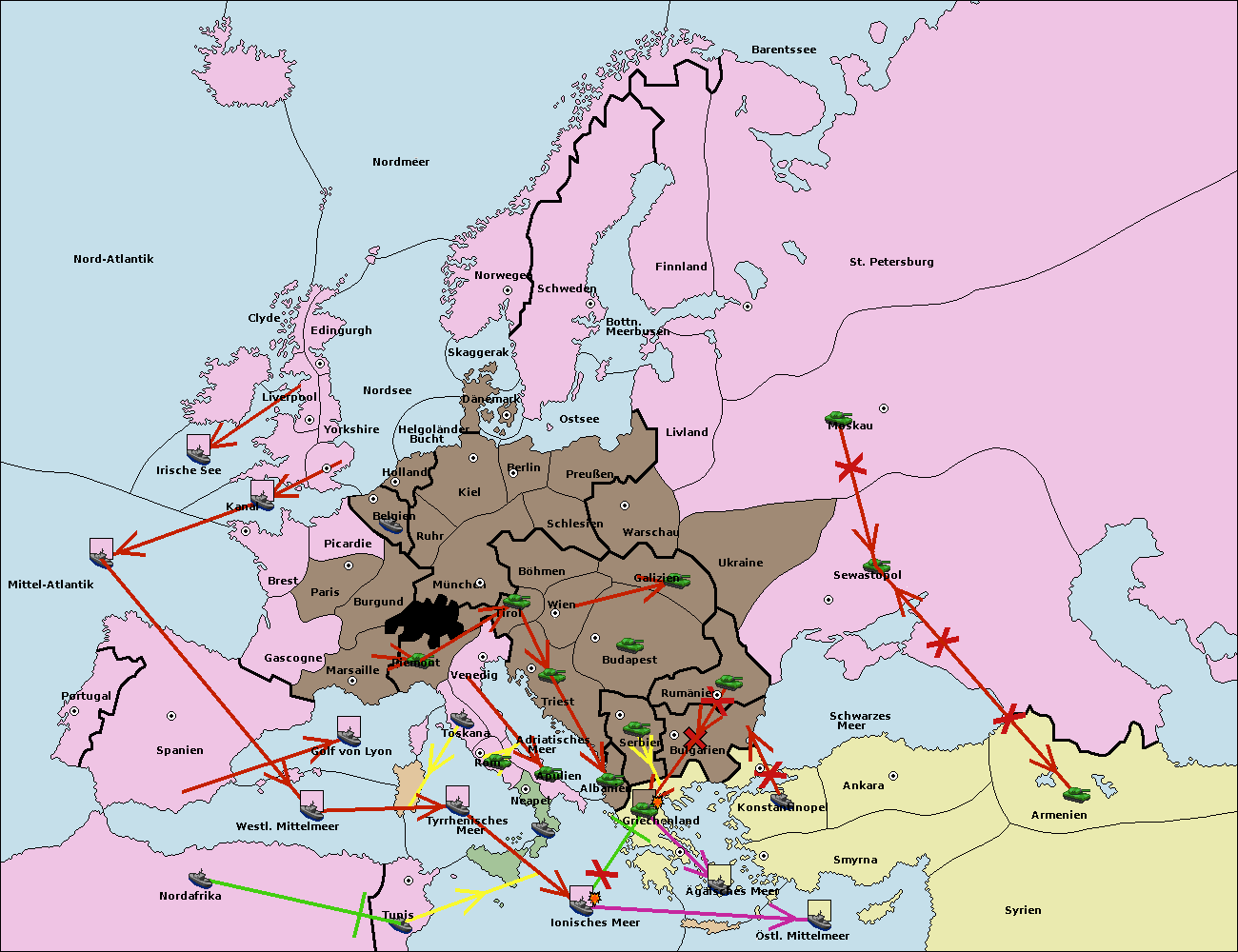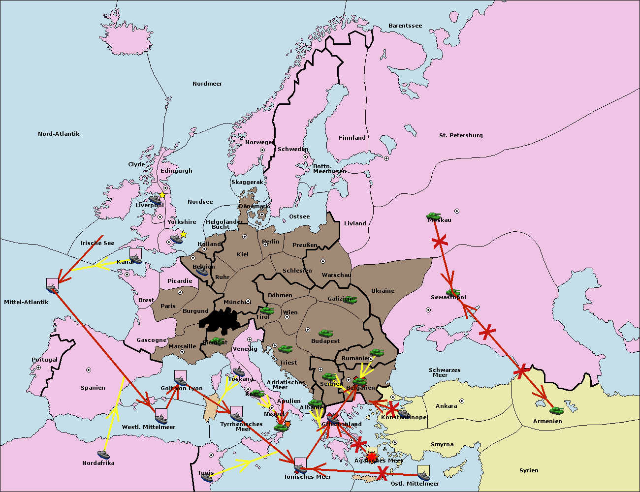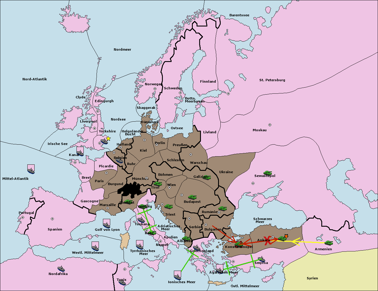 • Die Flotte in Griechenland move nach Bulgarien (Südküste). (gescheitert)