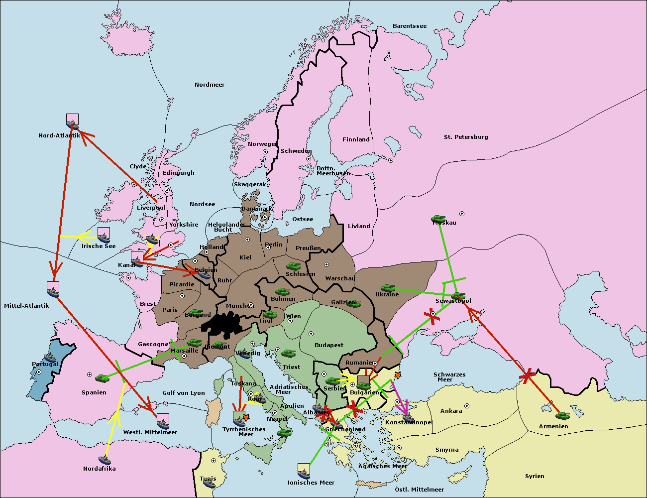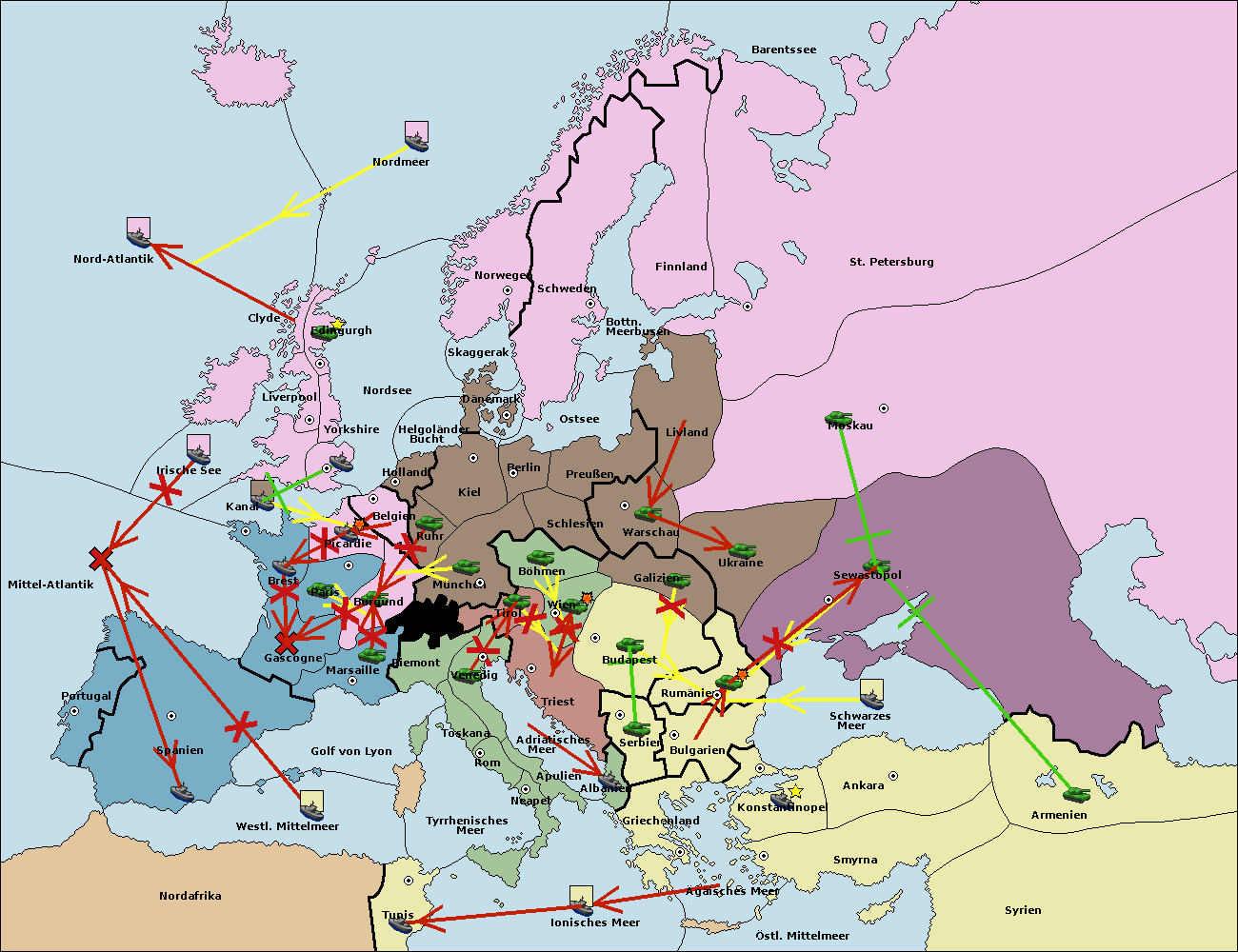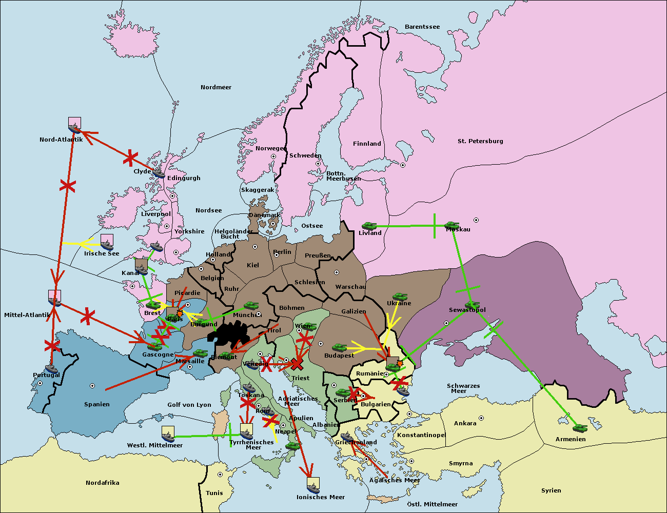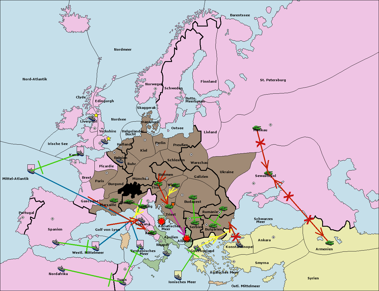• Die Flotte in Griechenland move nach Bulgarien (Südküste). (gescheitert)