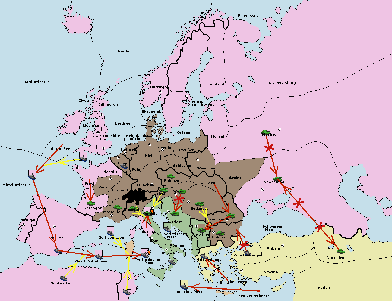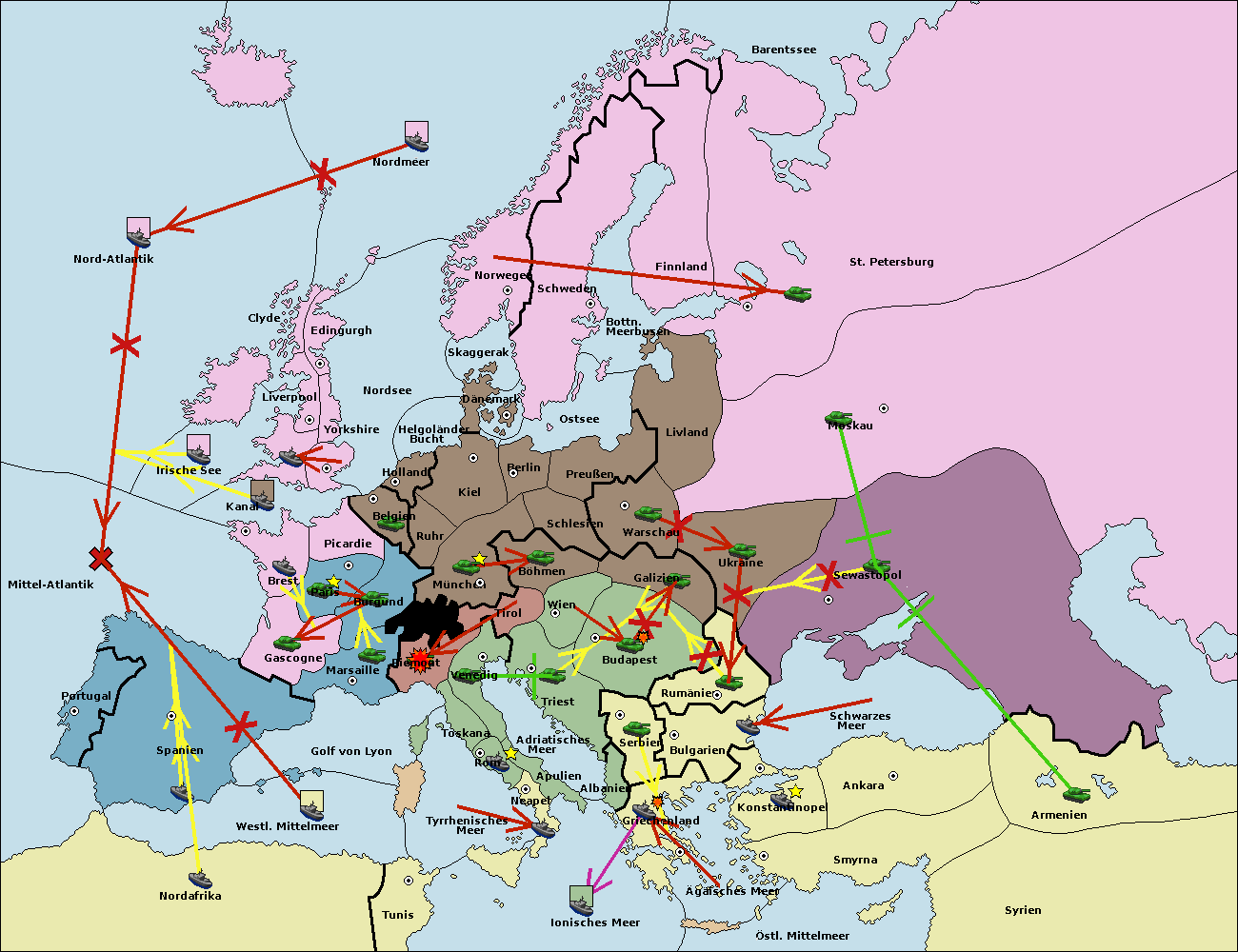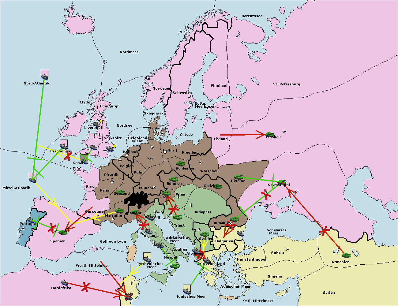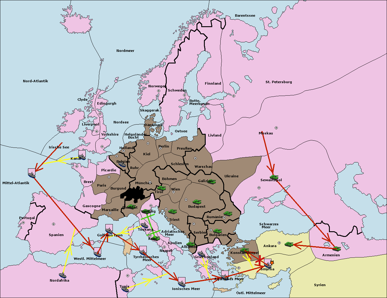 • Die Flotte in Griechenland move nach Bulgarien (Südküste). (gescheitert)