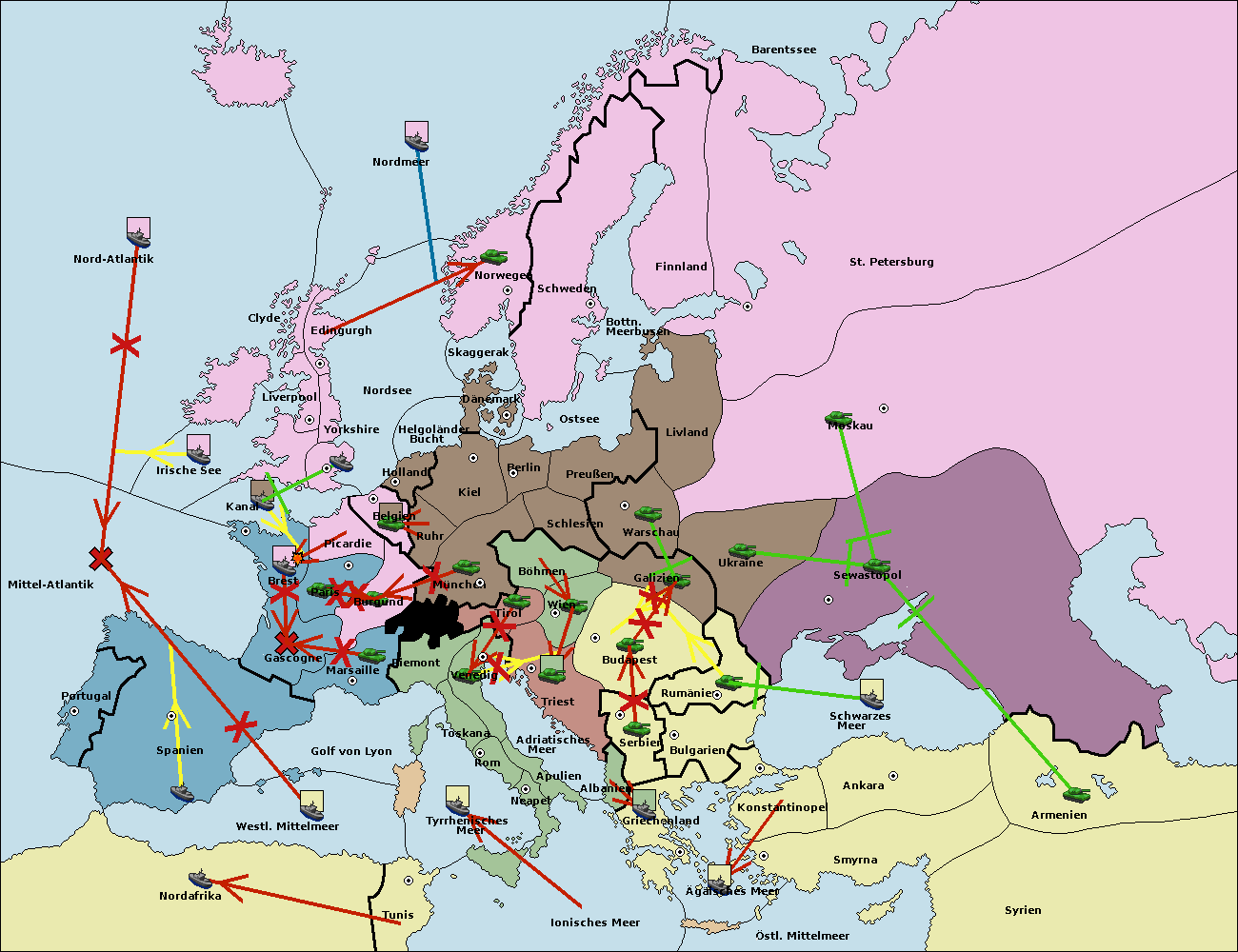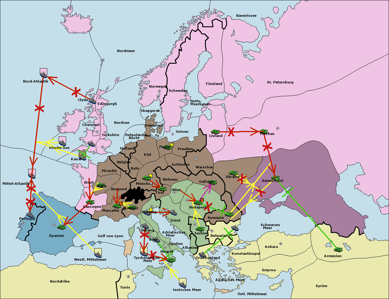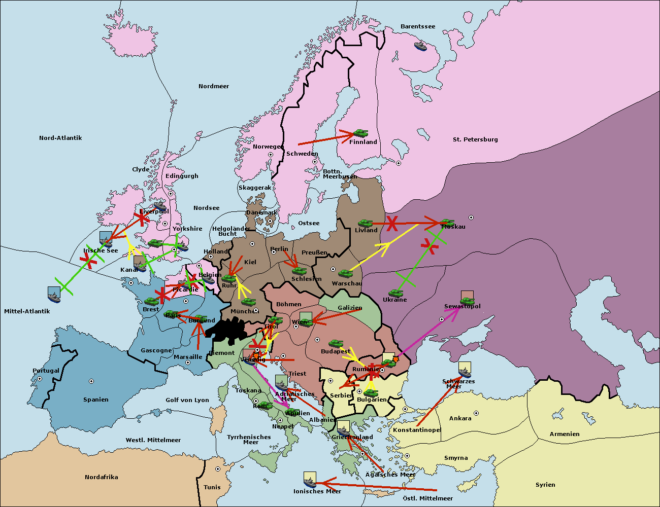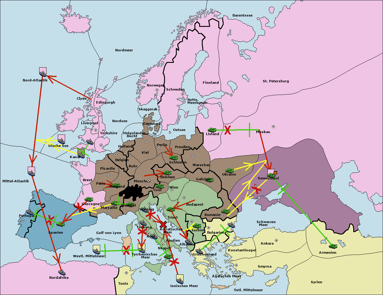• Die Flotte in Griechenland move nach Bulgarien (Südküste). (gescheitert)