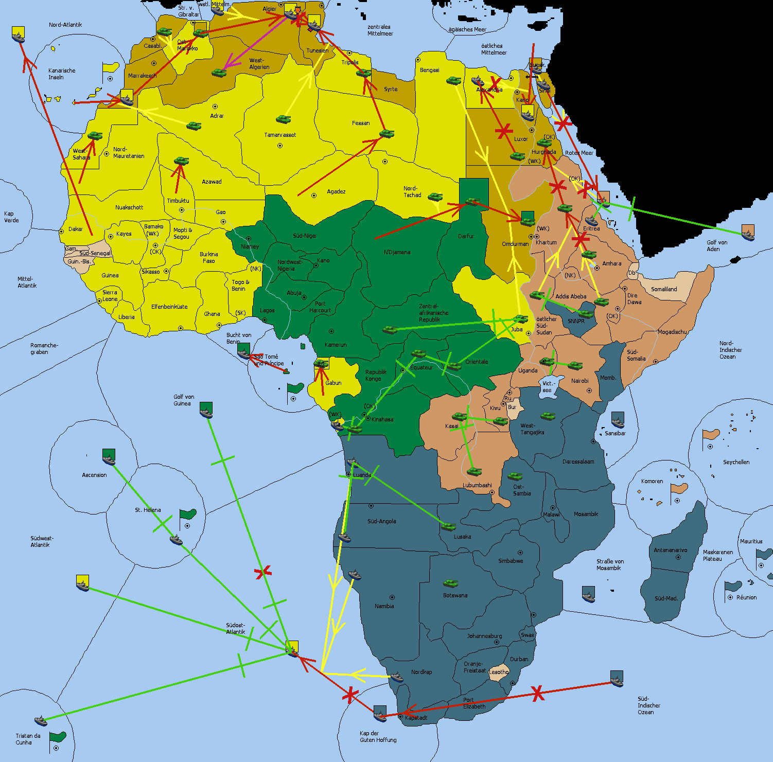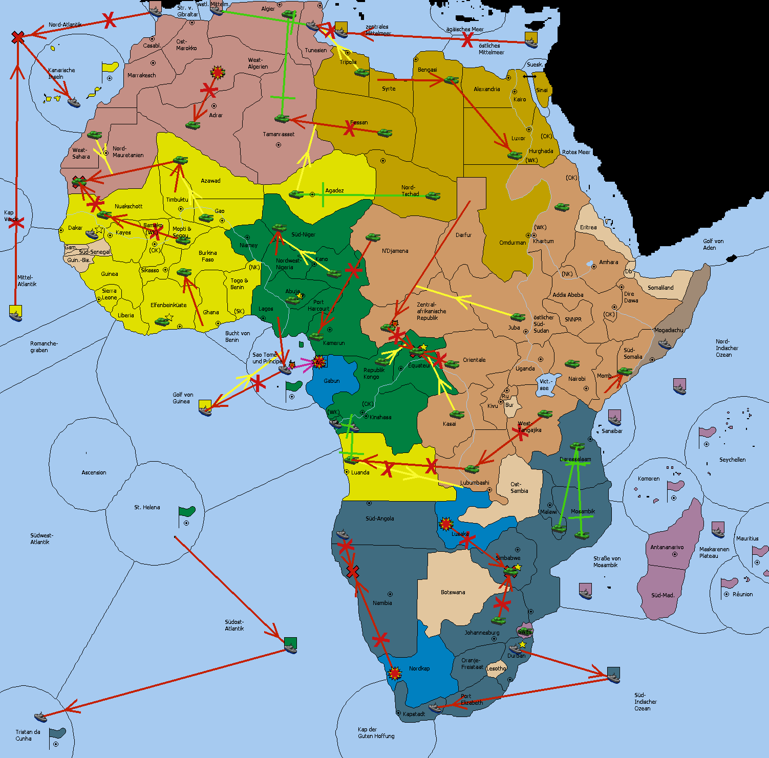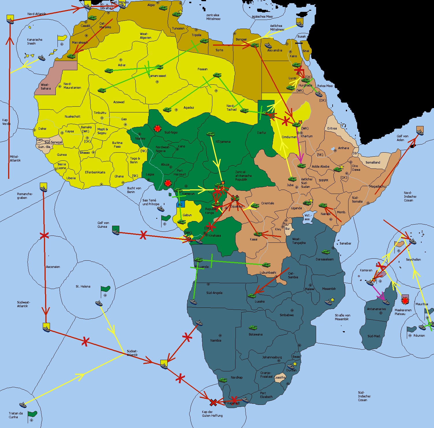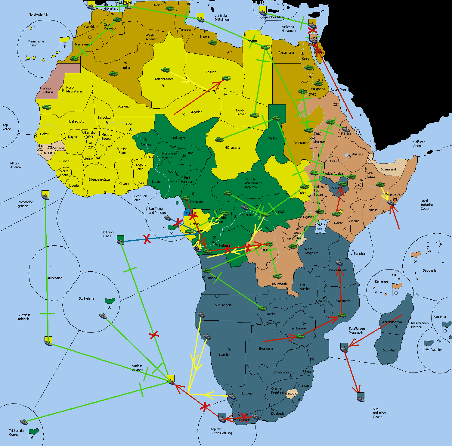 • Die Flotte in Südost-Atlantik support hold nach Golf von Guinea. (gescheitert)