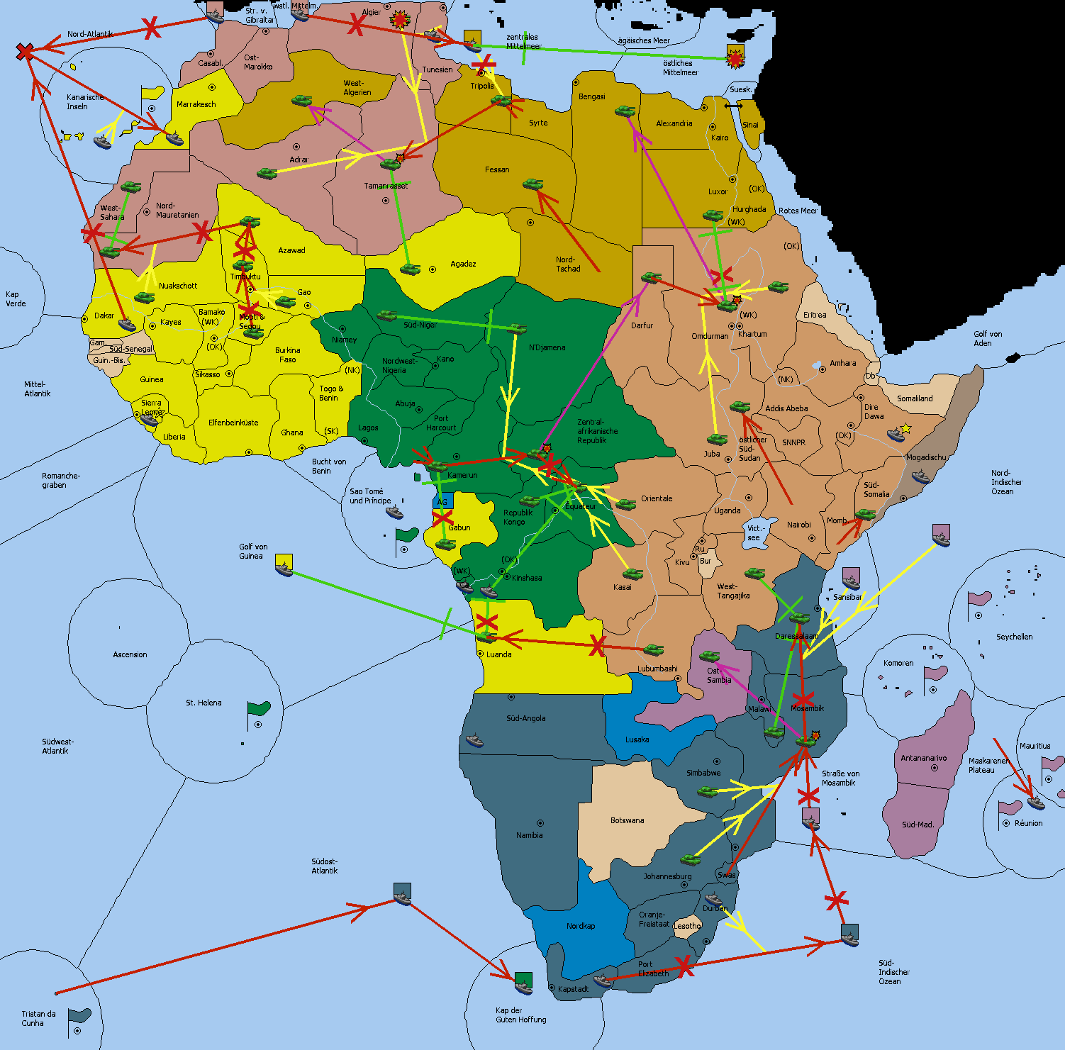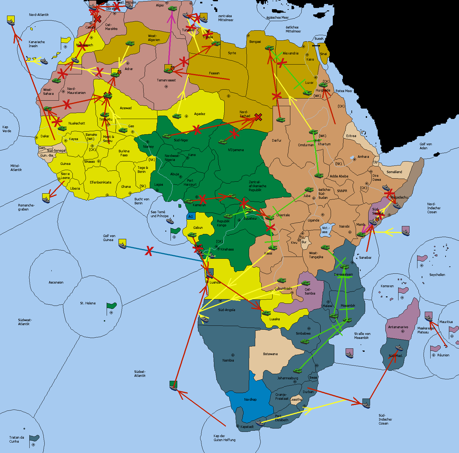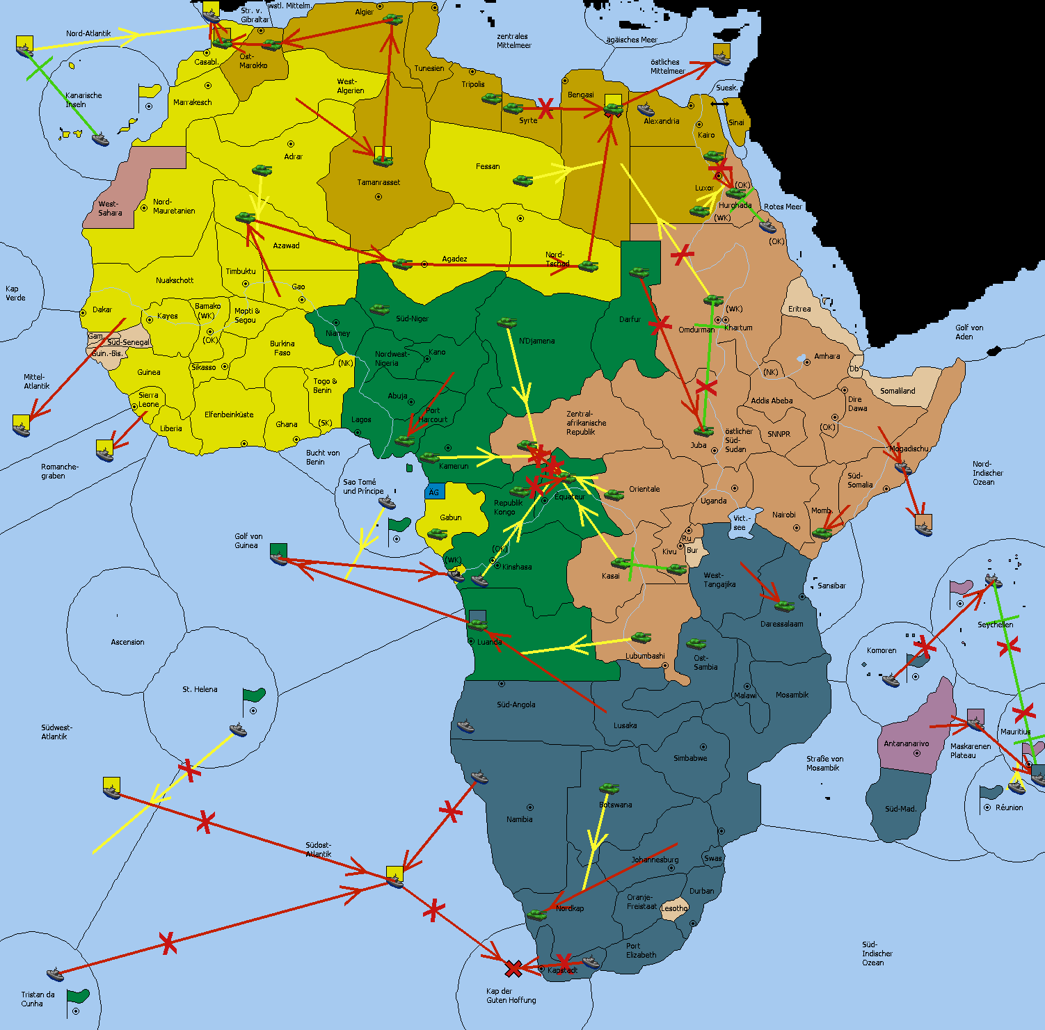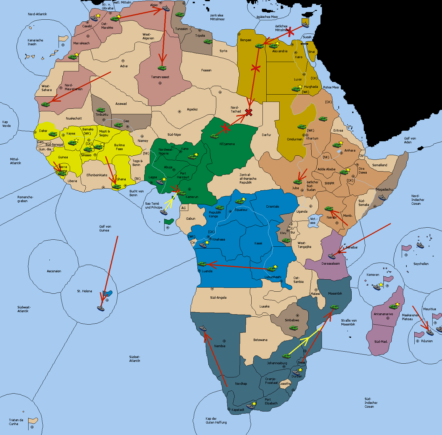 • Die Flotte in Südost-Atlantik support hold nach Golf von Guinea. (gescheitert)